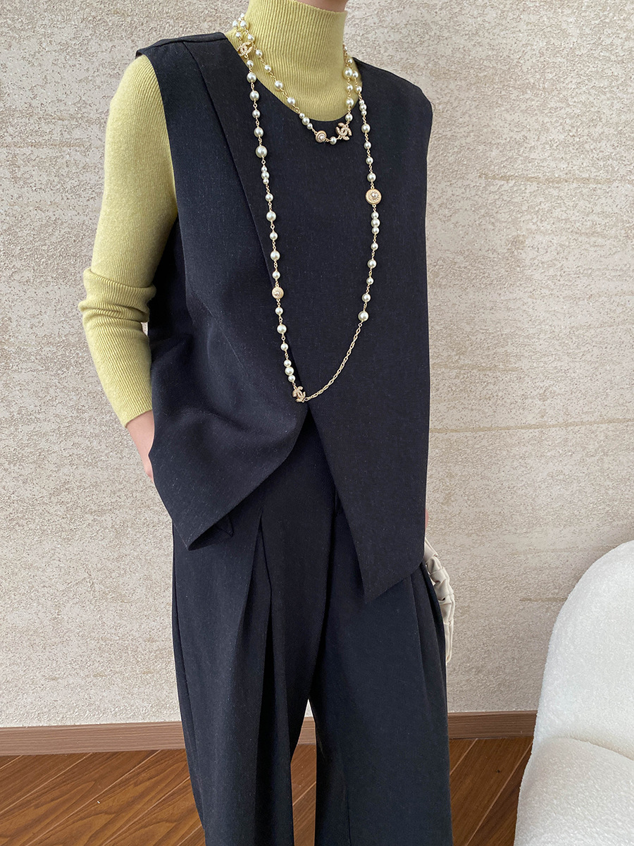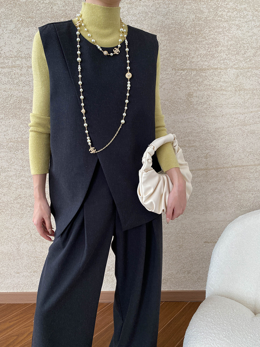 【セットアップ】【単品注文】上質 あつさり 目立つ 春秋冬 シンプル ベスト+ワイドパンツ 上下セット【SNシリーズ】