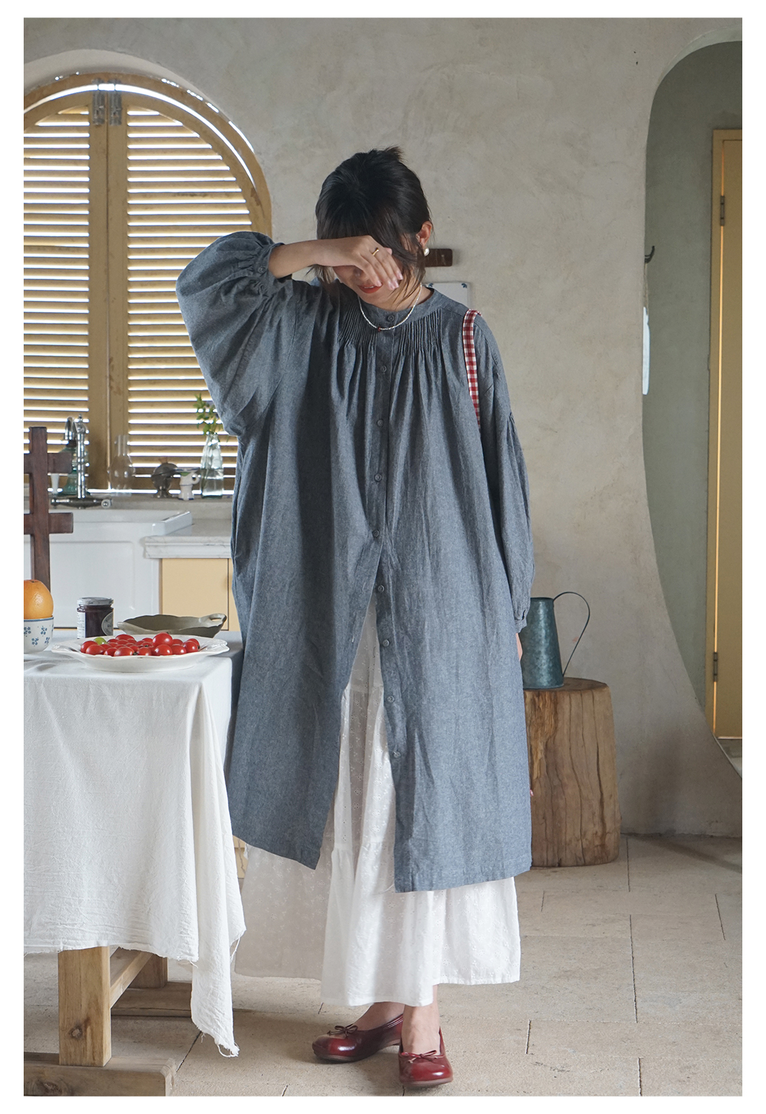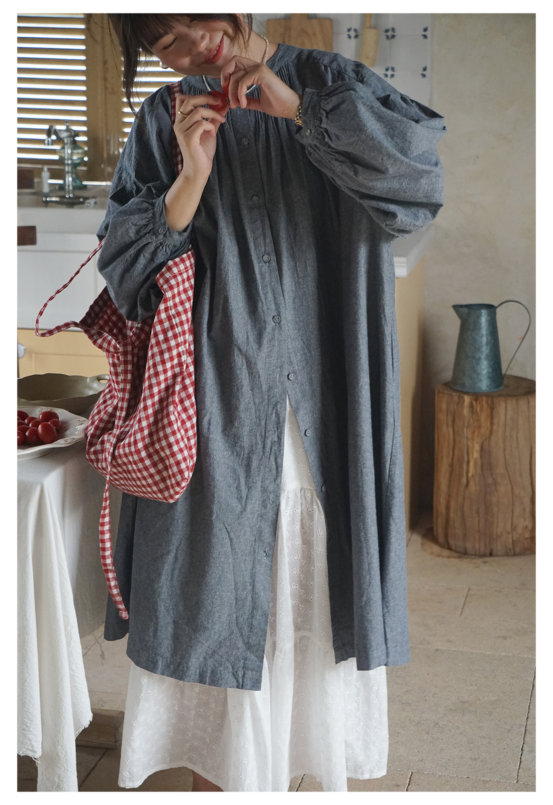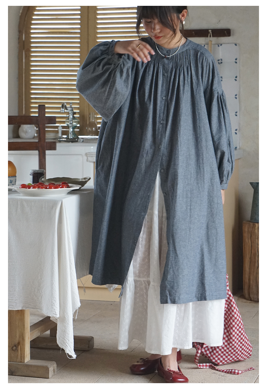 【商品名】【ワンピース】日系 文芸スタイル ランタンスリーブ 着痩せ 長袖ワンピース