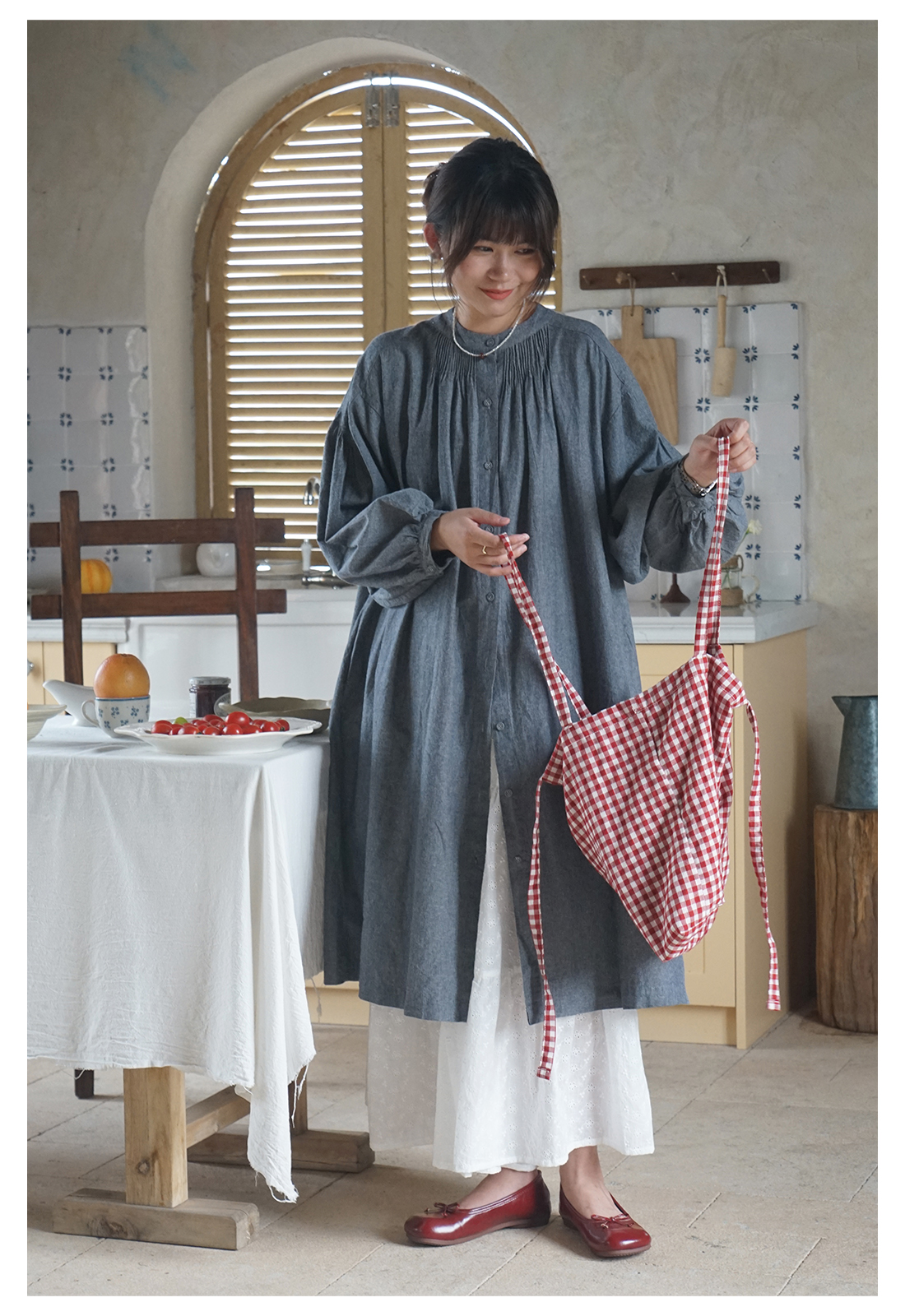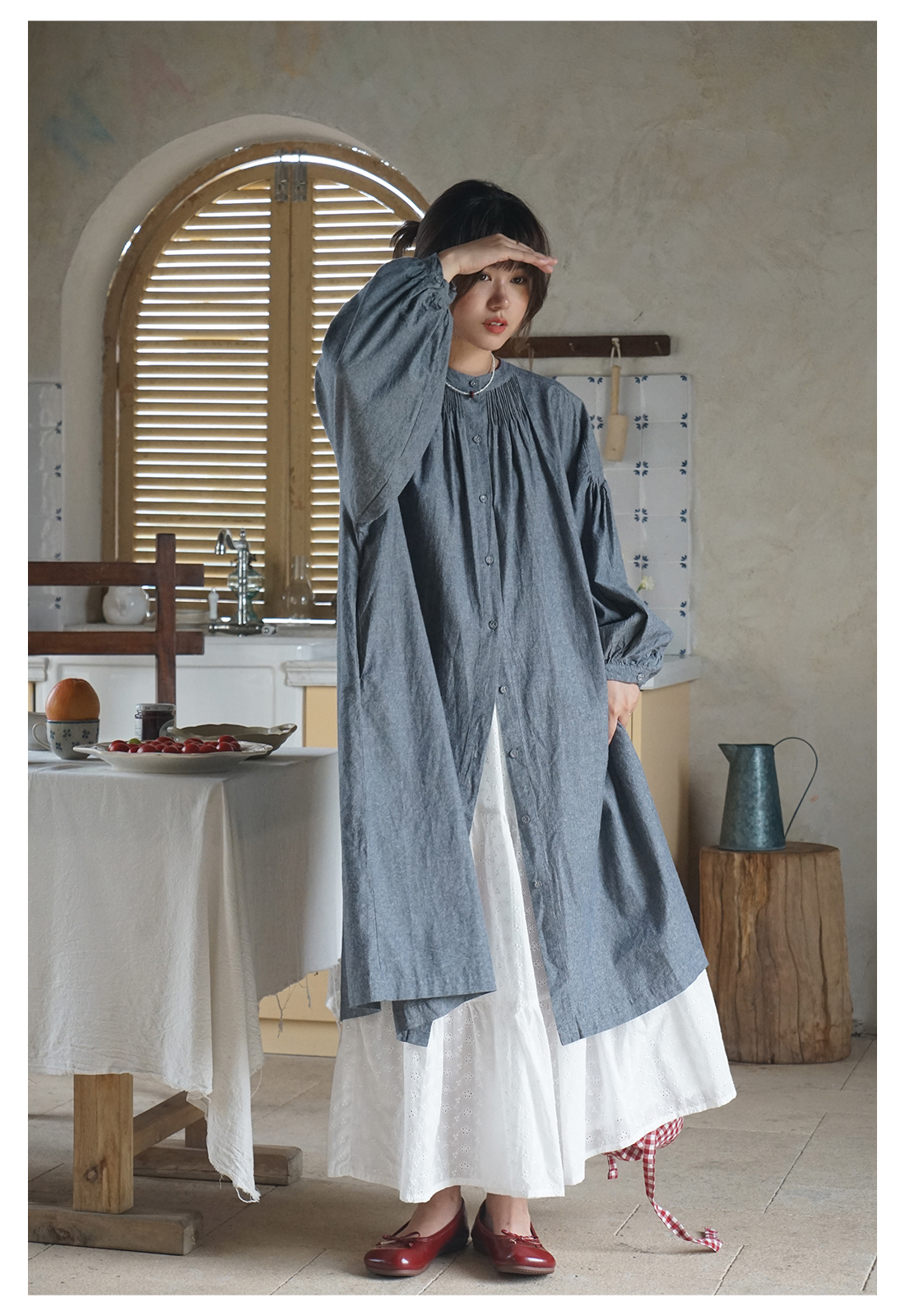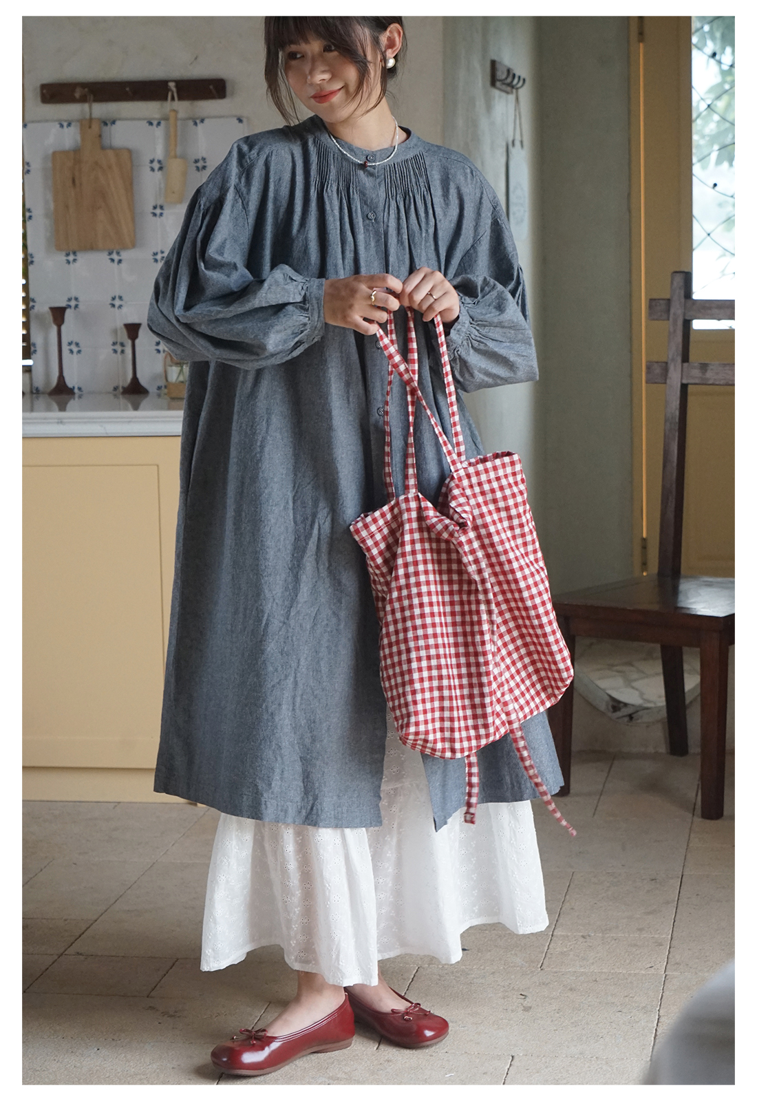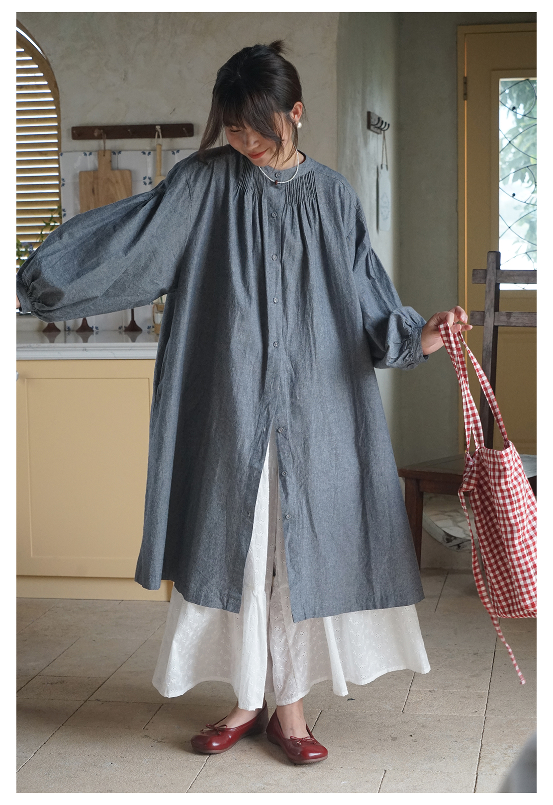 【商品名】【ワンピース】日系 文芸スタイル ランタンスリーブ 着痩せ 長袖ワンピース