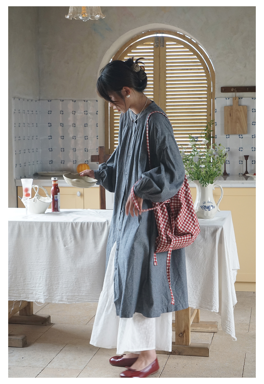 【ワンピース】春秋 日系 文芸スタイル ランタンスリーブ 着痩せ 長袖ワンピース