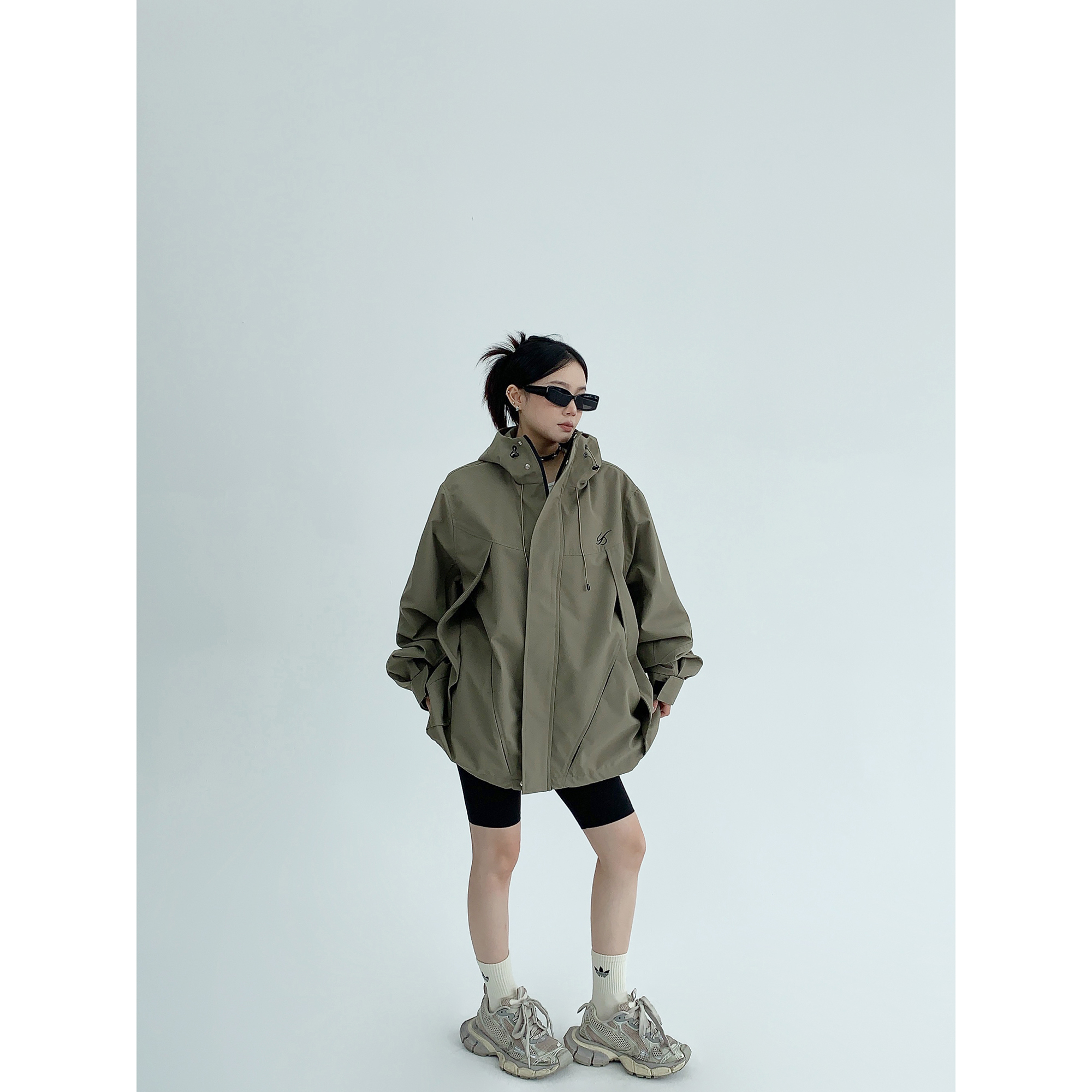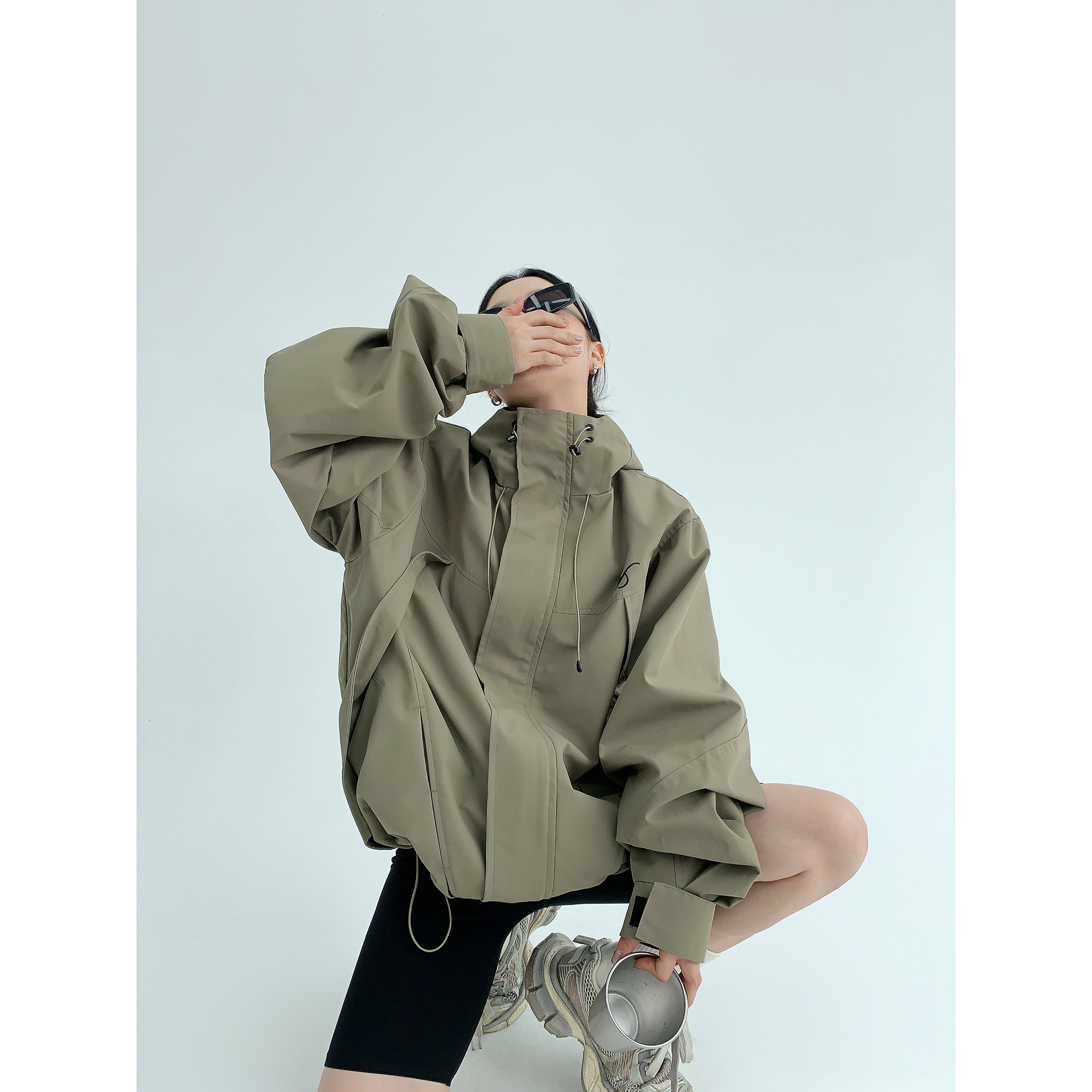 【商品名】【アウター】ゆったり レトロ フード付き ジャケット
