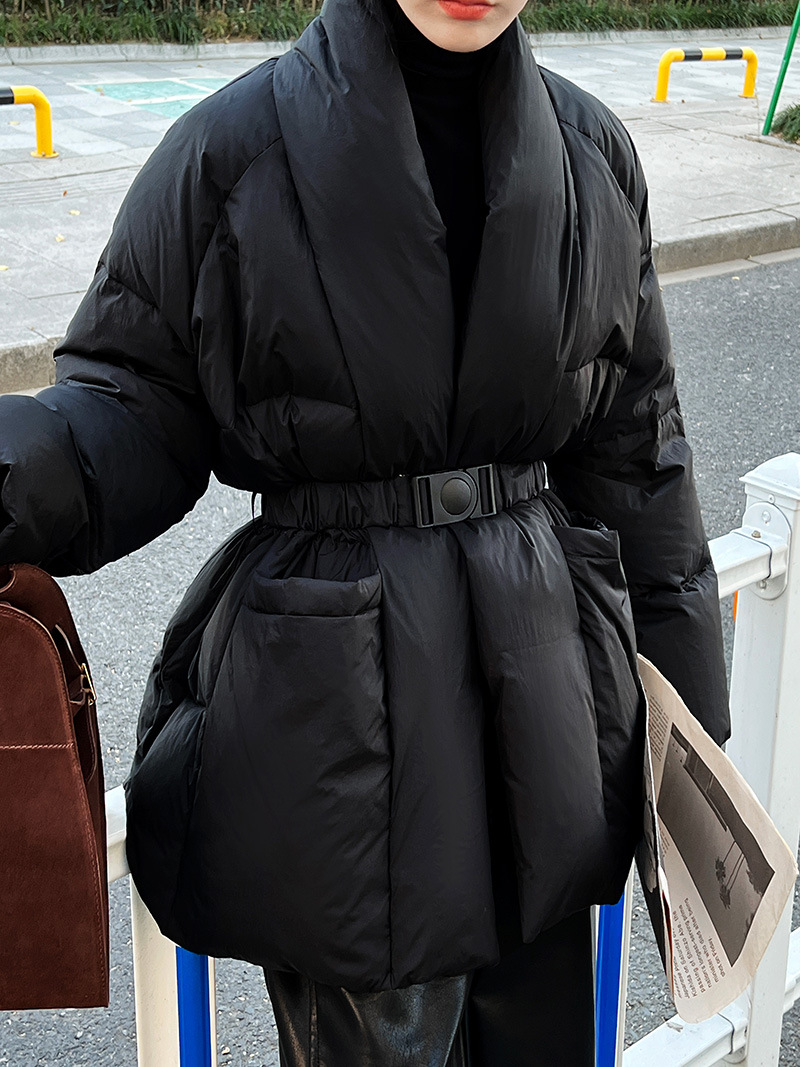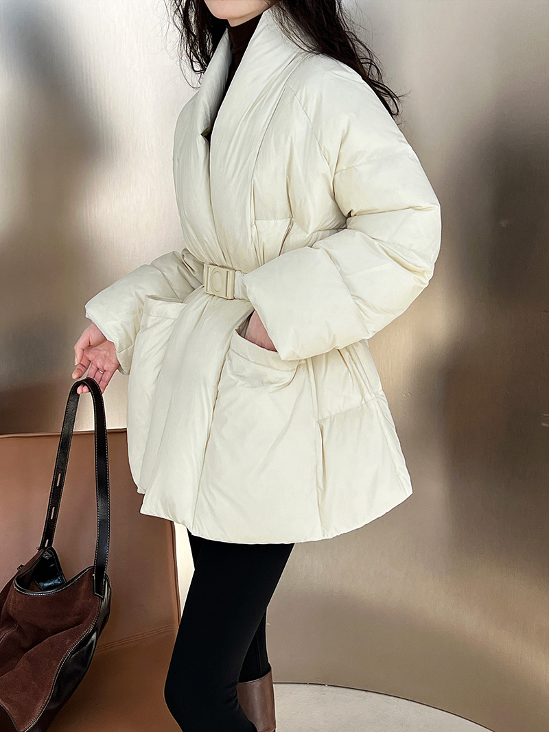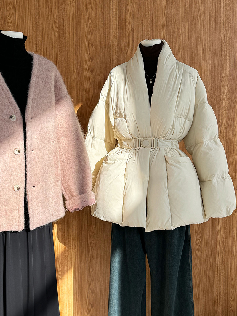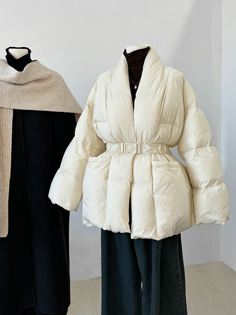 【商品名】【アウター】ファッション Vネック ウエストを絞る 合わせやすい ダウンコート