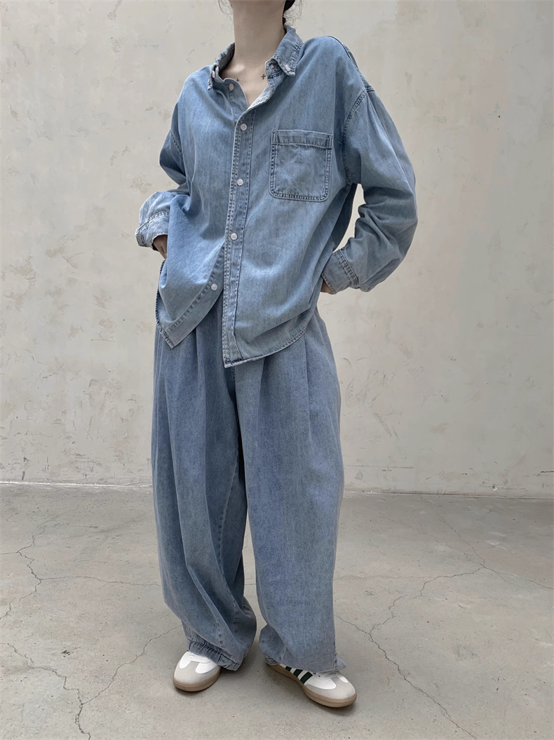【商品名】【トップス】春秋 快適 長袖 ゆったり デニム シャツ