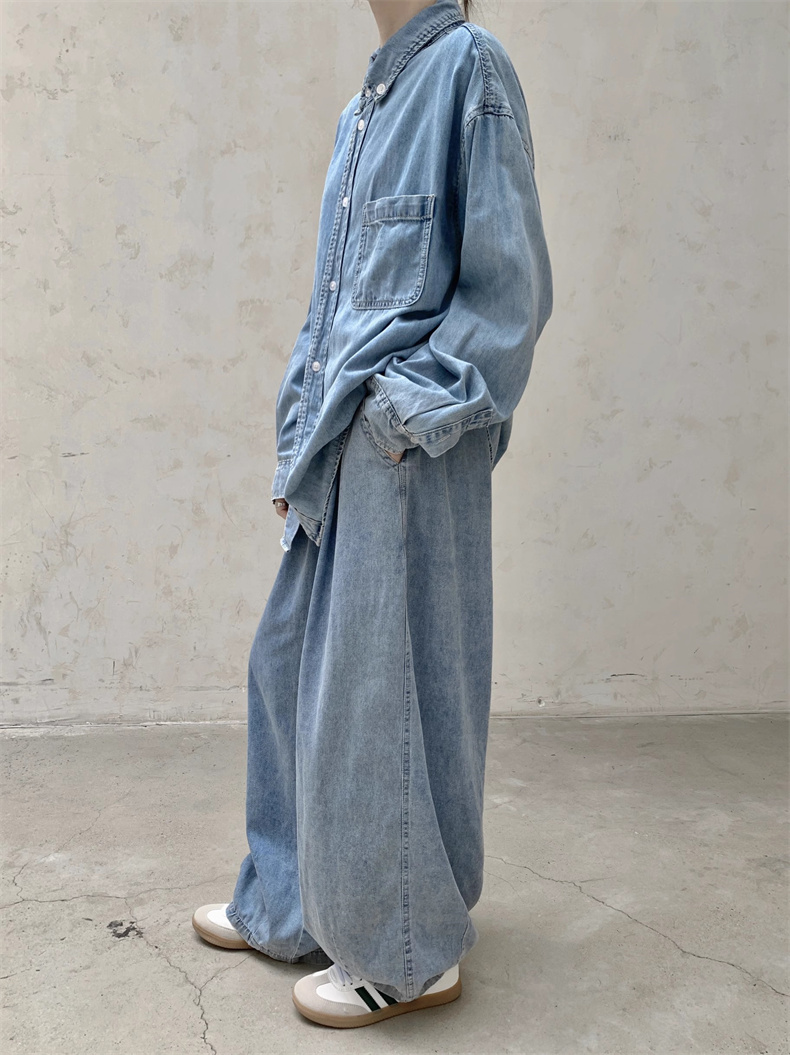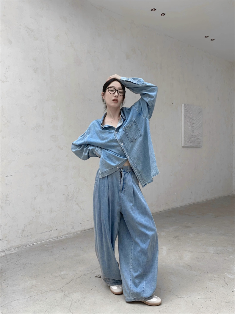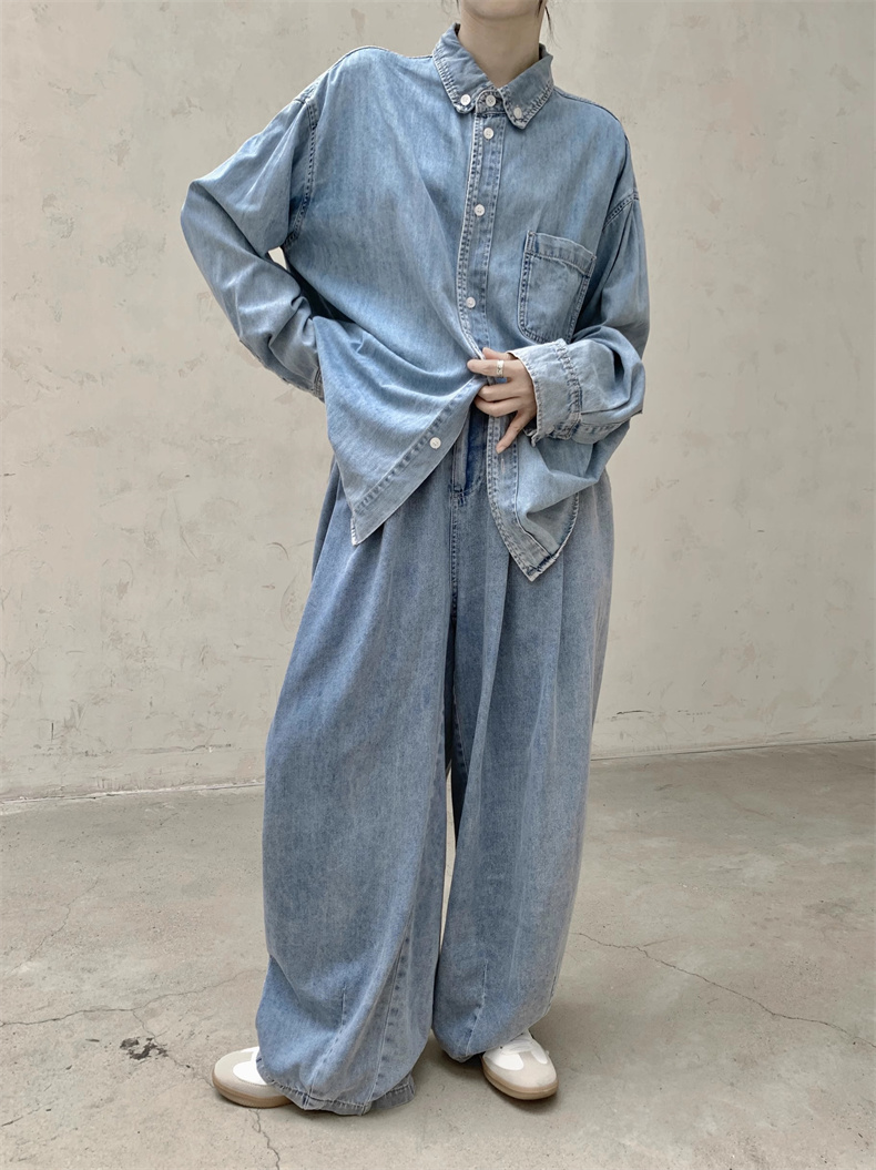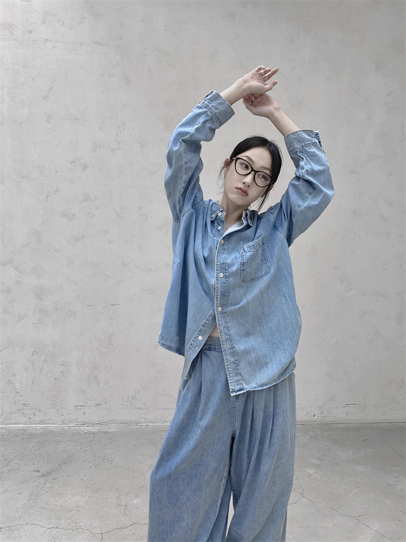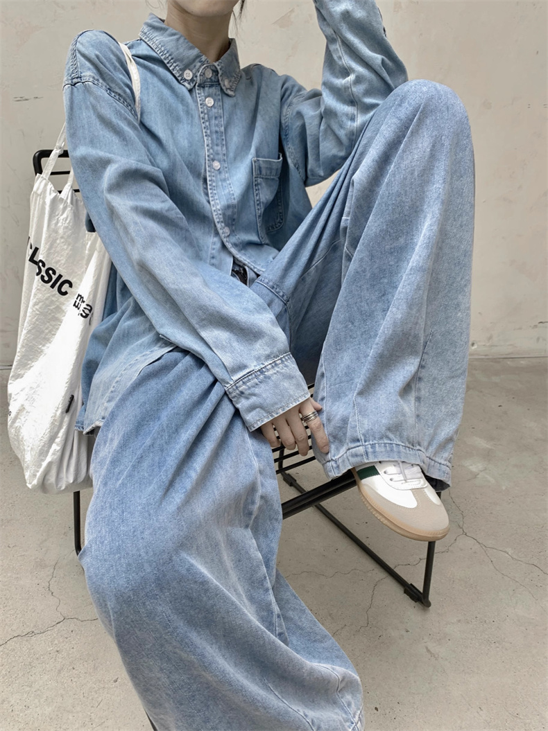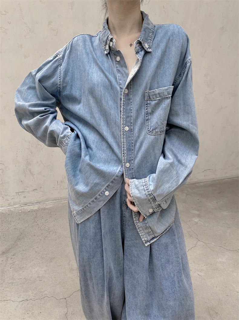 【トップス】春秋 快適 長袖 ゆったり デニム シャツ