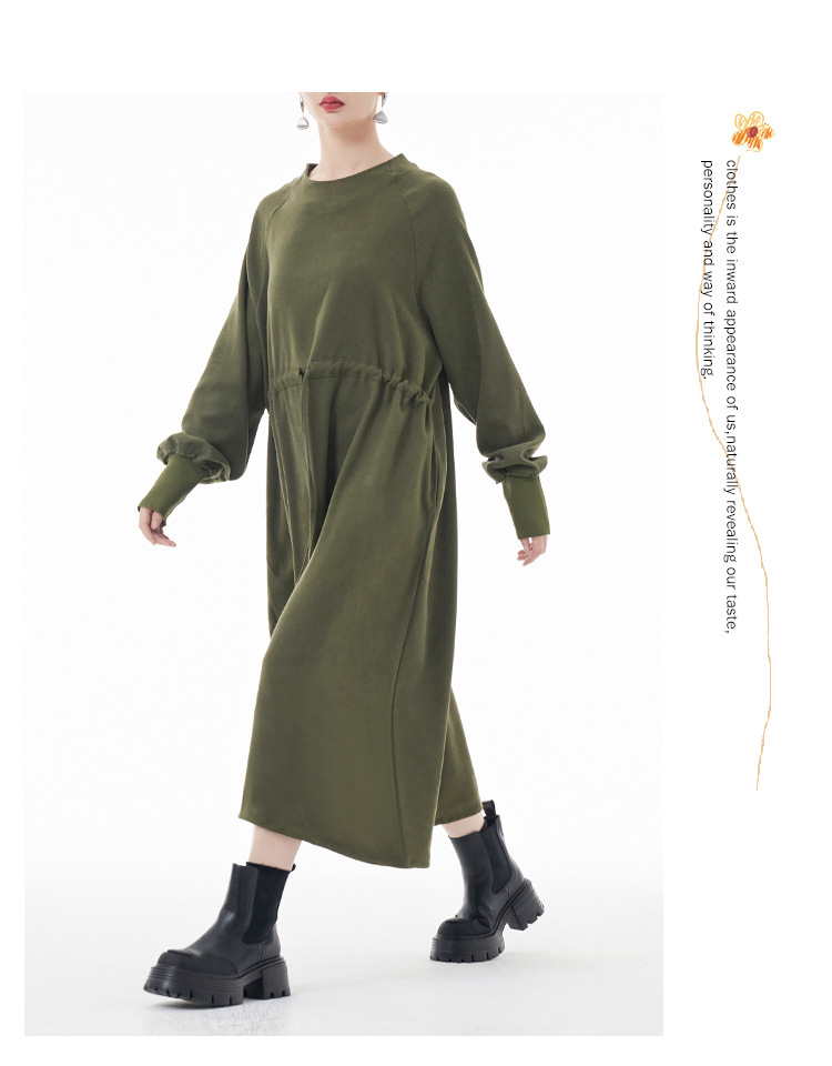 【ワンピース】春秋冬 ラウンドネック ゆるリラックス 長袖 ワンピース