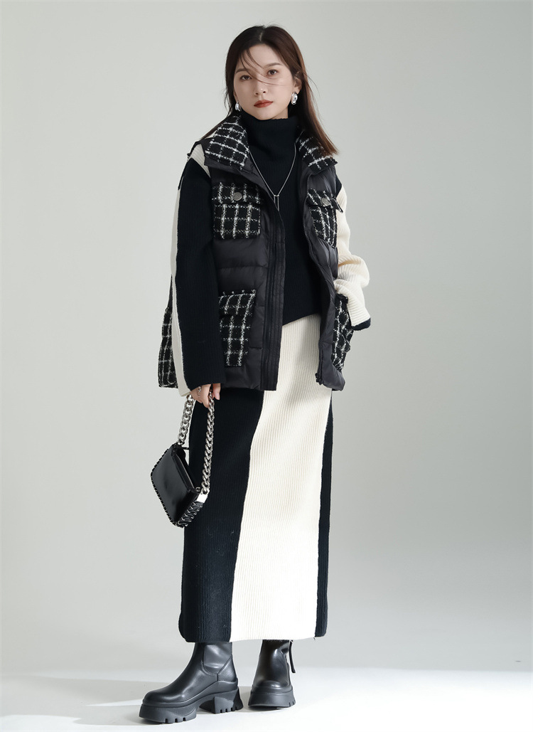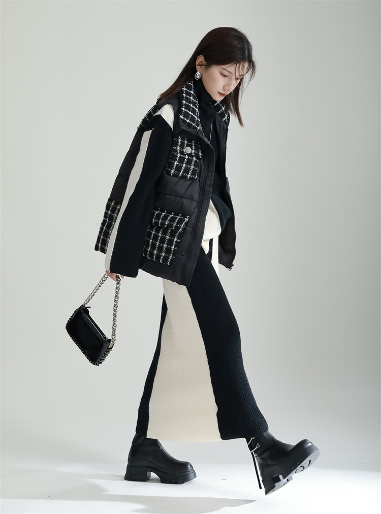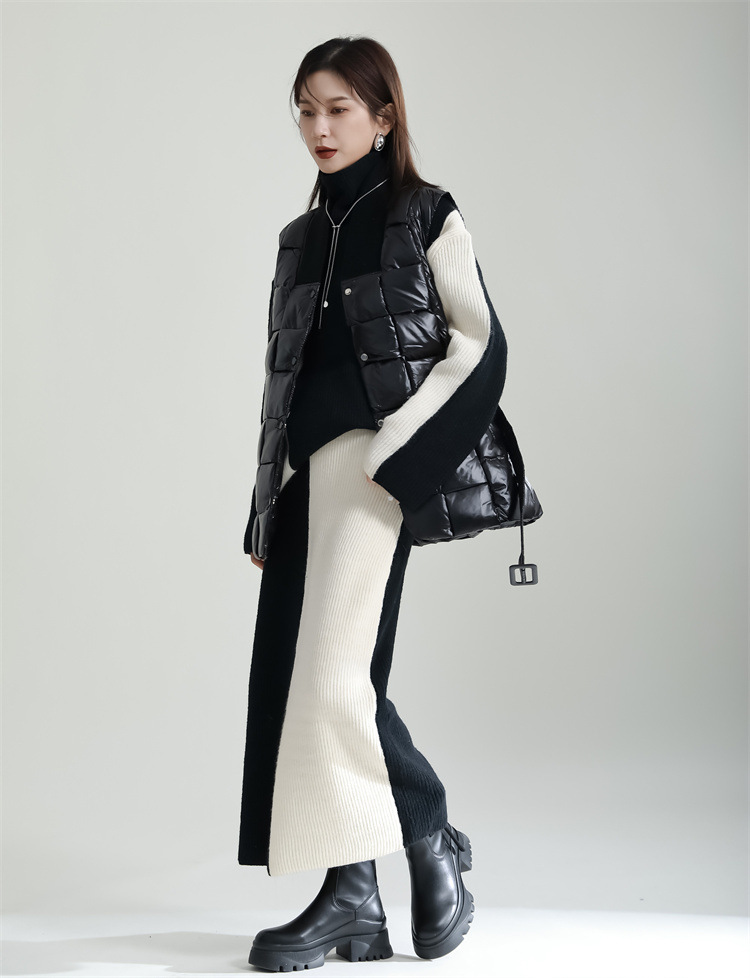 【商品名】【ボトムス】高品質 人気 着痩せ カラーマッチング ニットセーター+スカート 上下セット