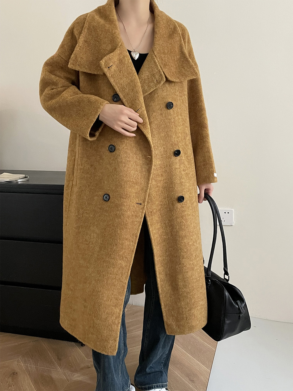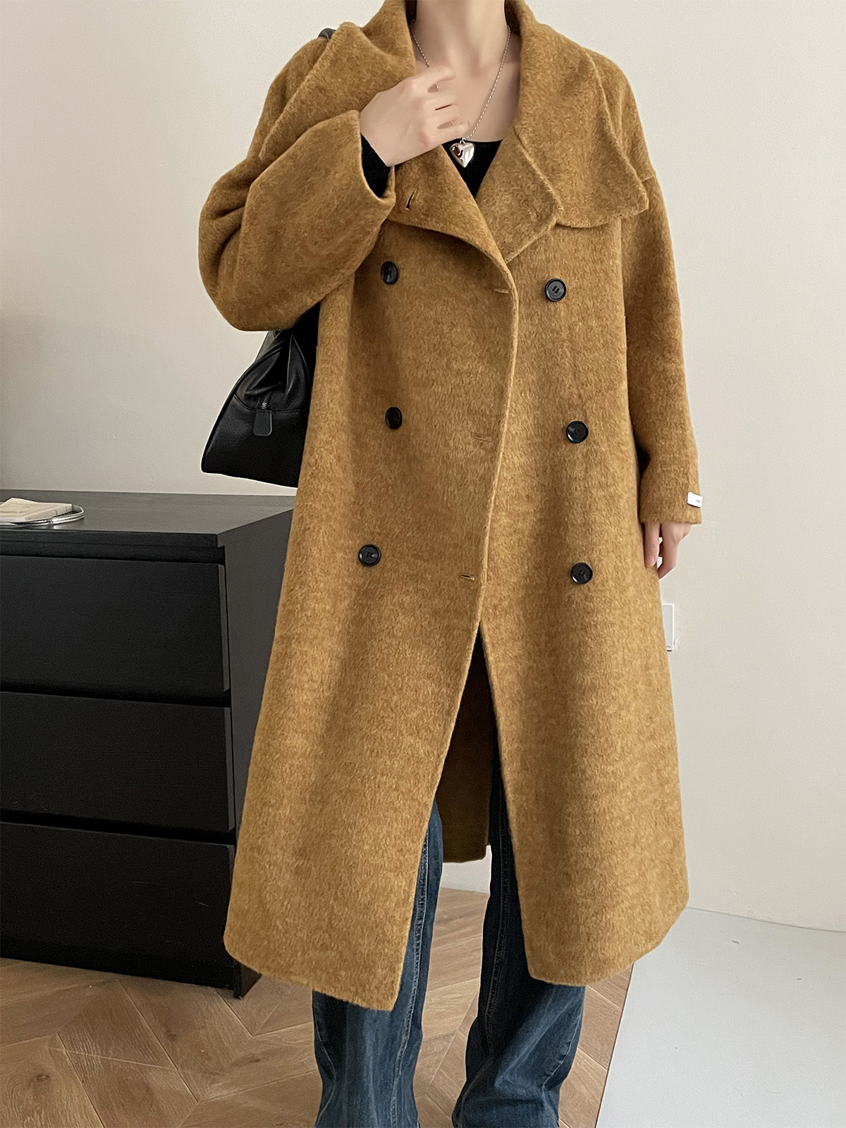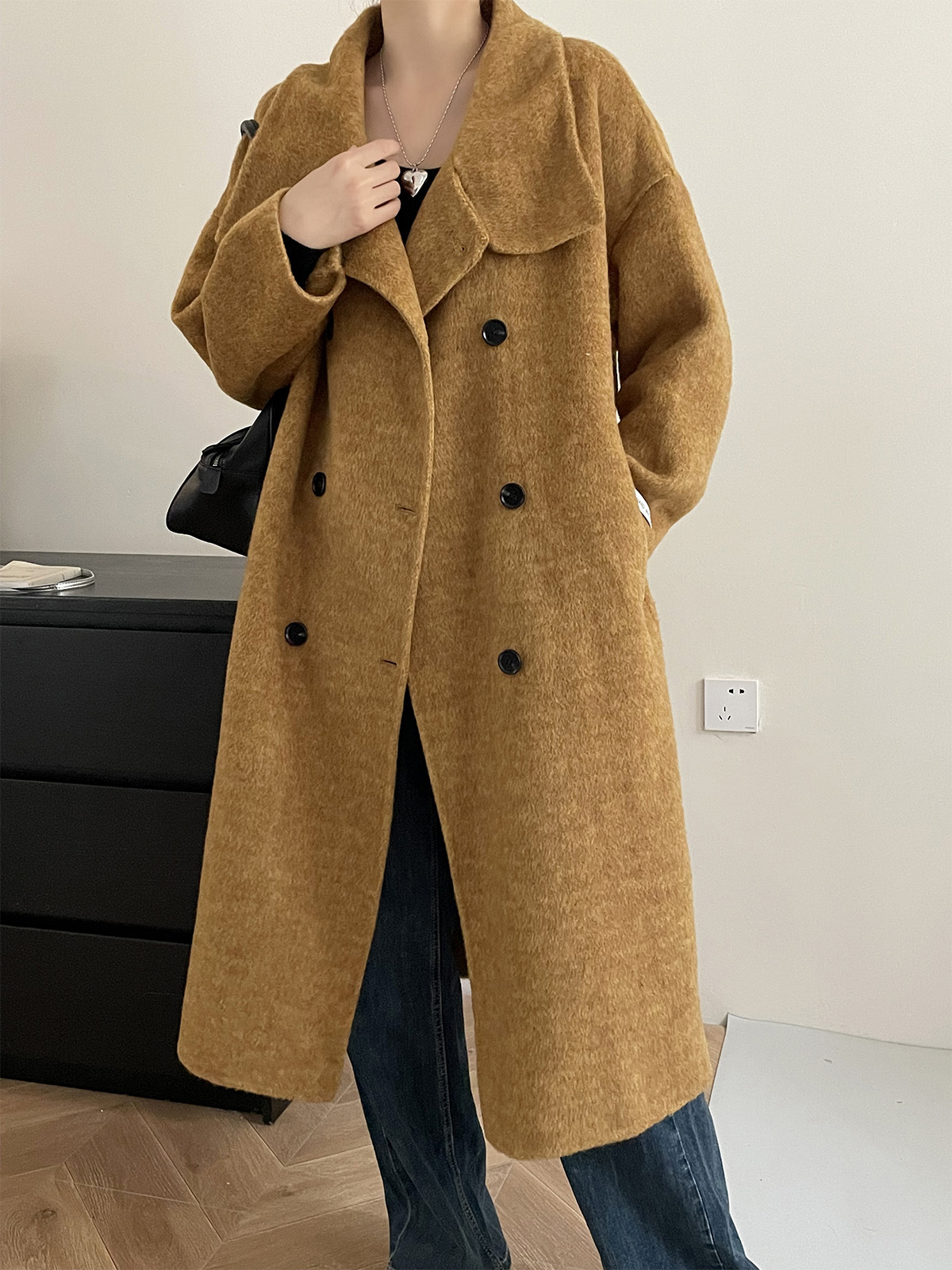 【アウター】気質と高級感 ミディアムロング 斜めボタン襟 ウールコート【JZシリーズ】