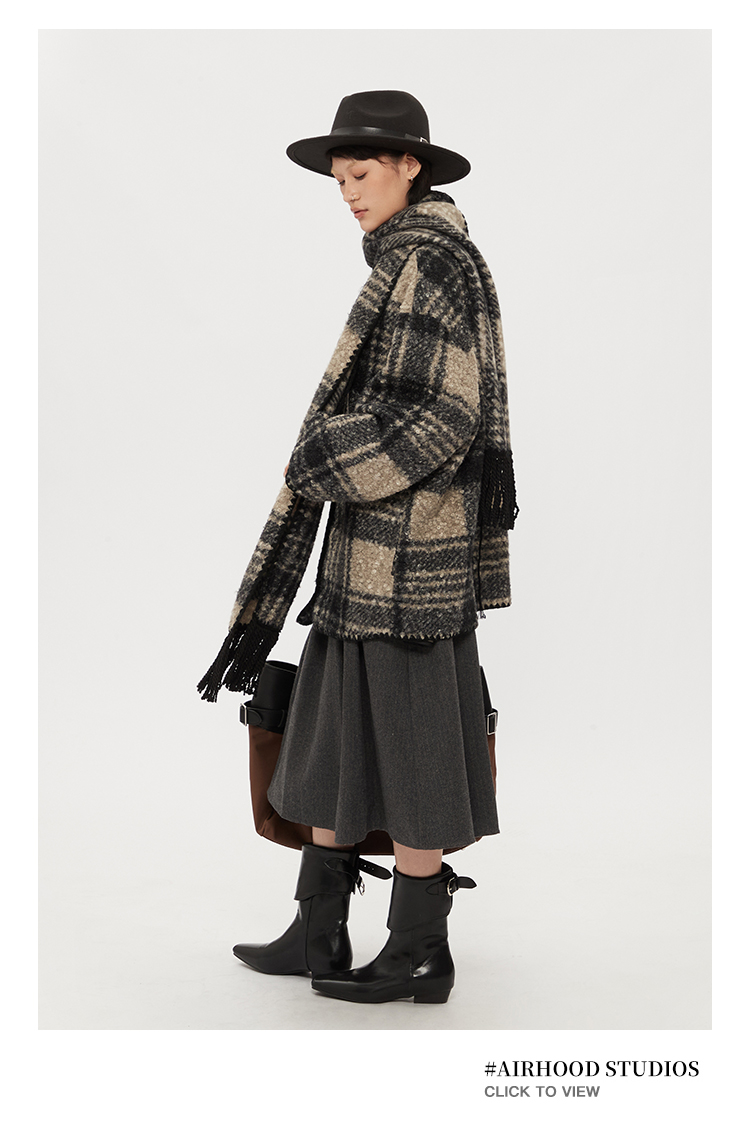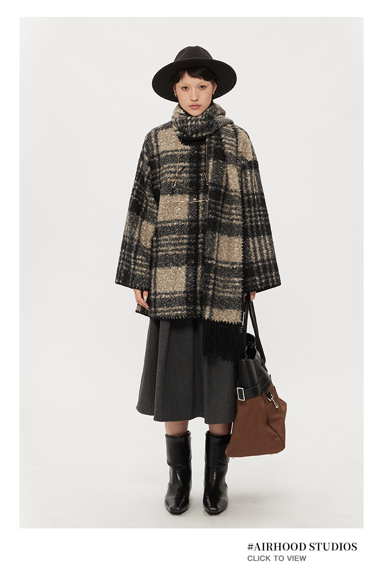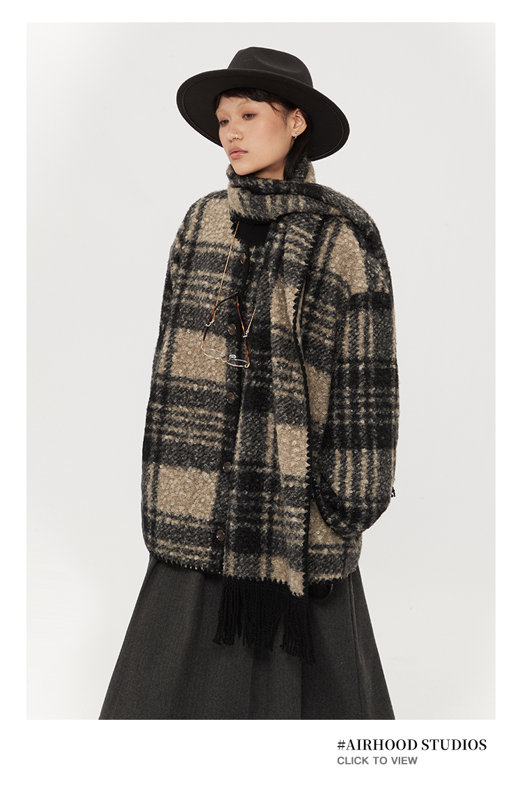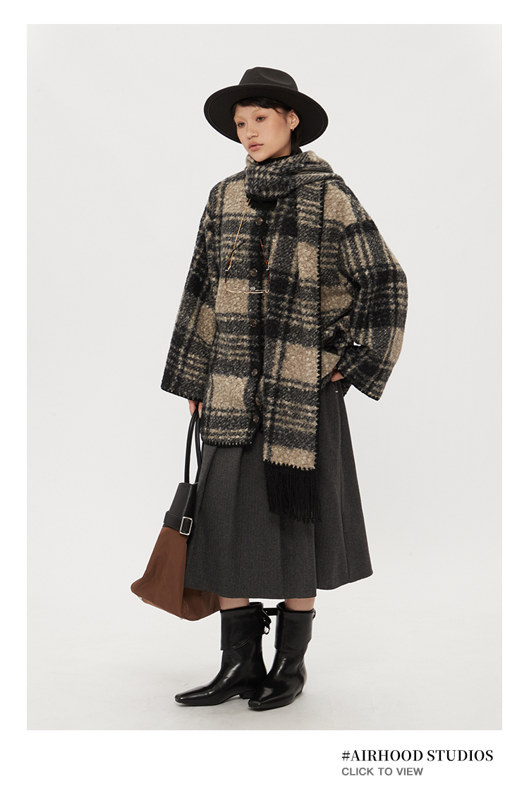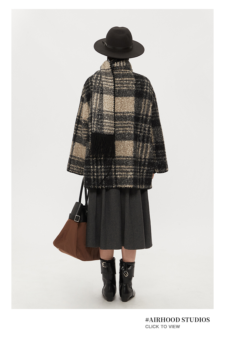 【アウター】レトロ チェック柄 秋冬 マント スカーフ コート【SNシリーズ】
