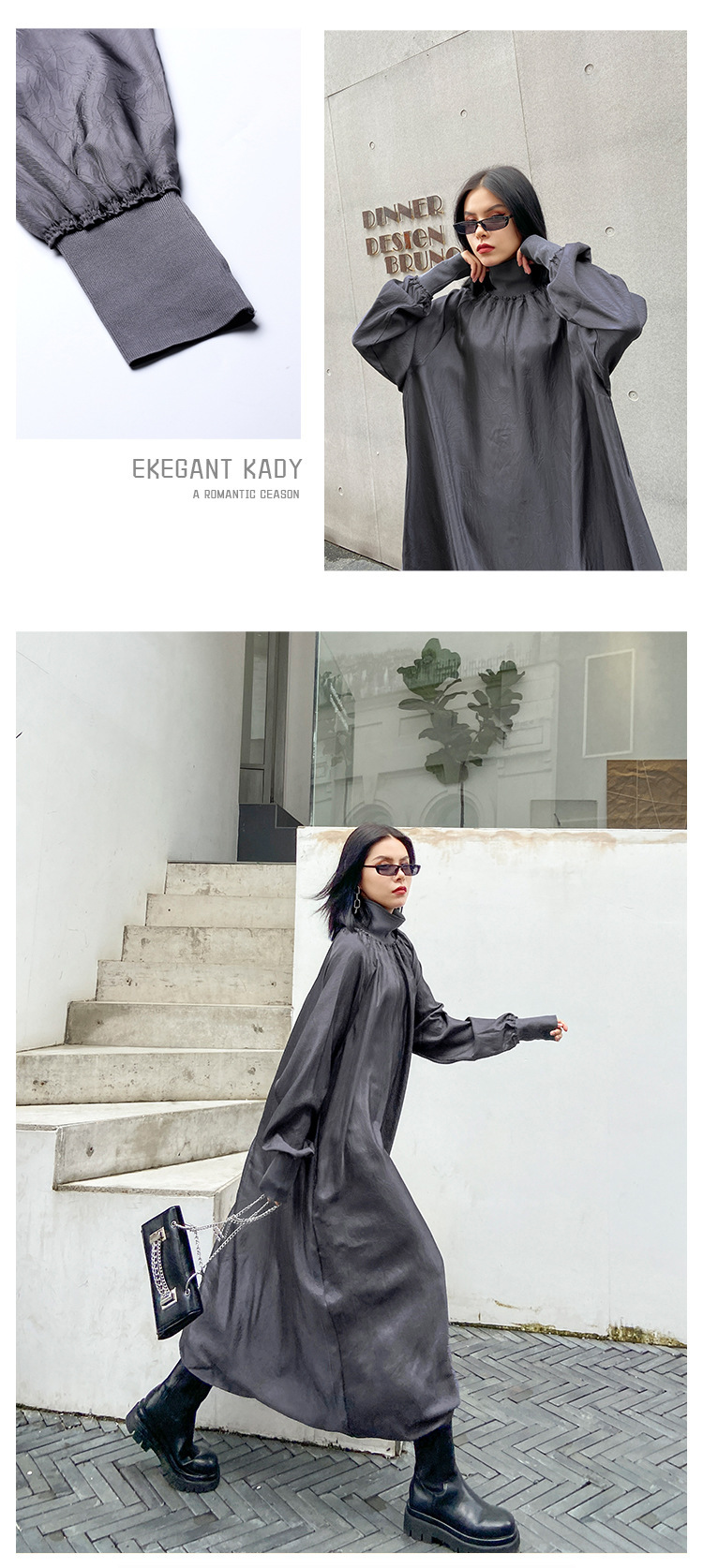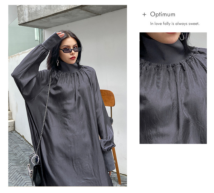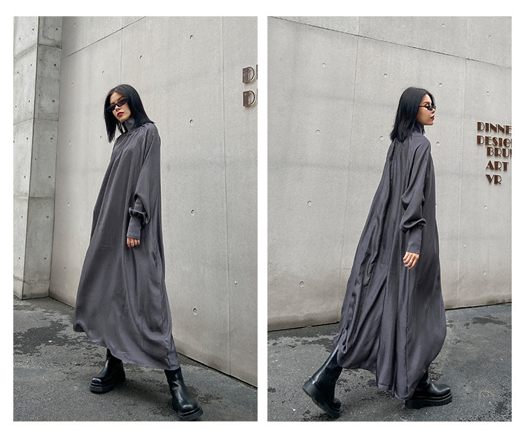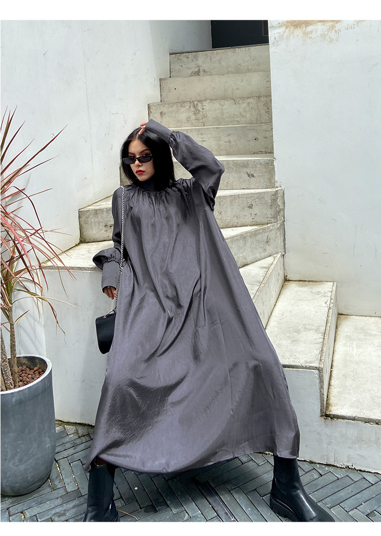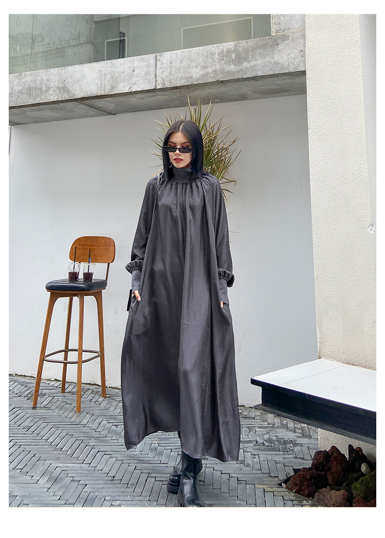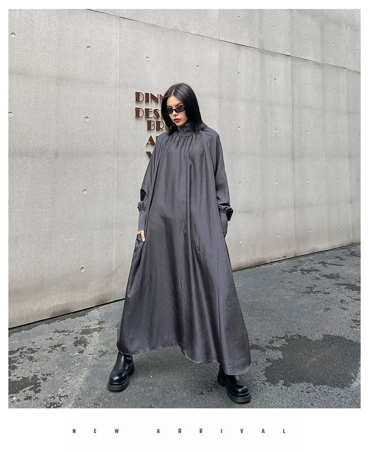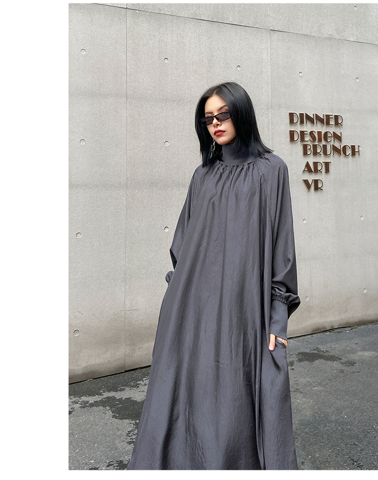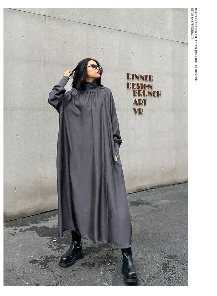 【ワンピース】春秋 ハイネック ゆるリラックス 長袖ワンピース【AHシリーズ】