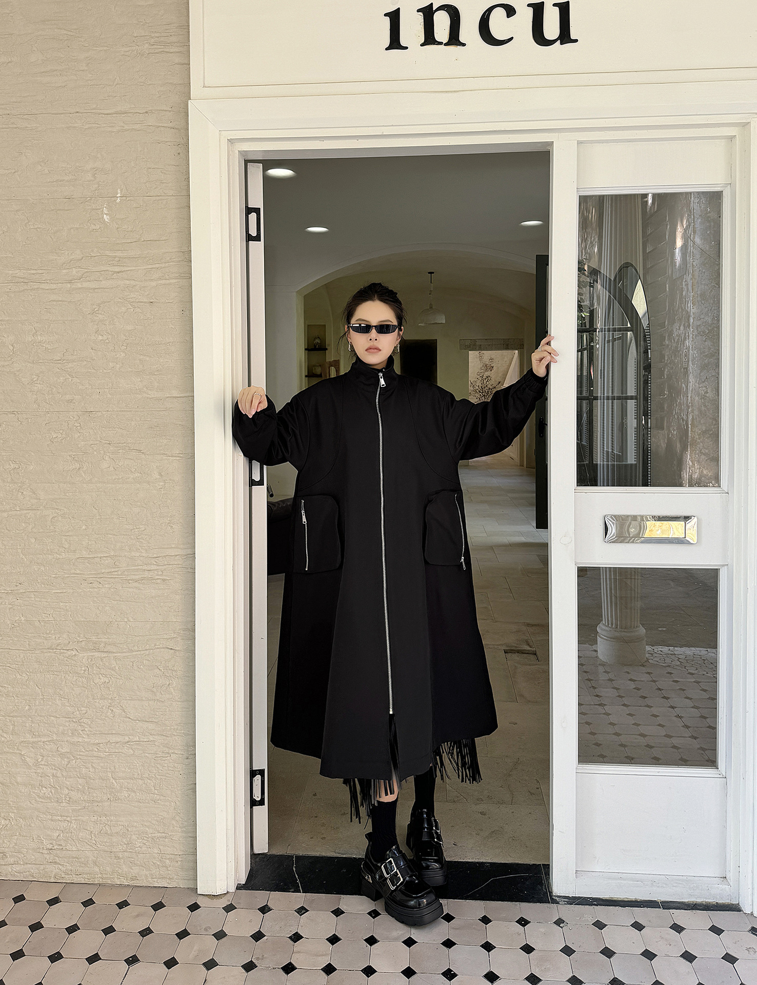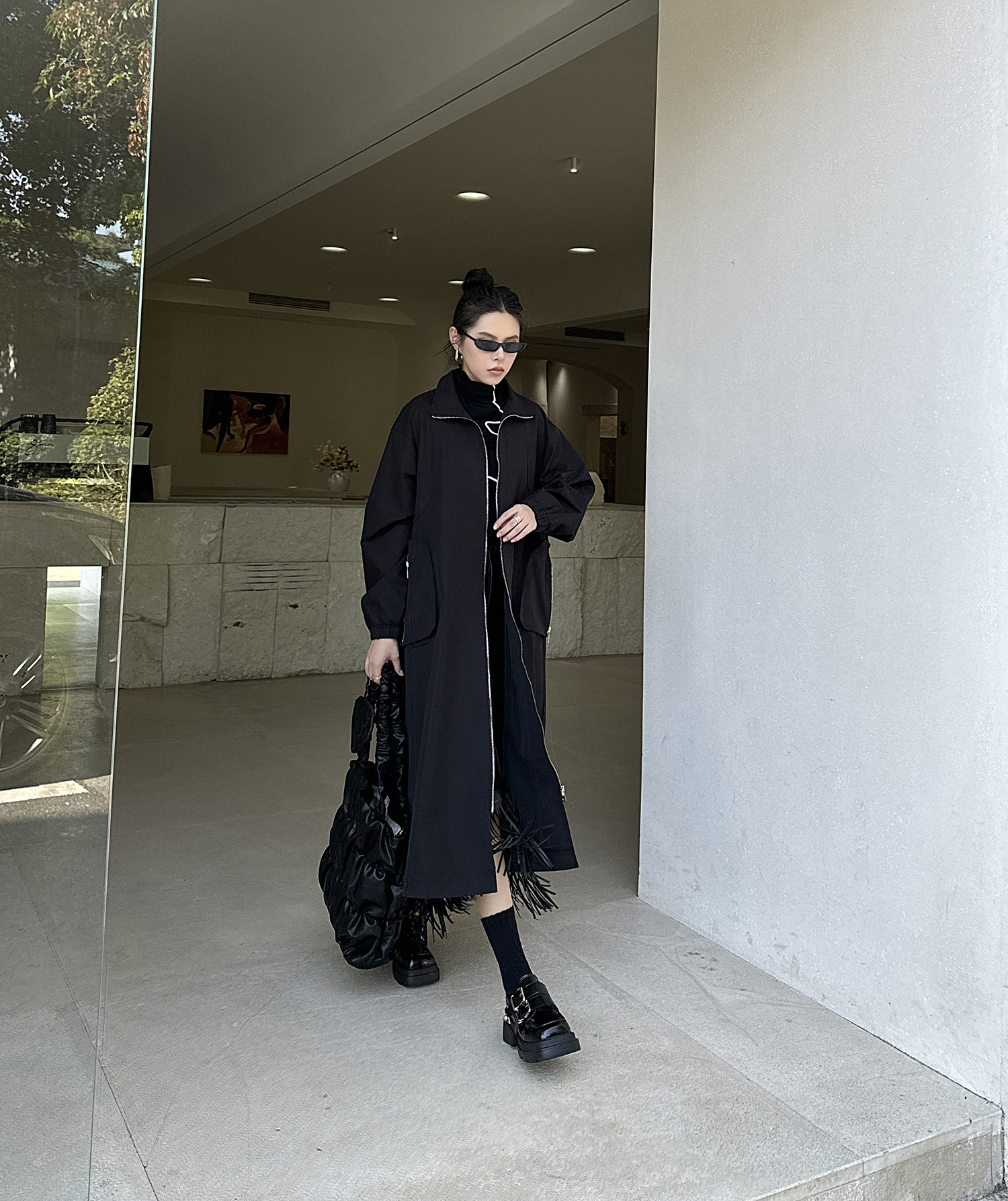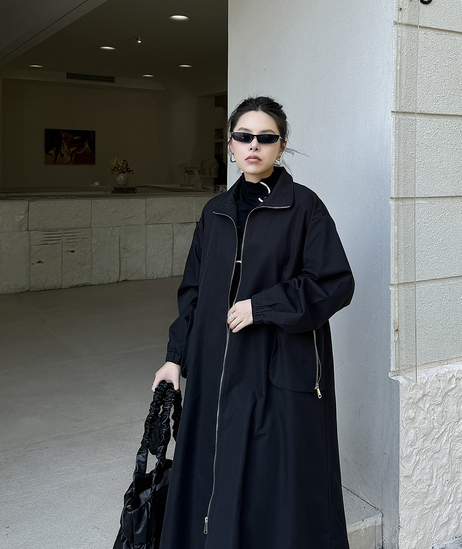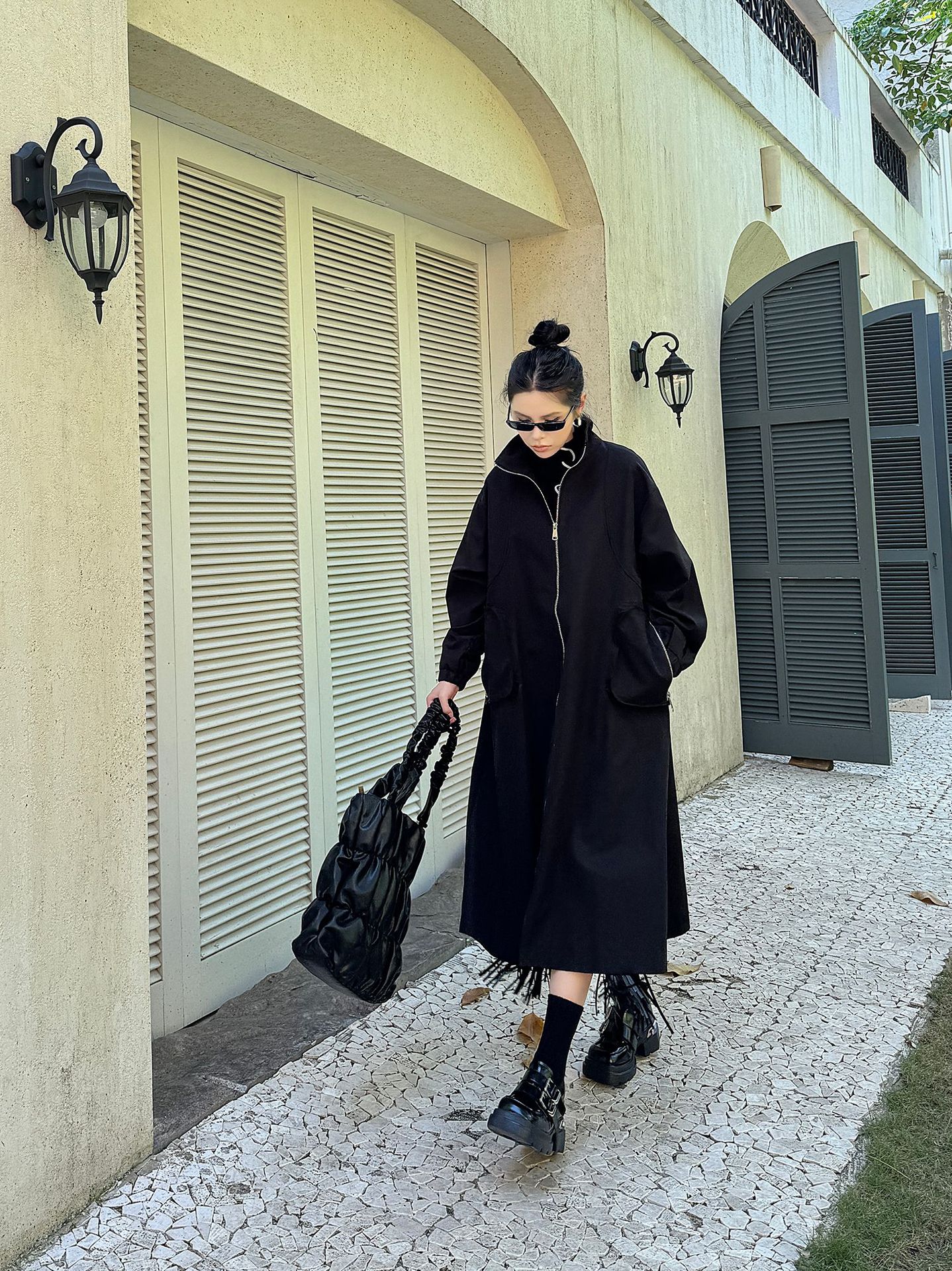 【アウター】ビッグポケット 春秋 ファスナー付き ロング コート【AHシリーズ】