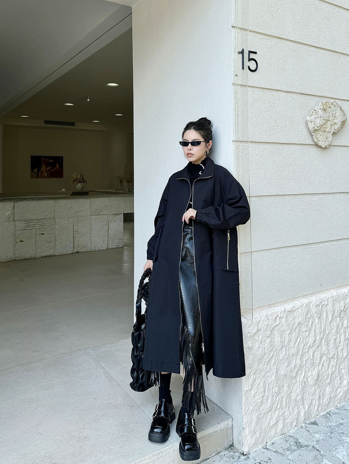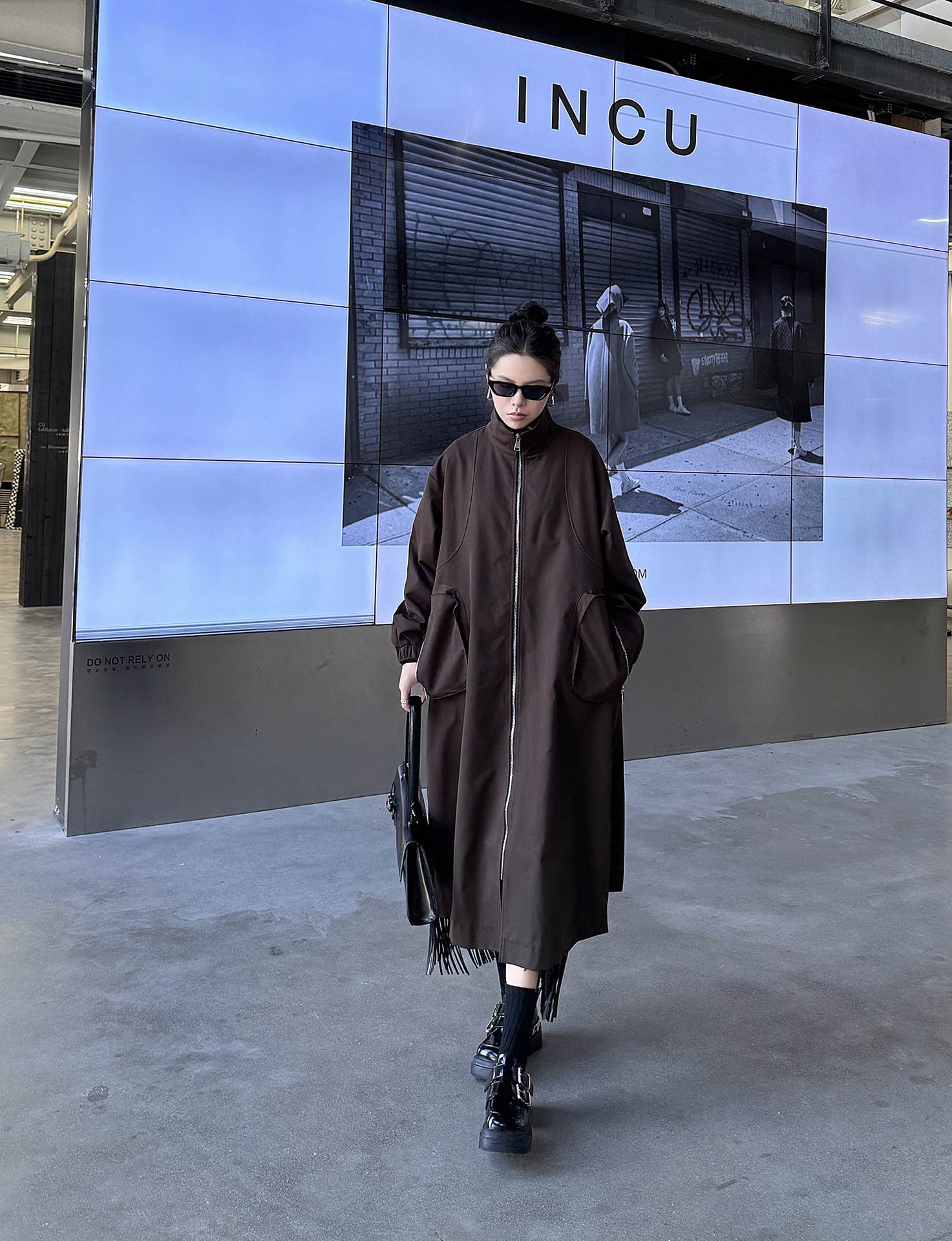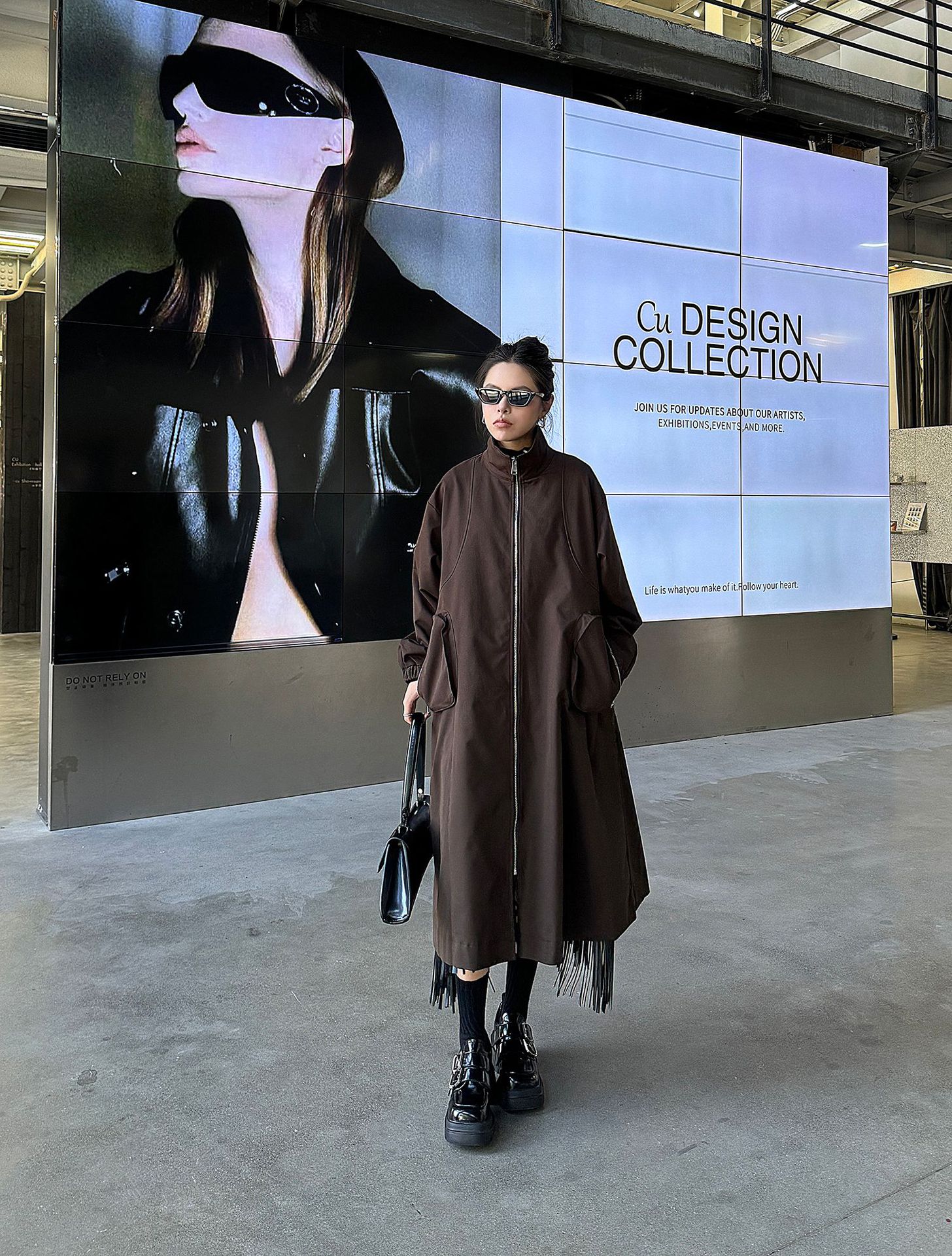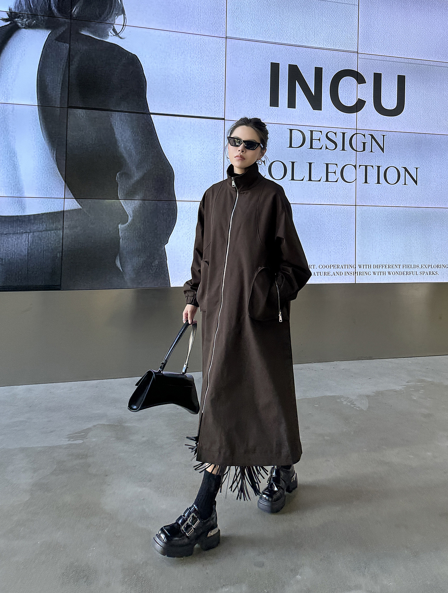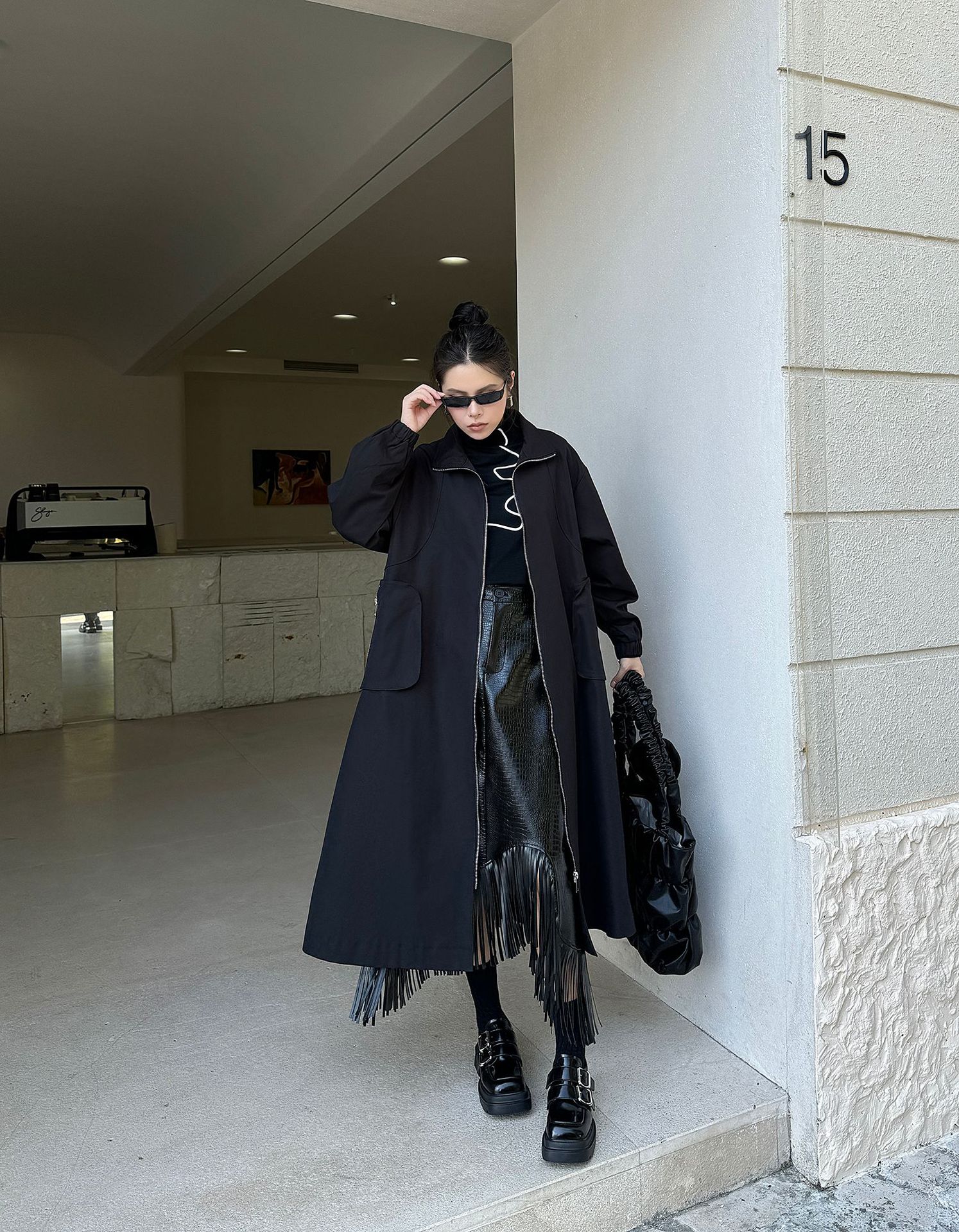 【アウター】ビッグポケット 春秋 ファスナー付き ロング コート【AHシリーズ】