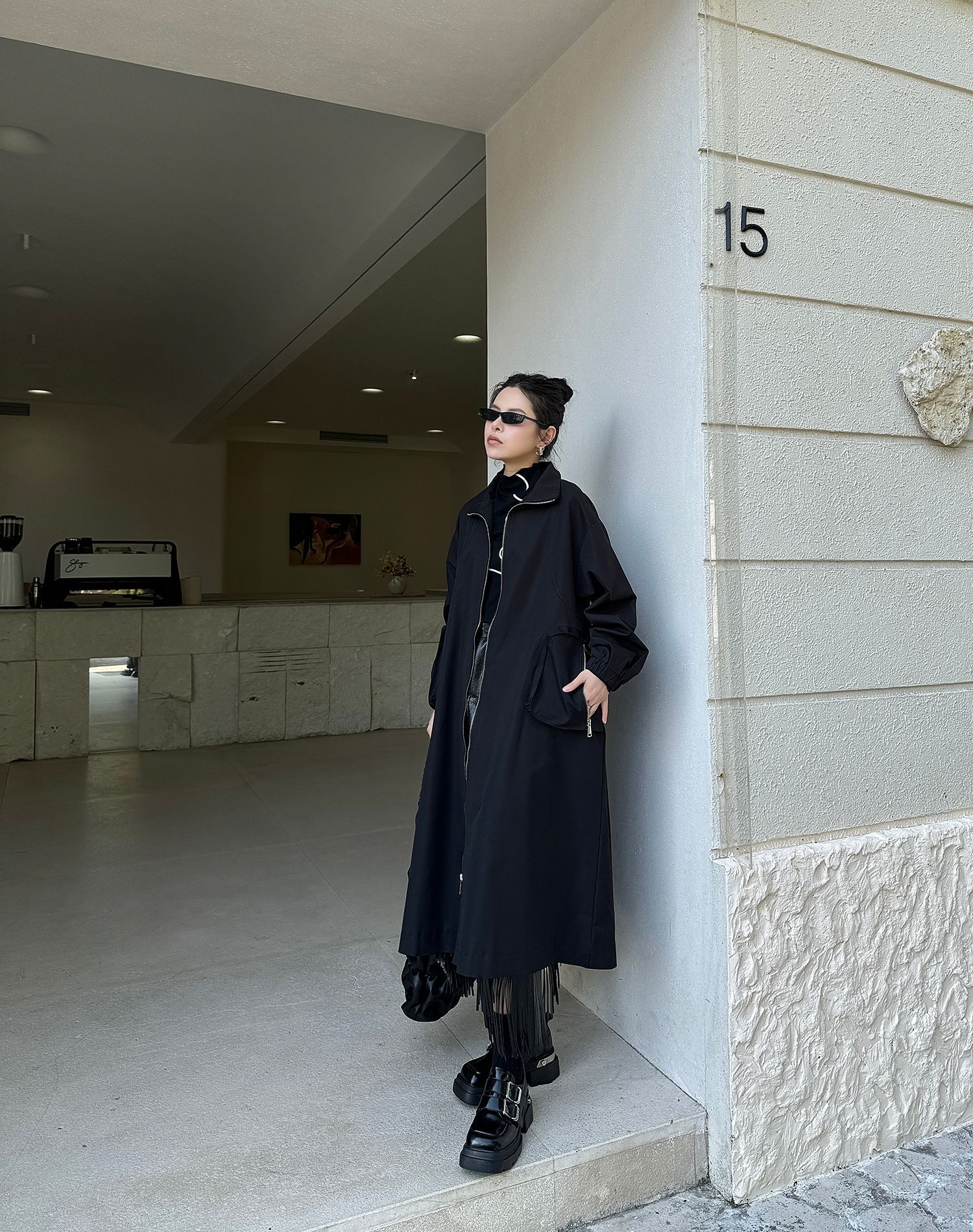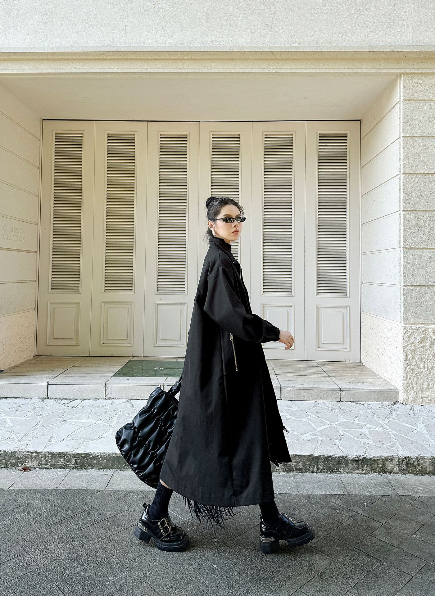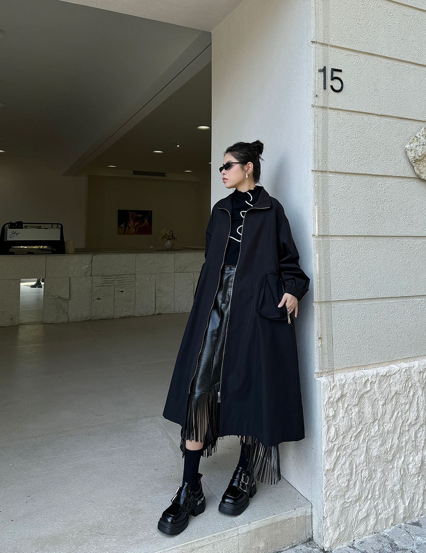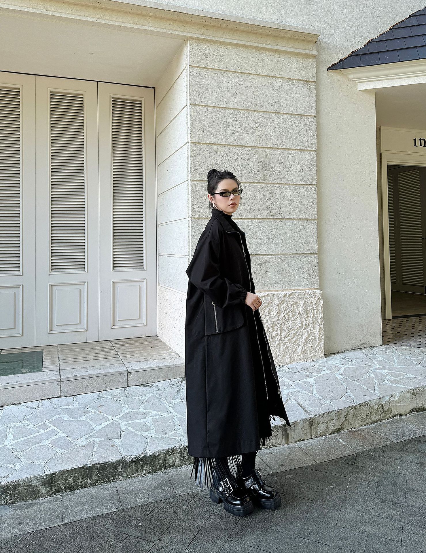 【アウター】ビッグポケット 春秋 ファスナー付き ロング コート【AHシリーズ】
