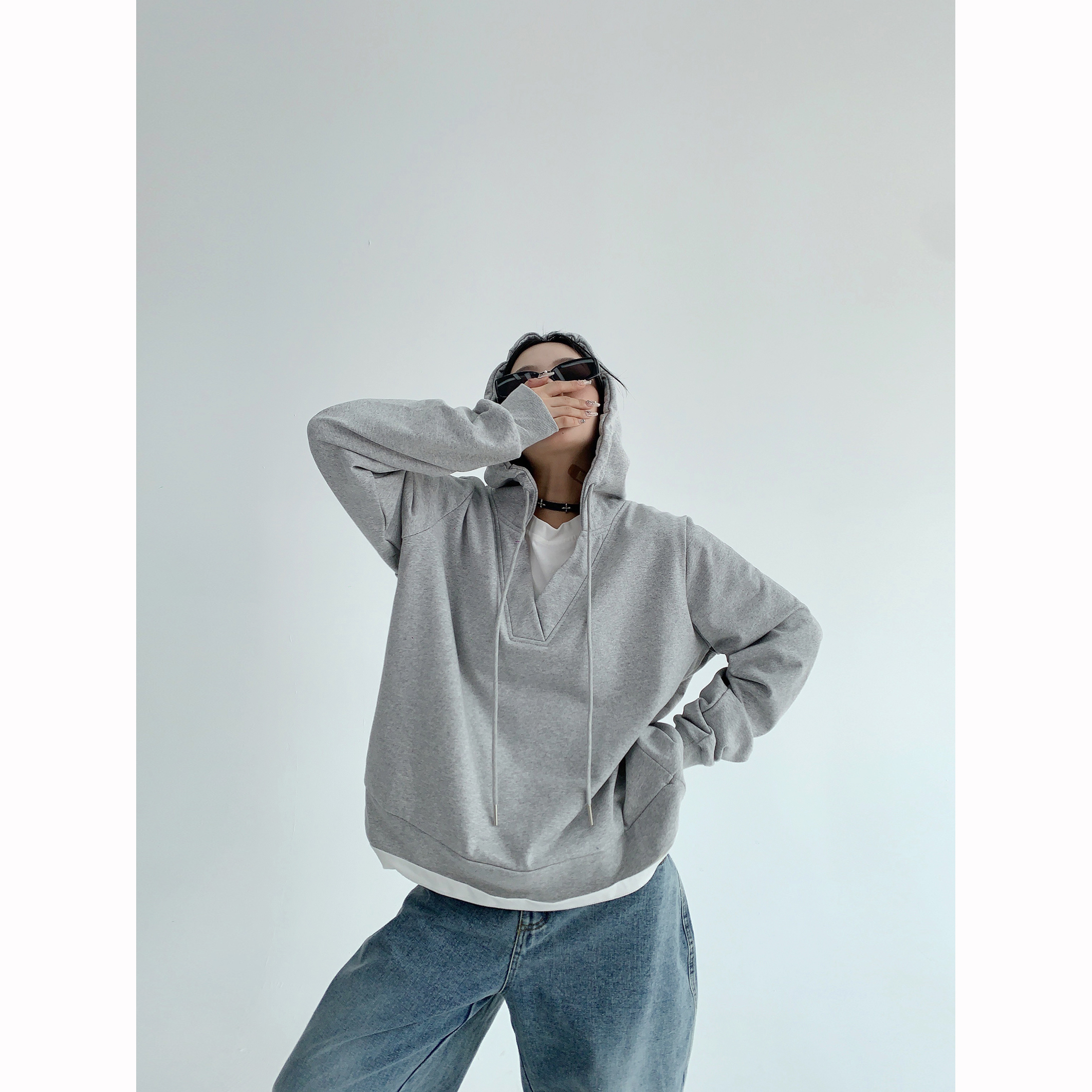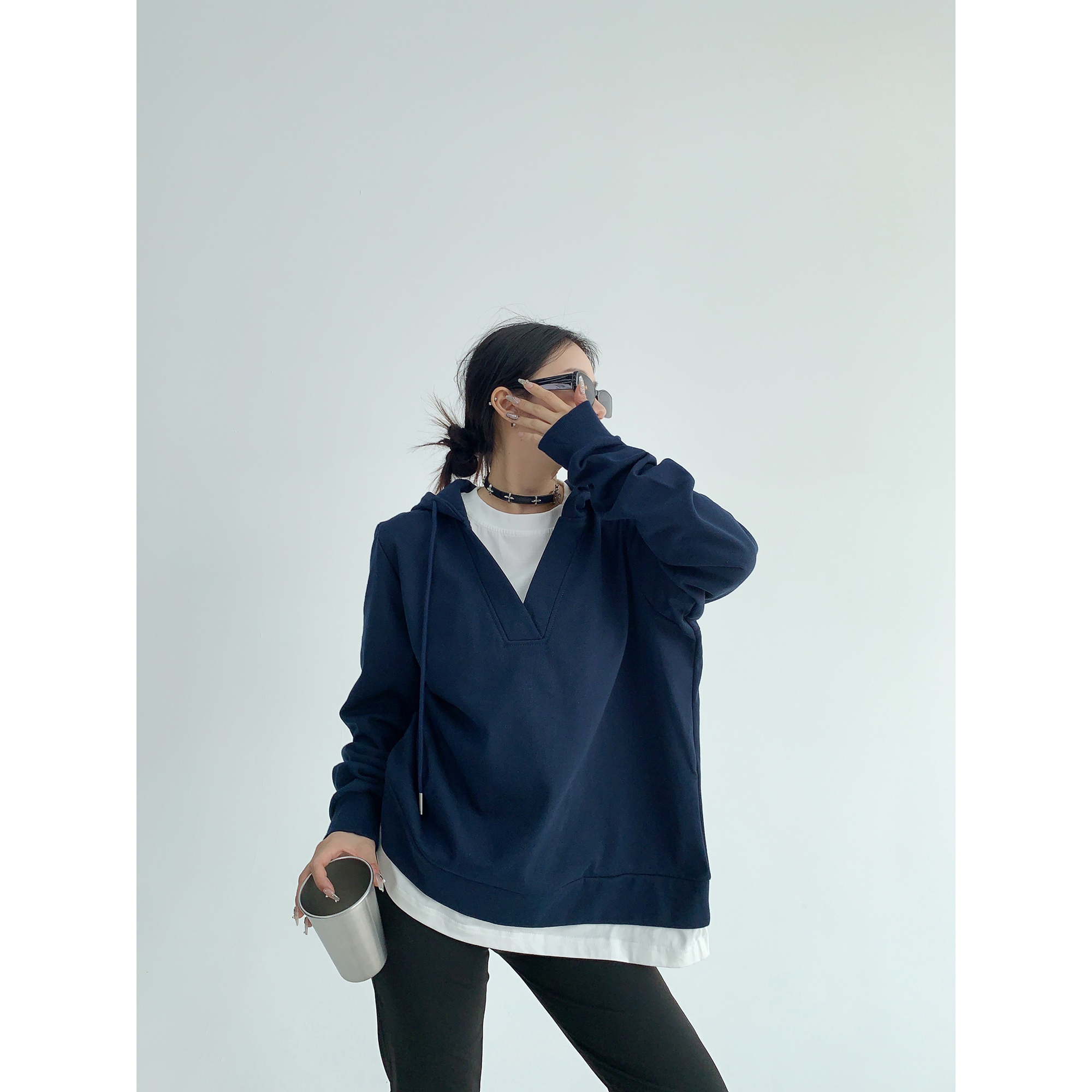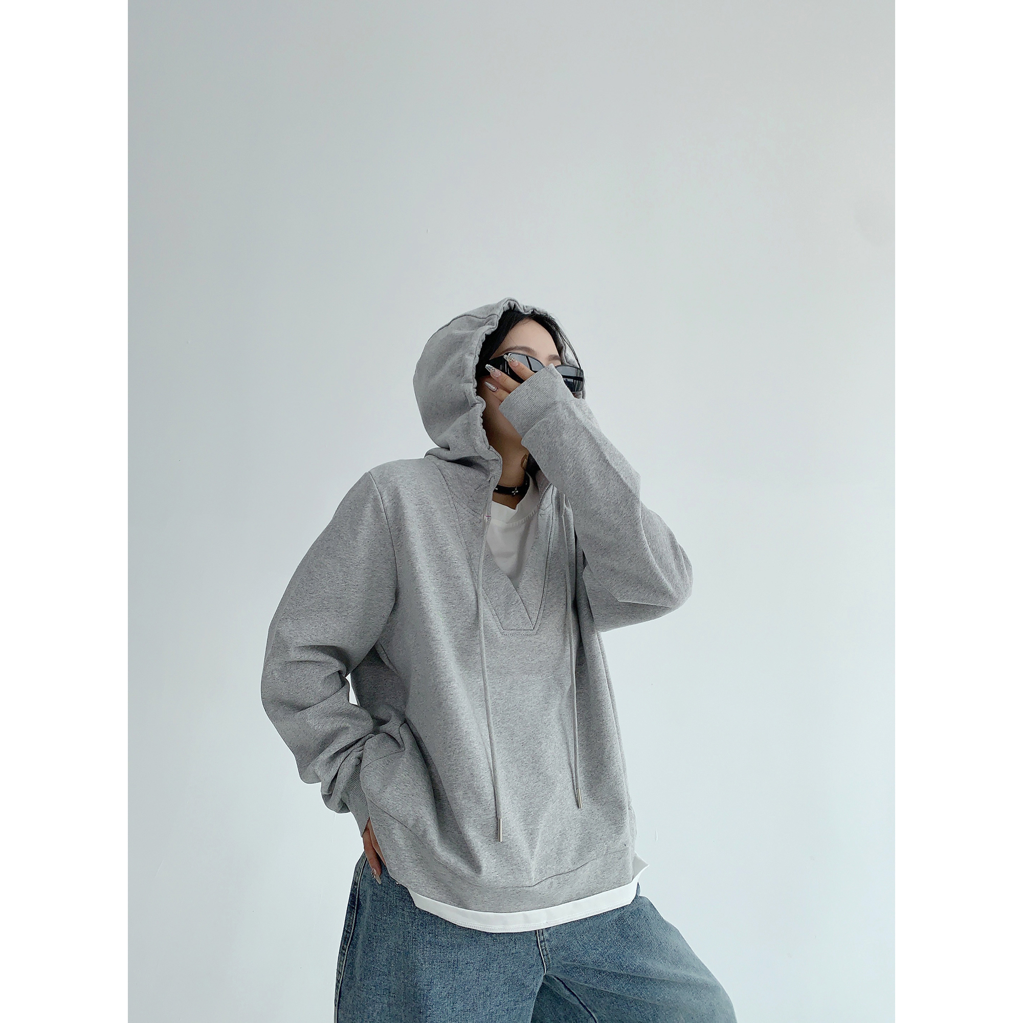 【商品名】【トップス】シンプル 高級感 フェイクレイヤード パーカー