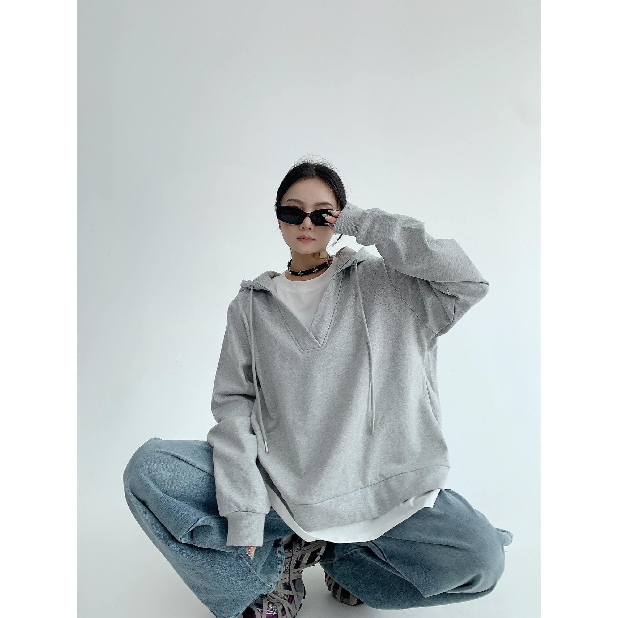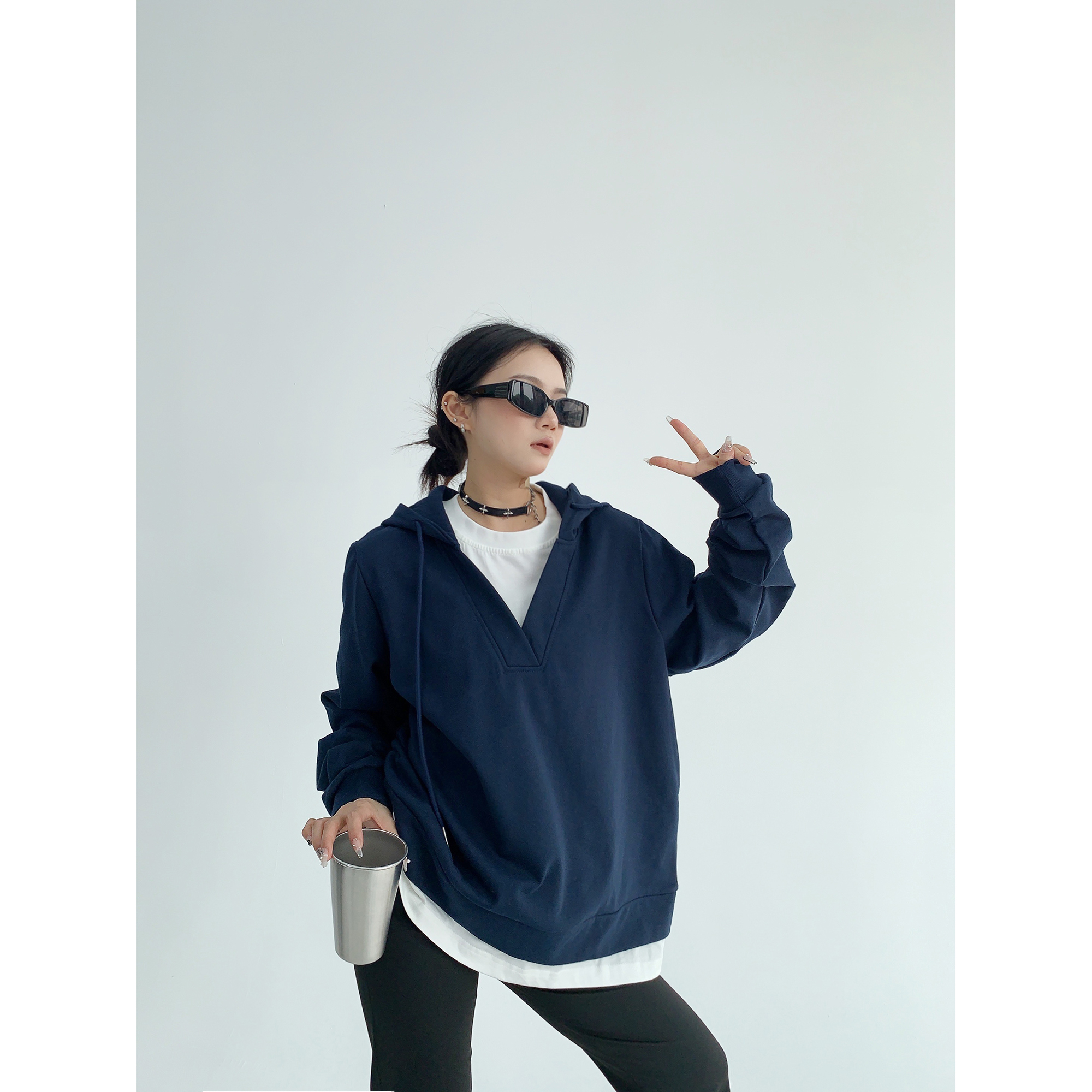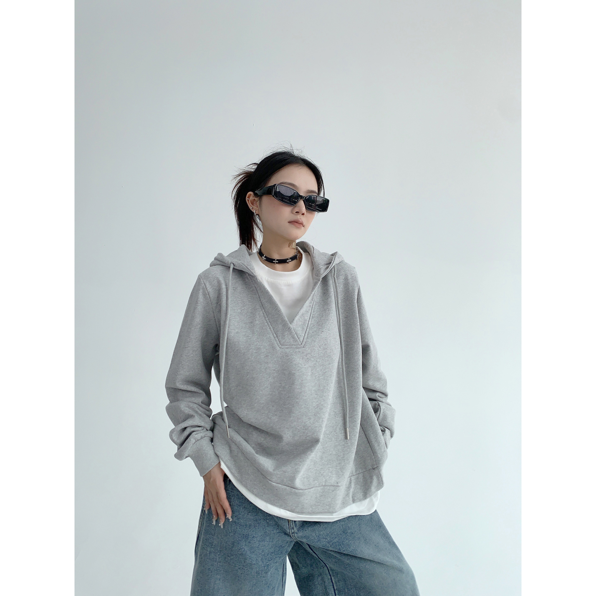 【商品名】【トップス】シンプル 高級感 フェイクレイヤード パーカー