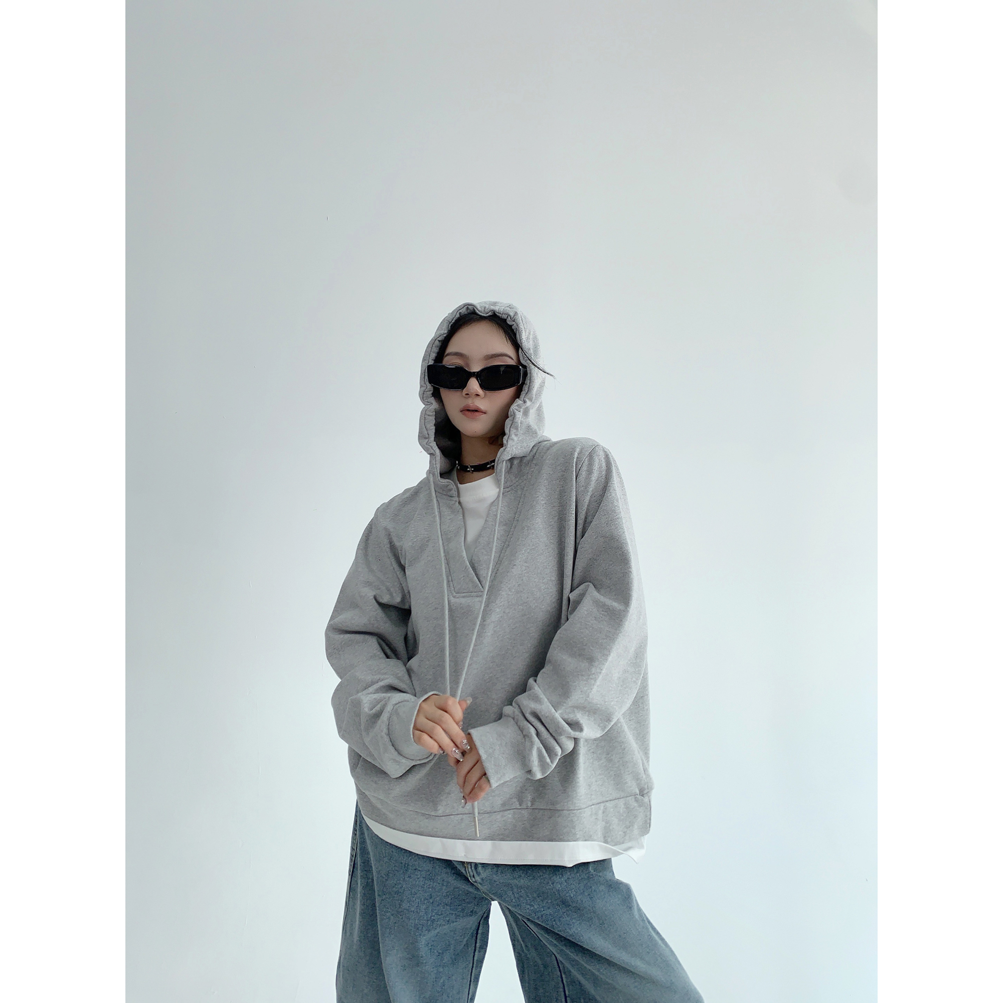 【トップス】秋冬 シンプル 高級感 フェイクレイヤード パーカー【FCシリーズ】