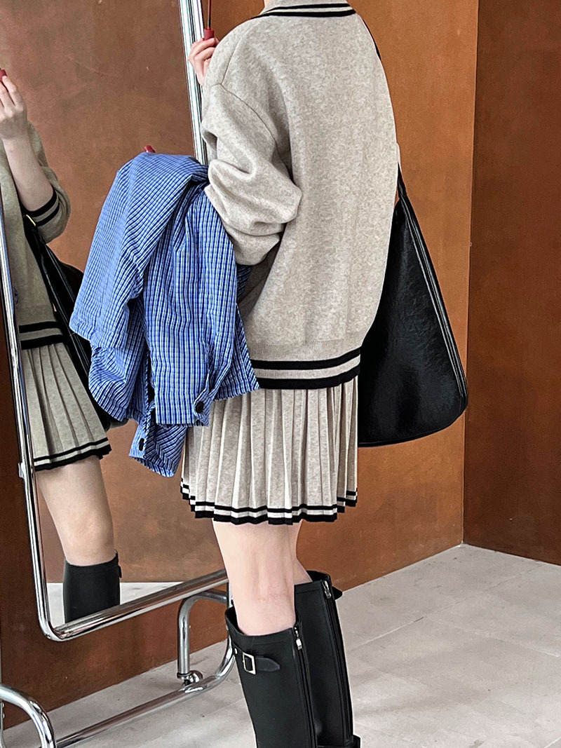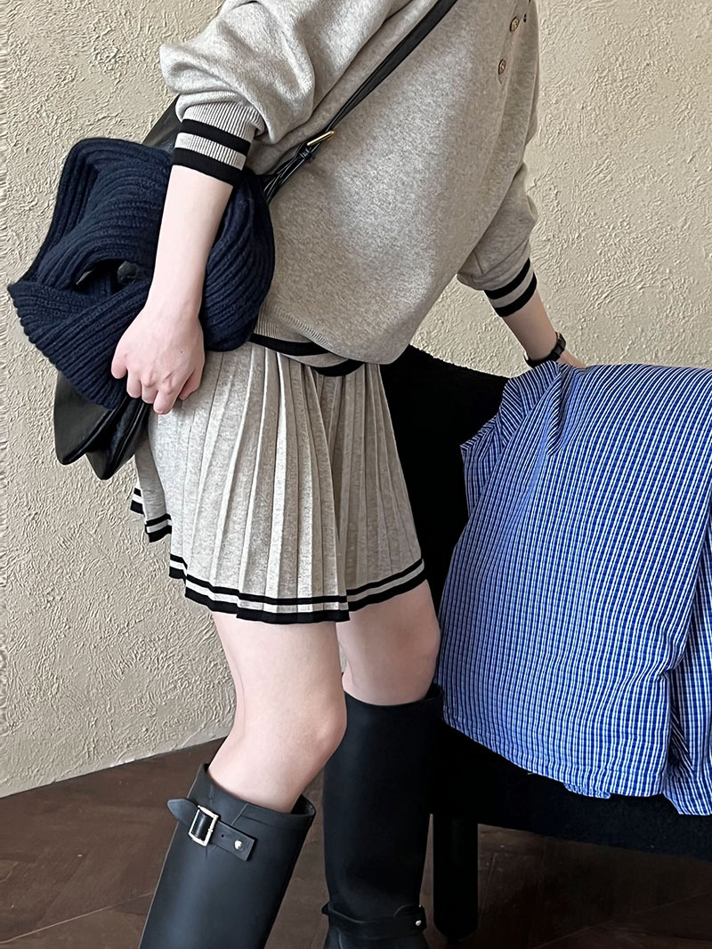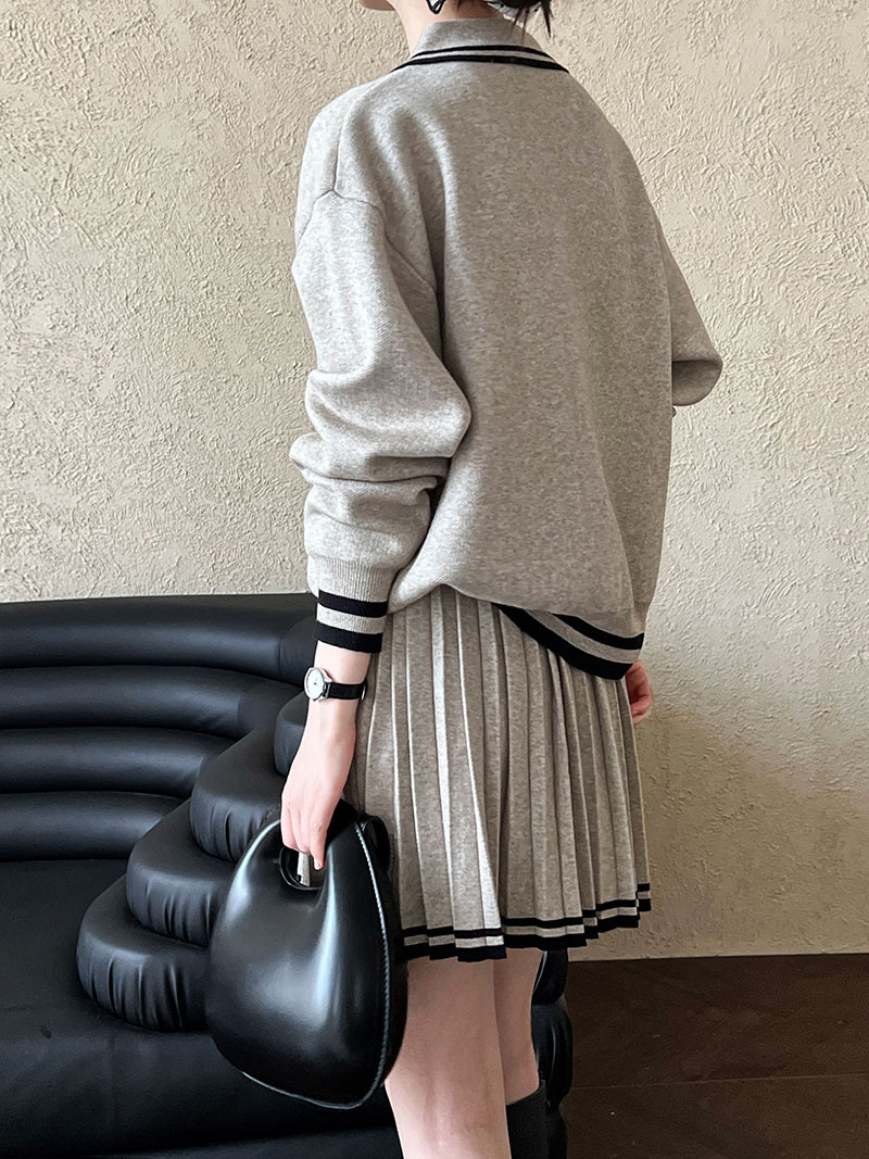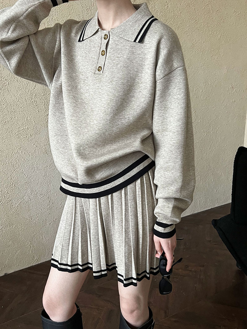 【商品名】【ボトムス】人気沸騰 学園風 ポロ襟パーカー+ハイウエストプリーツスカート 上下セット