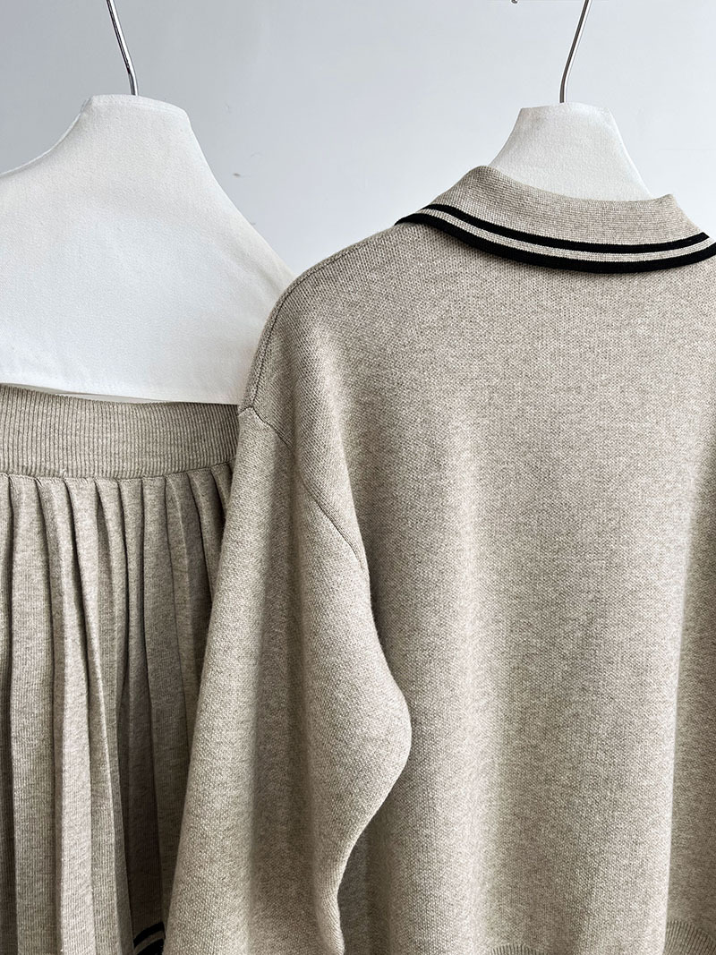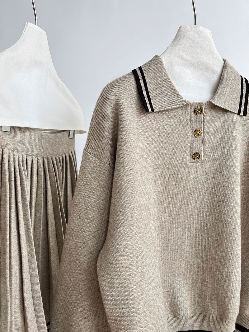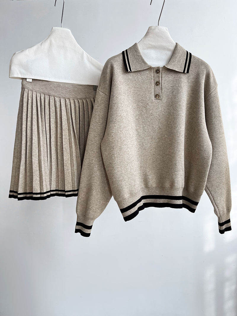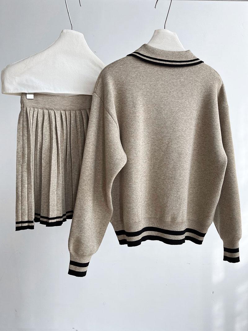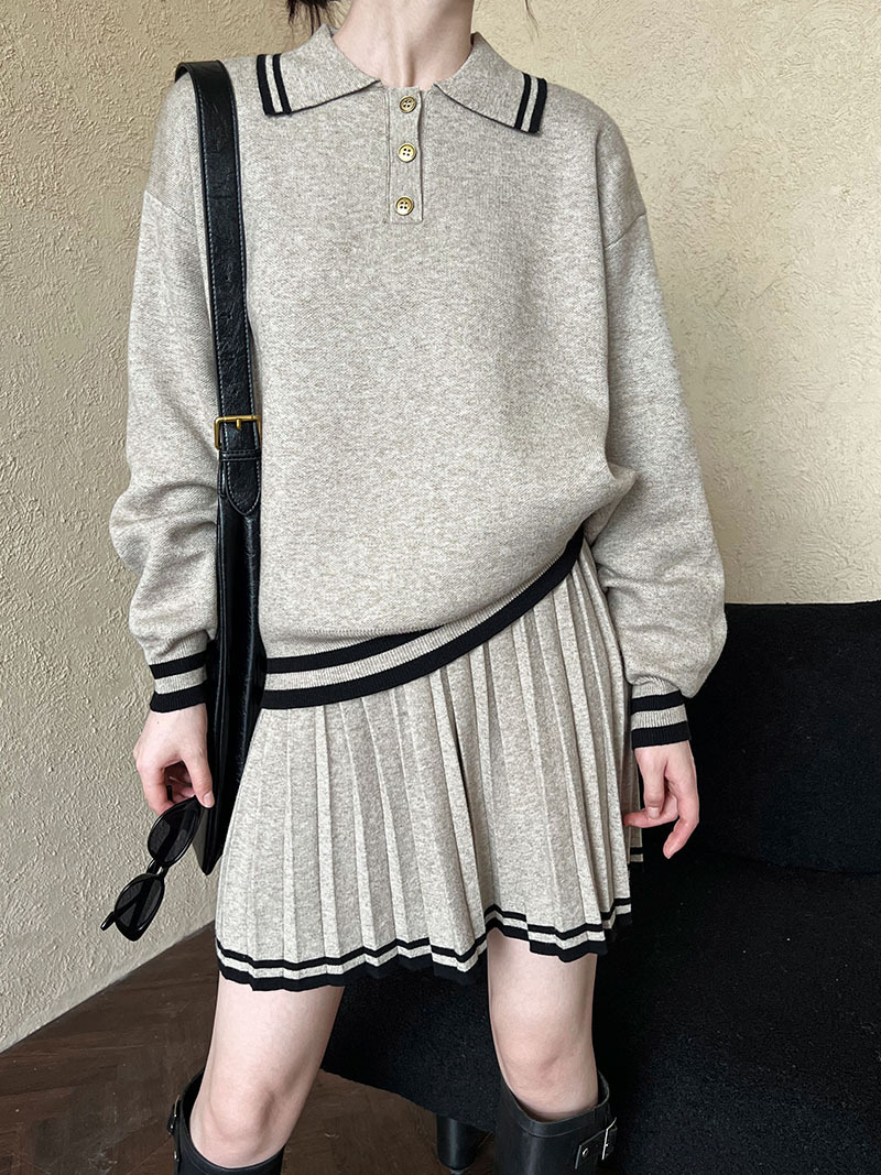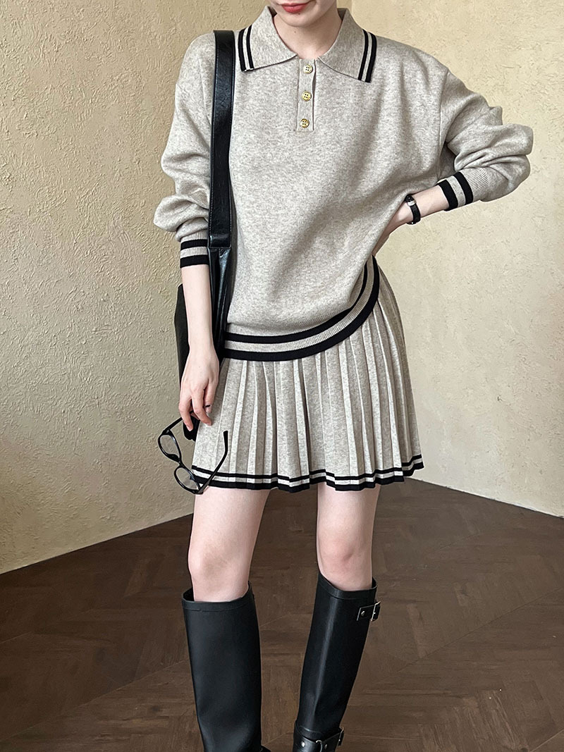 【セットアップ】人気沸騰 学園風 春秋冬 ポロ襟パーカー+ハイウエストプリーツスカート 上下セット【JZシリーズ】