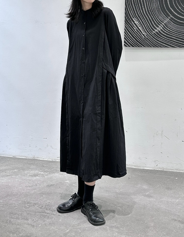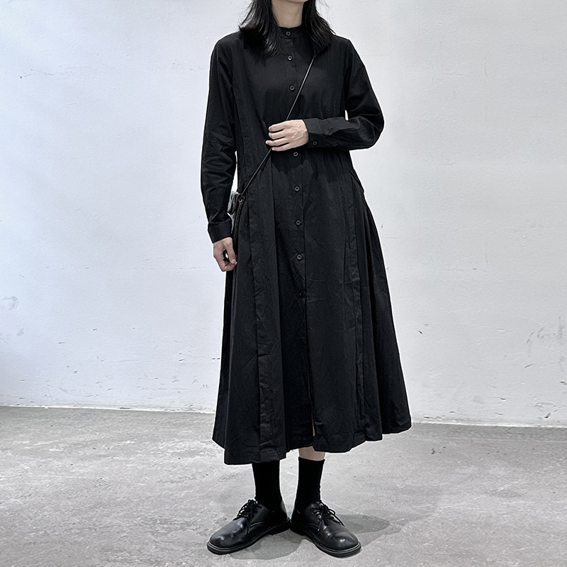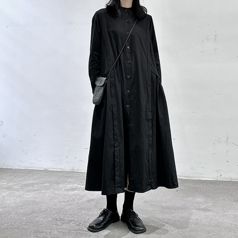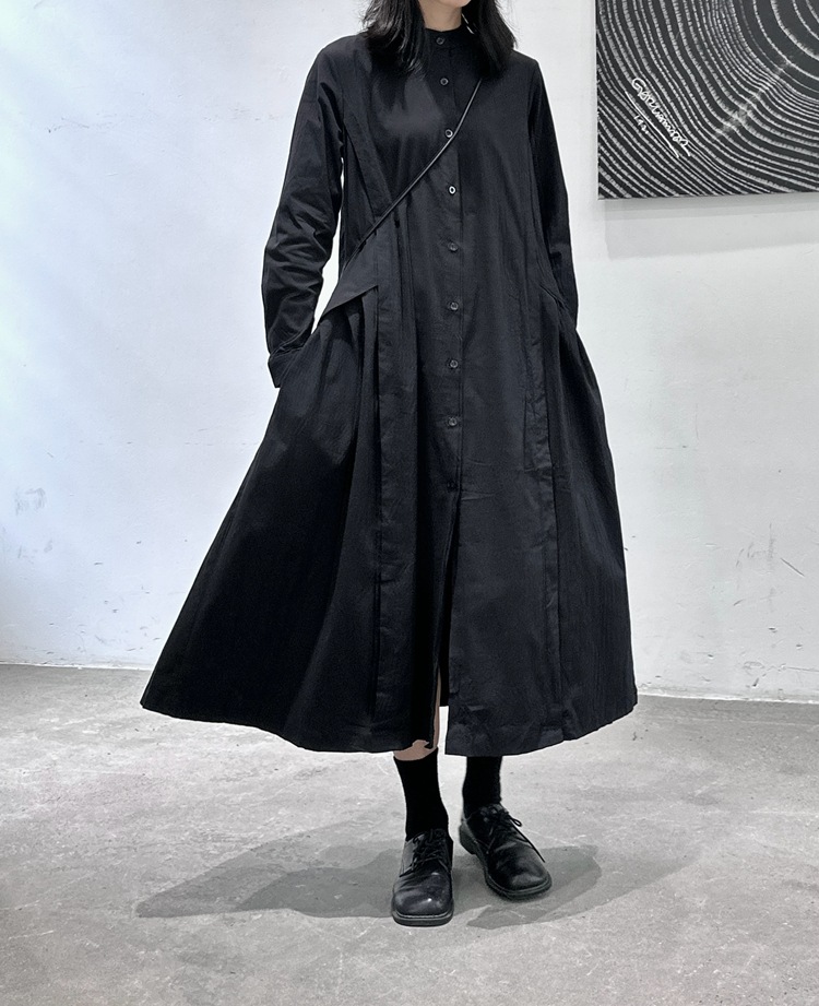 【商品名】【ワンピース 】秋新作 着痩せ ルーズ 長袖 Aライン シャツワンピース
