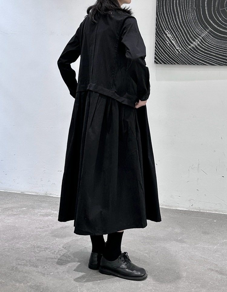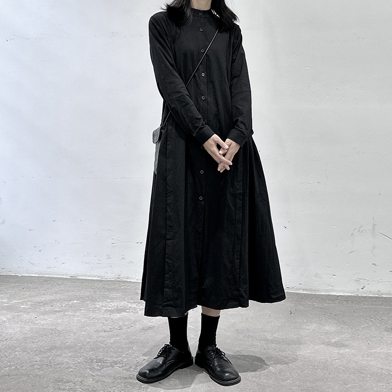 【ワンピース】フレンチレトロ 切替デザイン 大ポケット 長袖 ワンピース 秋新作 ゆったり 【JZシリーズ】