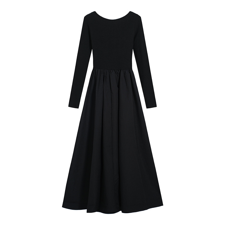 【ワンピース】細見え 日系 Vネック 無地 長袖ワンピース 切替デザイン ゆったり 気質ロング【JZシリーズ】【AHシリーズ】