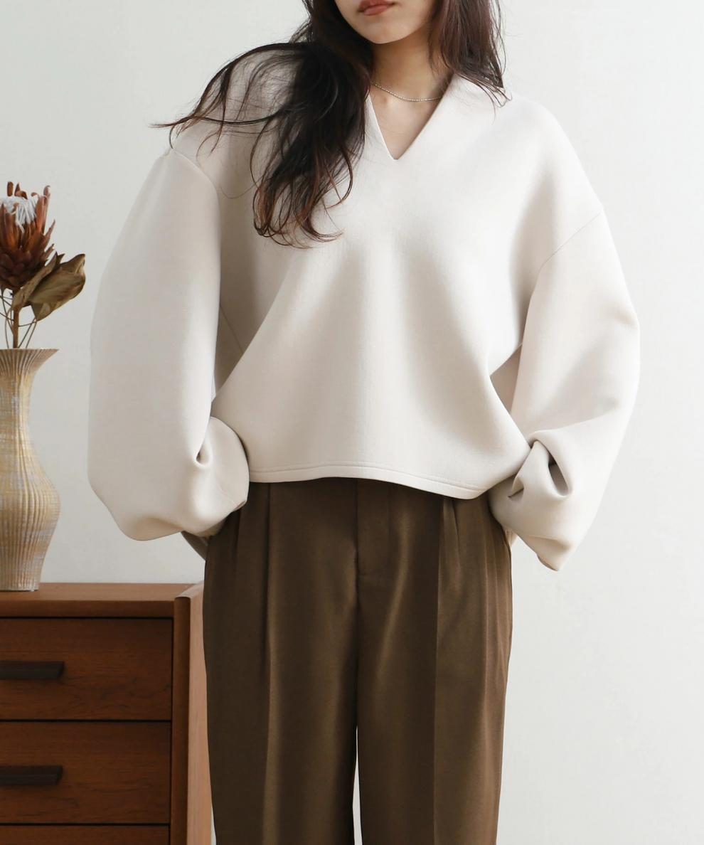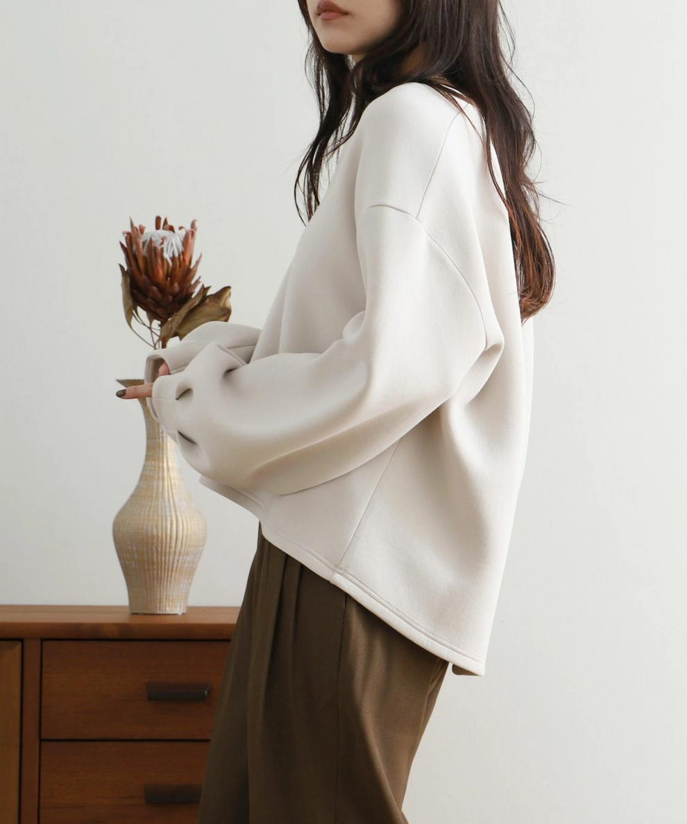 【トップス】秋冬 3色 快適生地 無地 ゆったり Vネック ランタン 長袖 トレーナー ジャケット パーカー
