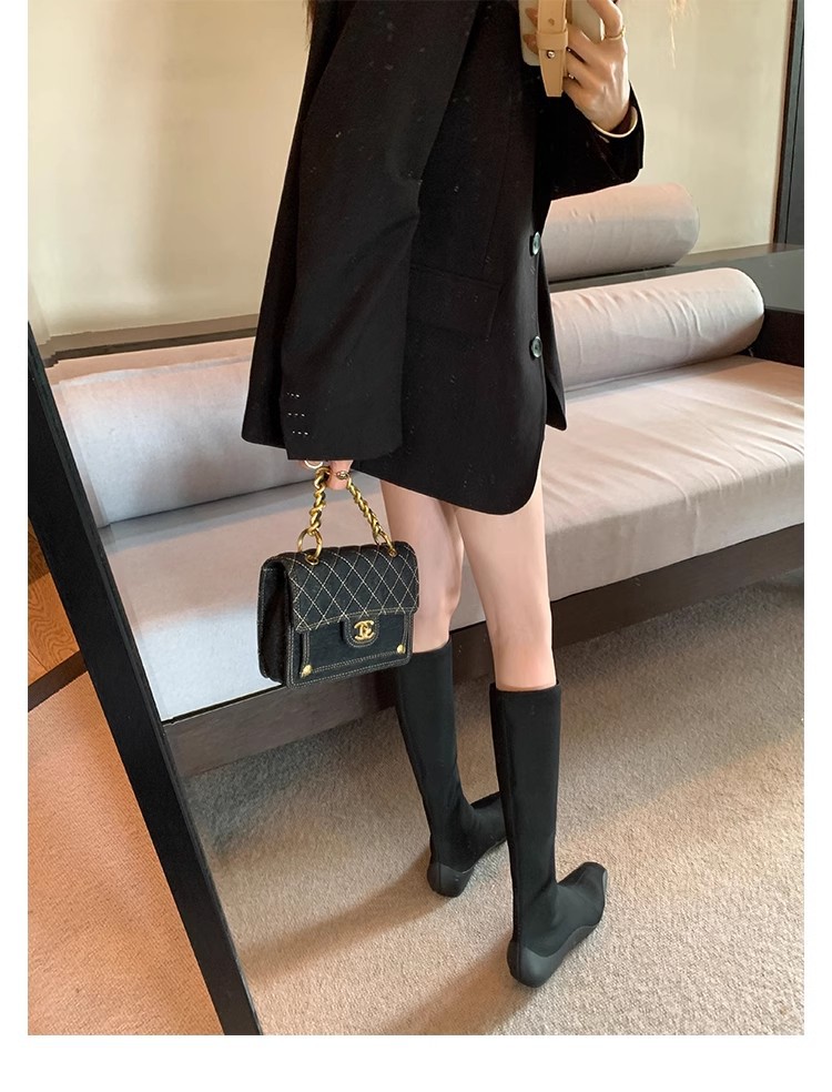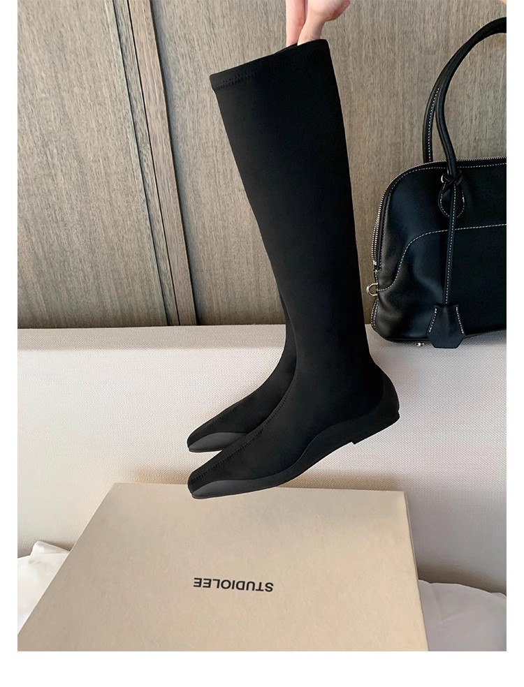 【シューズ】春秋冬 スクエアトゥ 着痩せ効果 ロング ブーツ