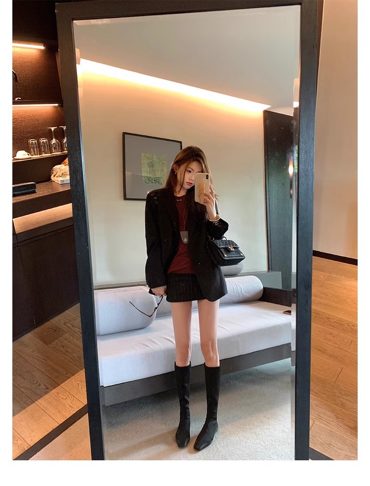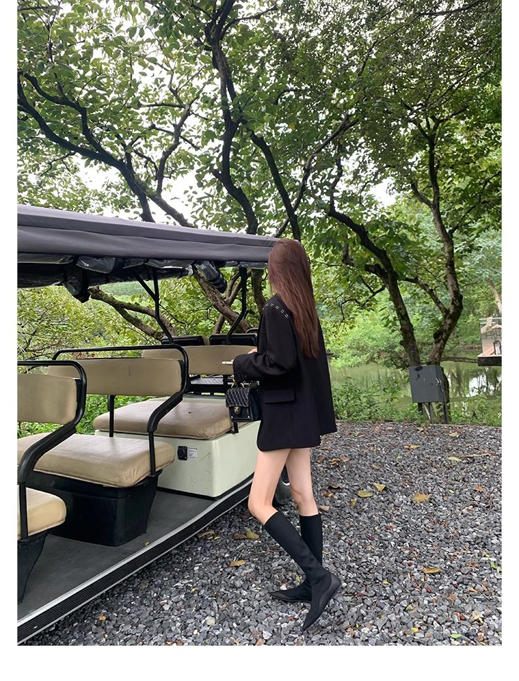 【商品名】【24AW】【シューズ】スクエアトゥ 着痩せ効果 ロング ブーツ