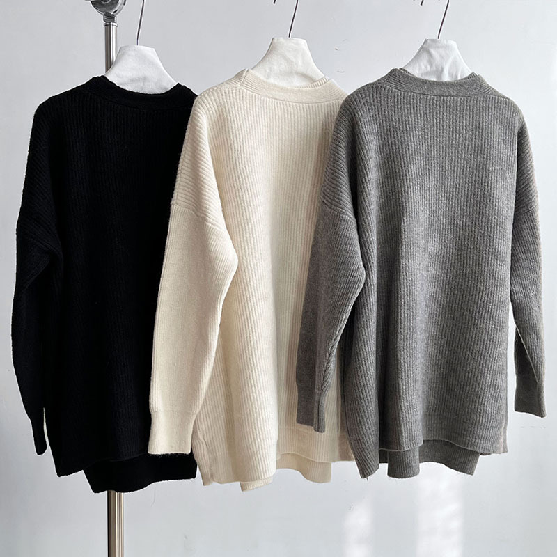 【トップス】ルーズ ファスナー付き 立襟 春 秋 冬 プルオーバー ニット セーター 【FCシリーズ】