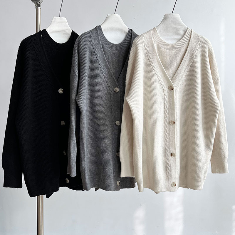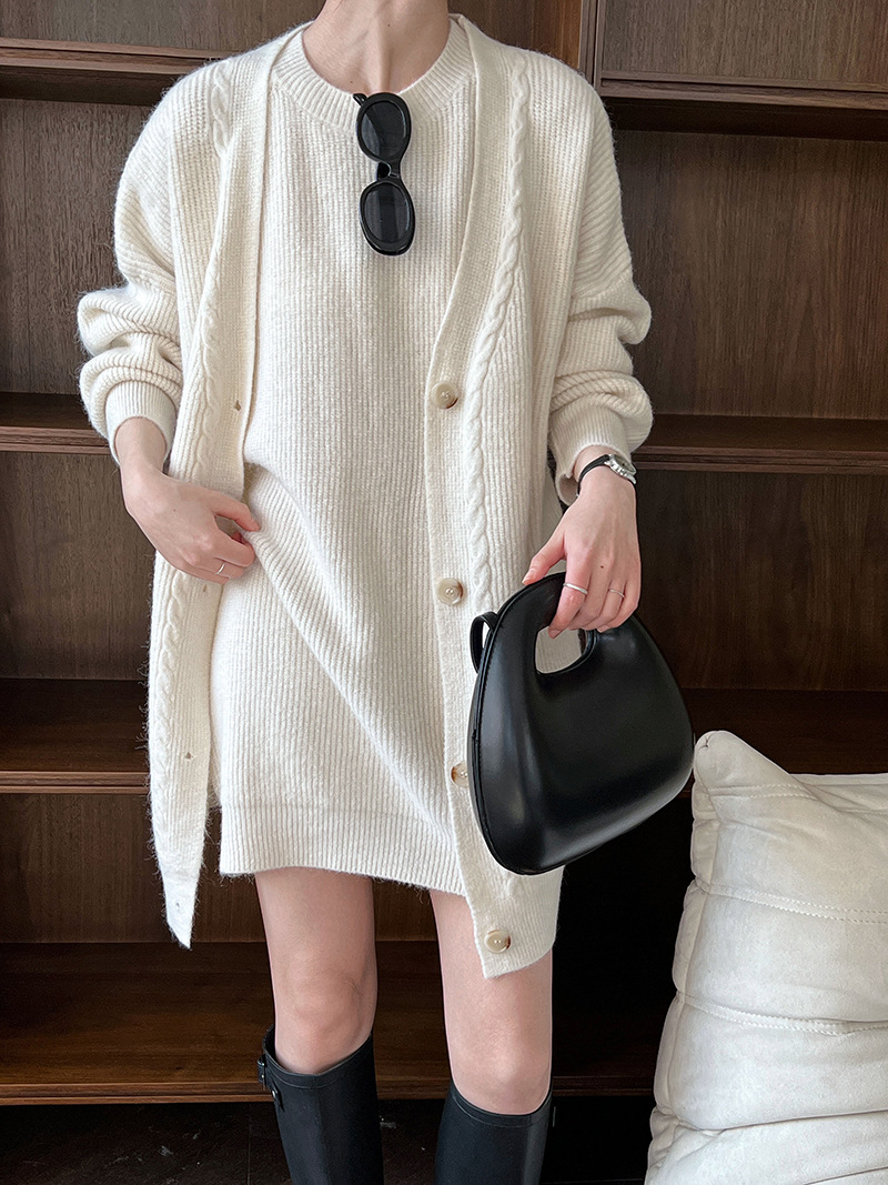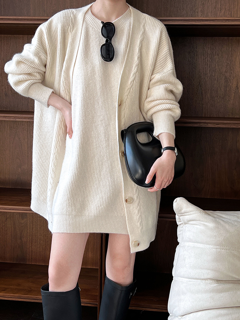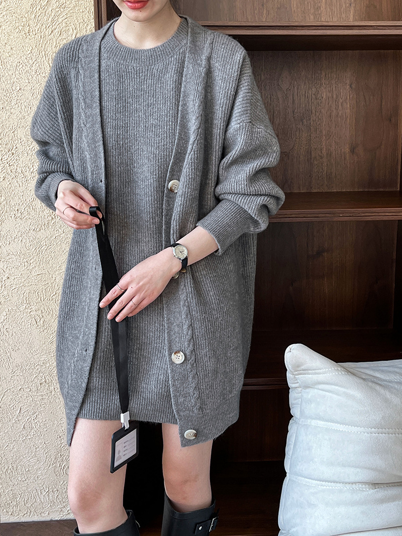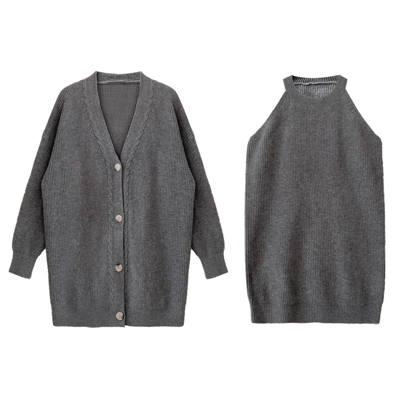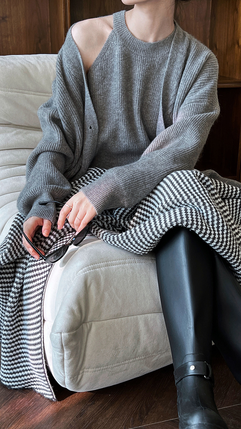 【セットアップ】春秋冬 シンプルなのに魅力的 キャミソール+カーディガン 2点セット 【SNシリーズ】
