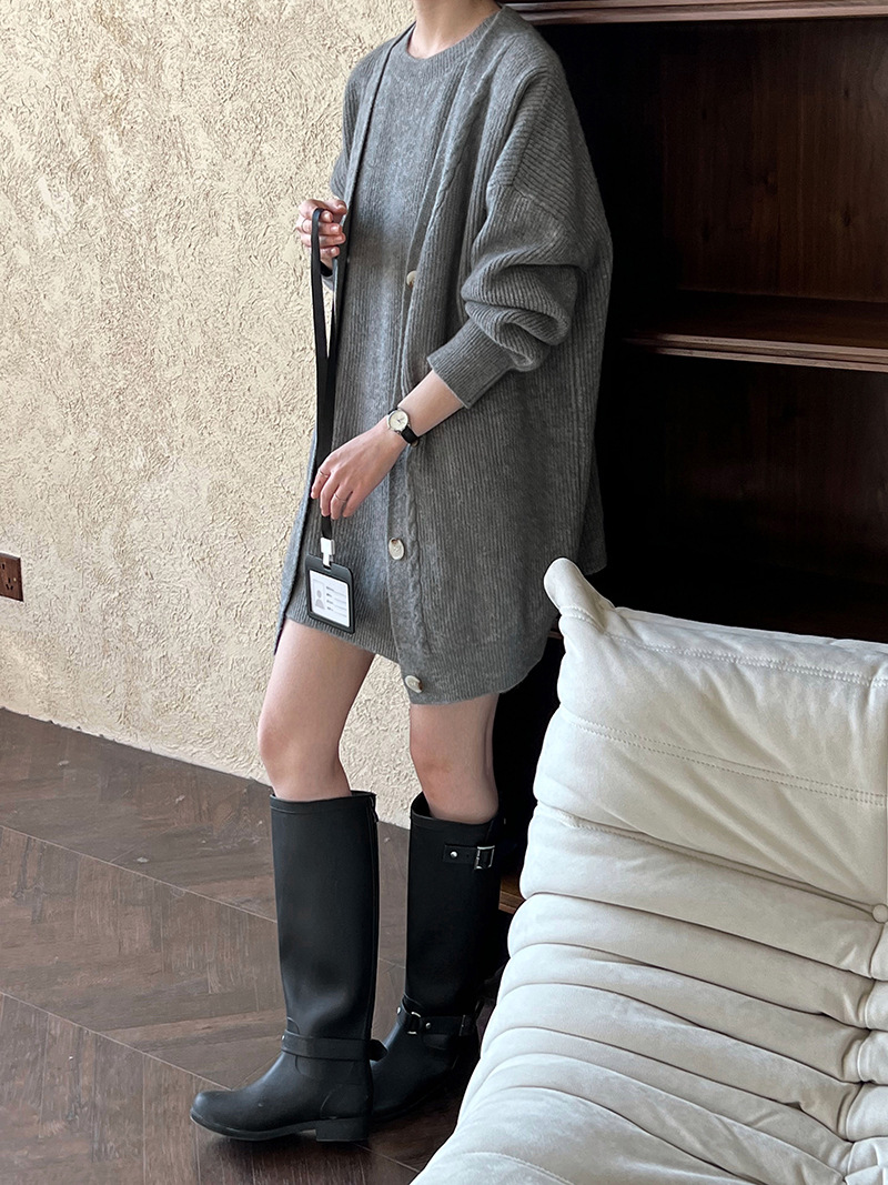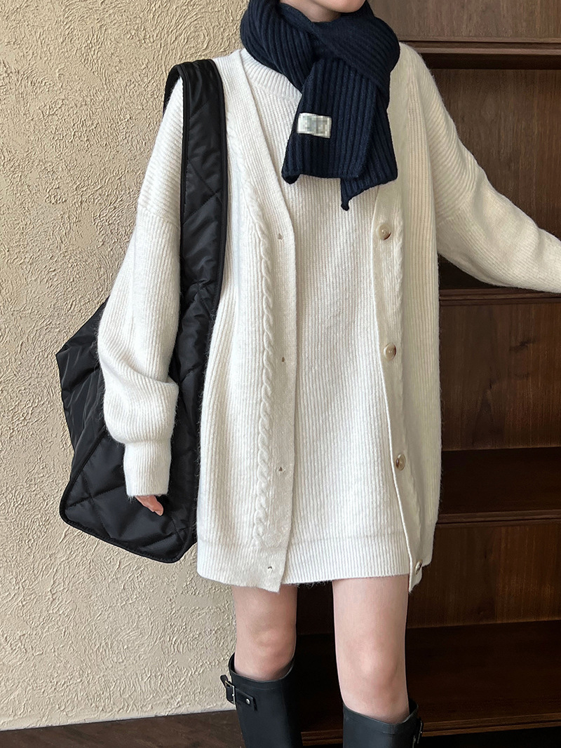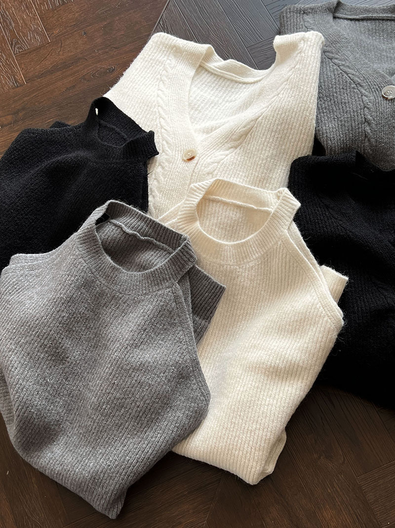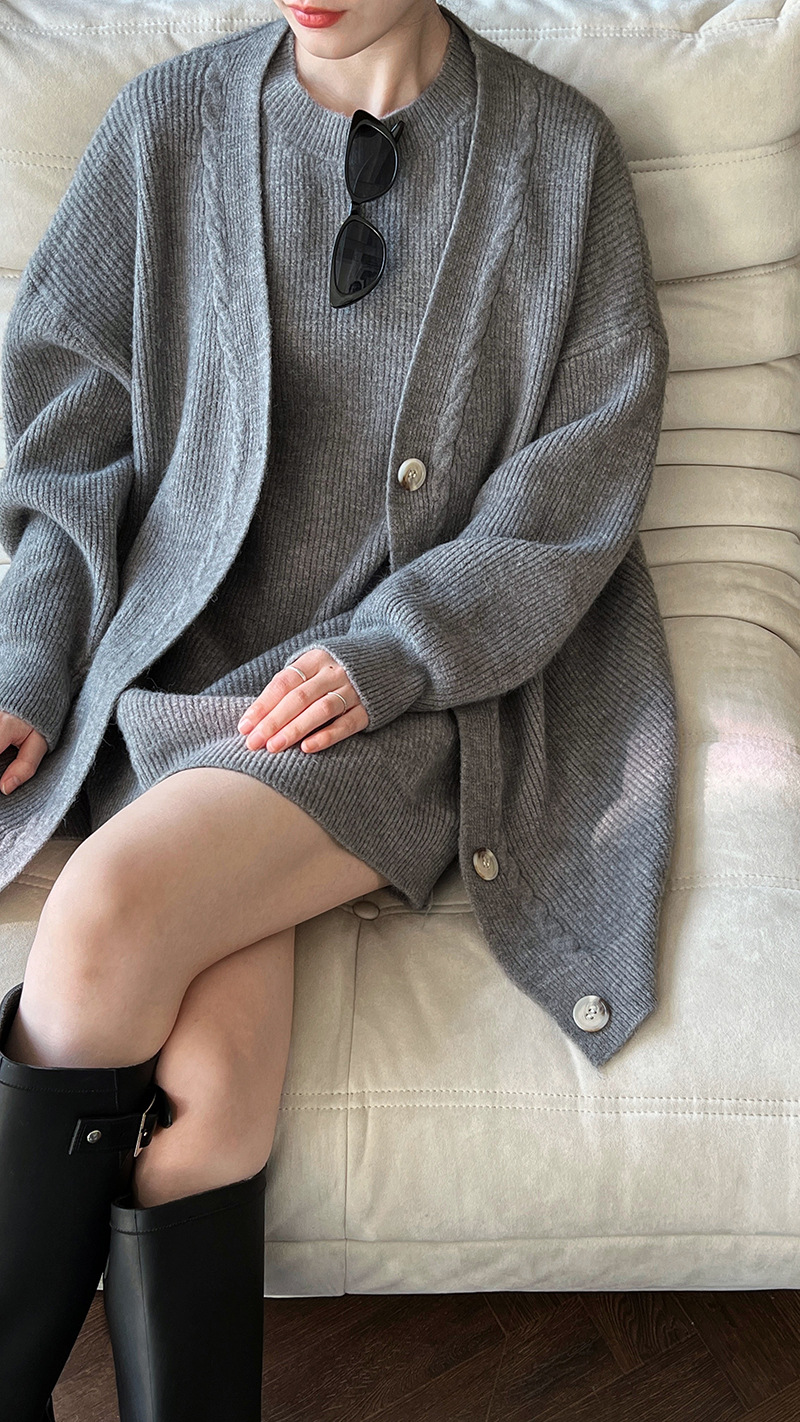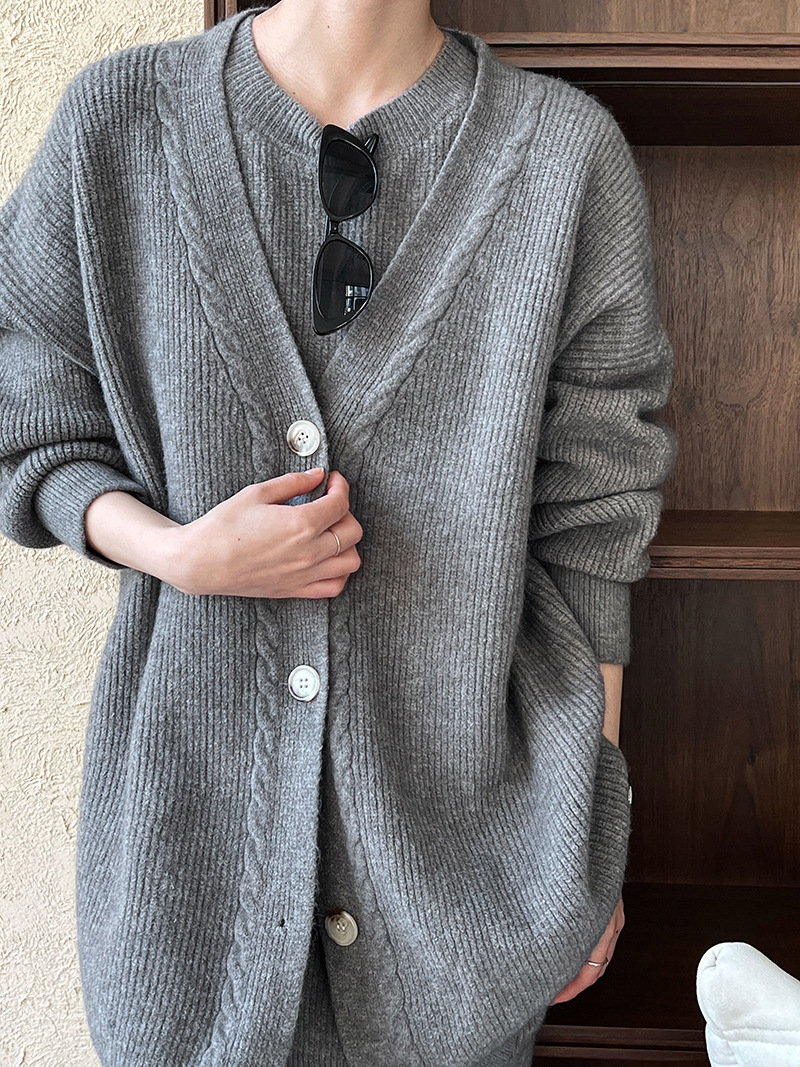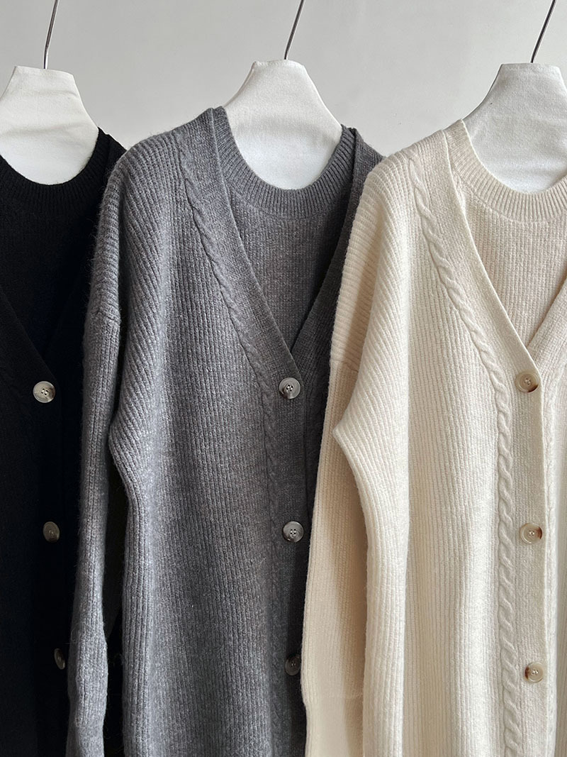 【セットアップ】春秋冬 シンプルなのに魅力的 キャミソール+カーディガン 2点セット 【SNシリーズ】