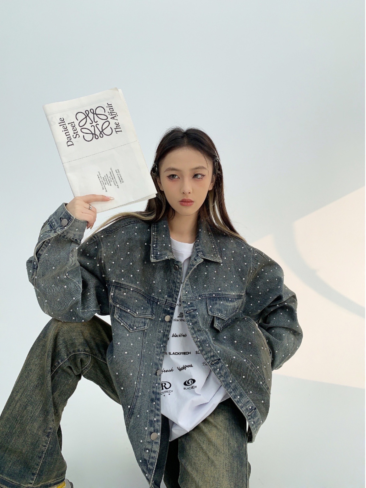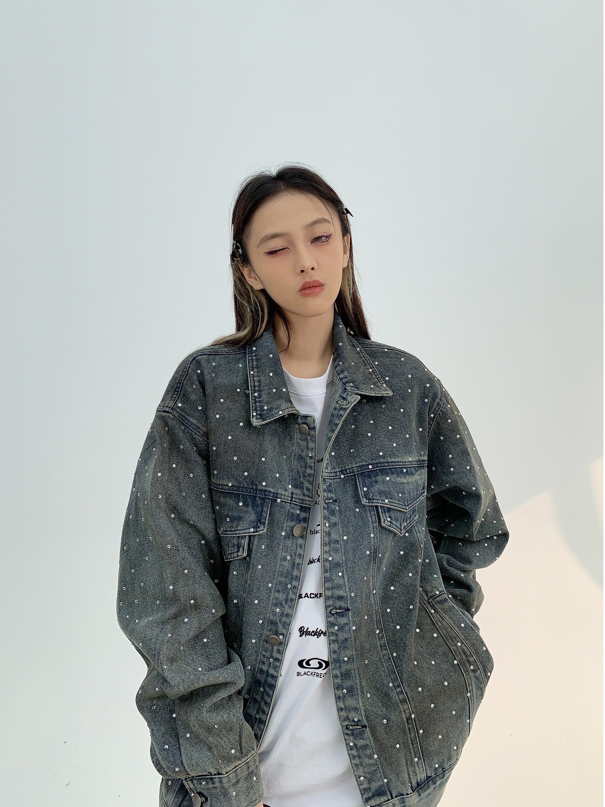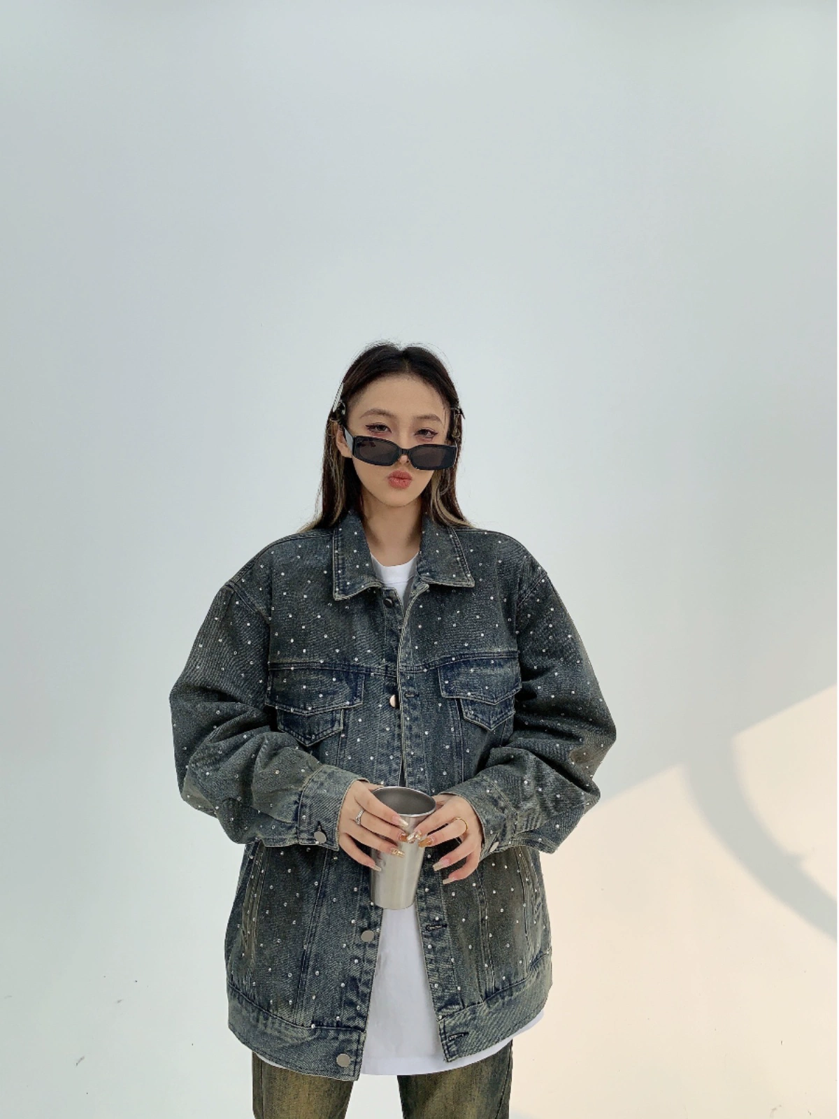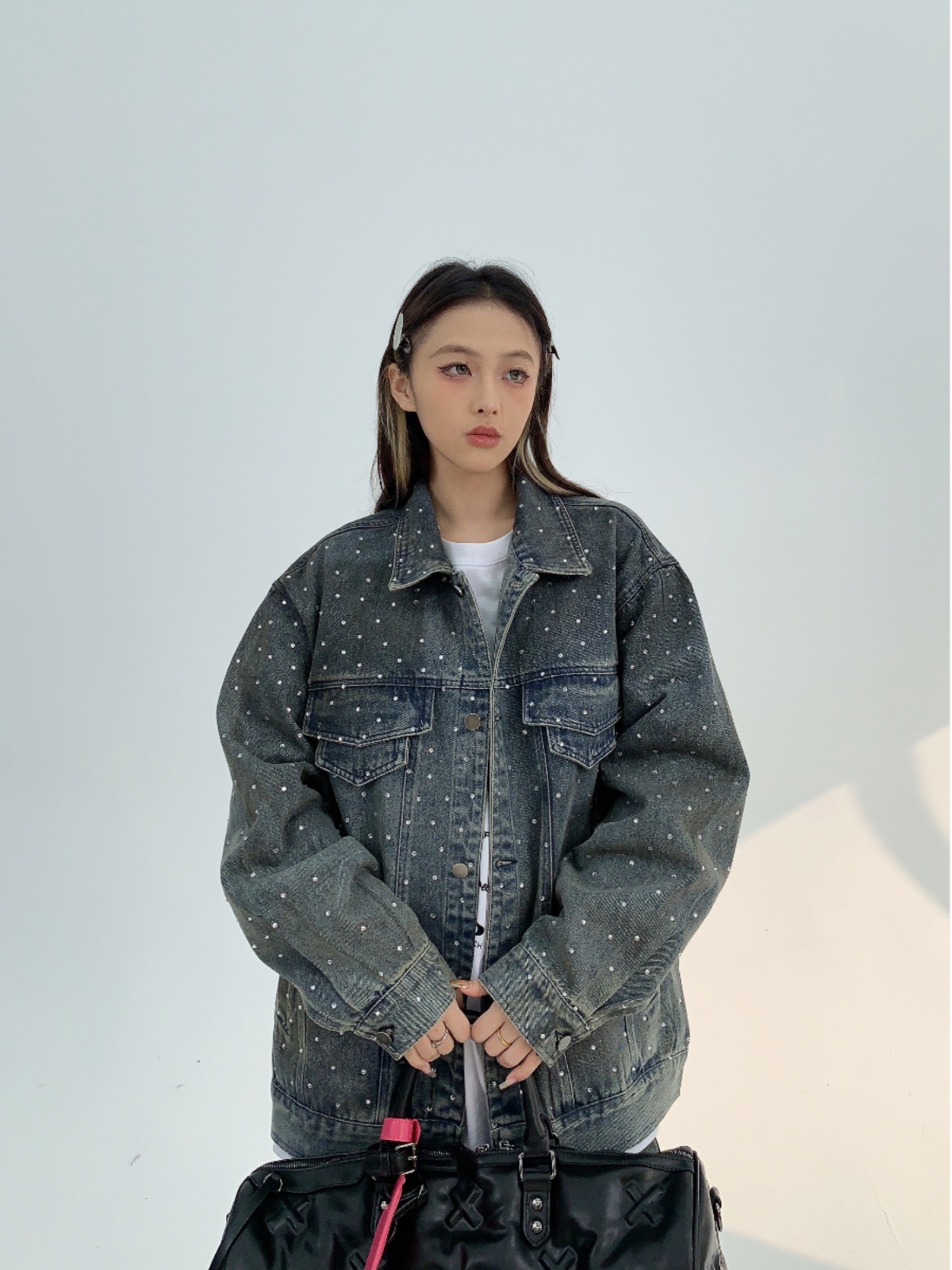 【アウター】エメラルド 春秋 ヴィンテージ風 オーバーサイズ デニム ジャケット 【FCシリーズ】