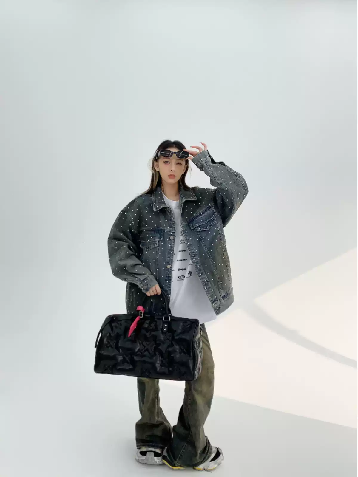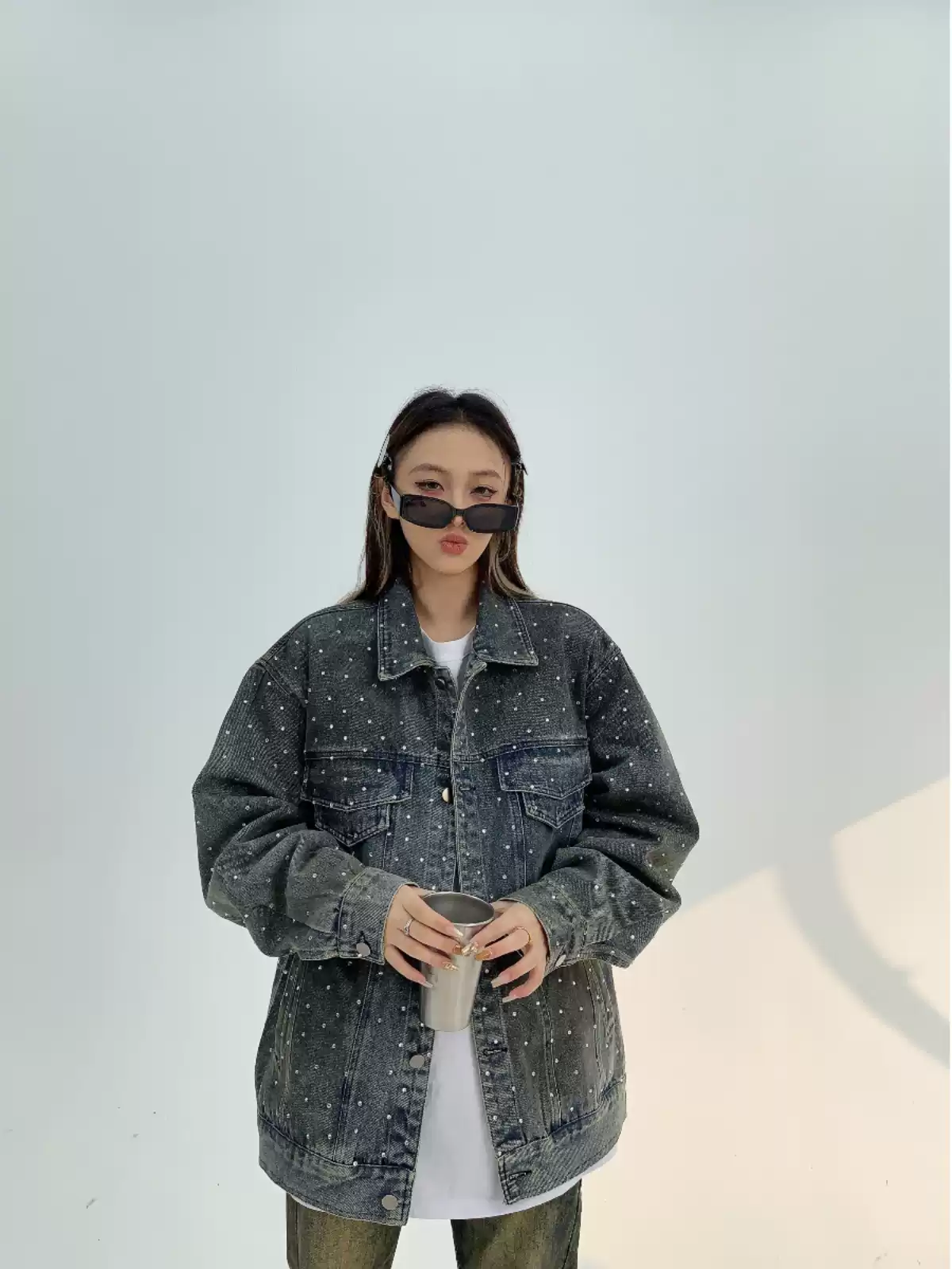 【商品名】【アウター】エメラルド ヴィンテージ風 オーバーサイズ デニム ジャケット