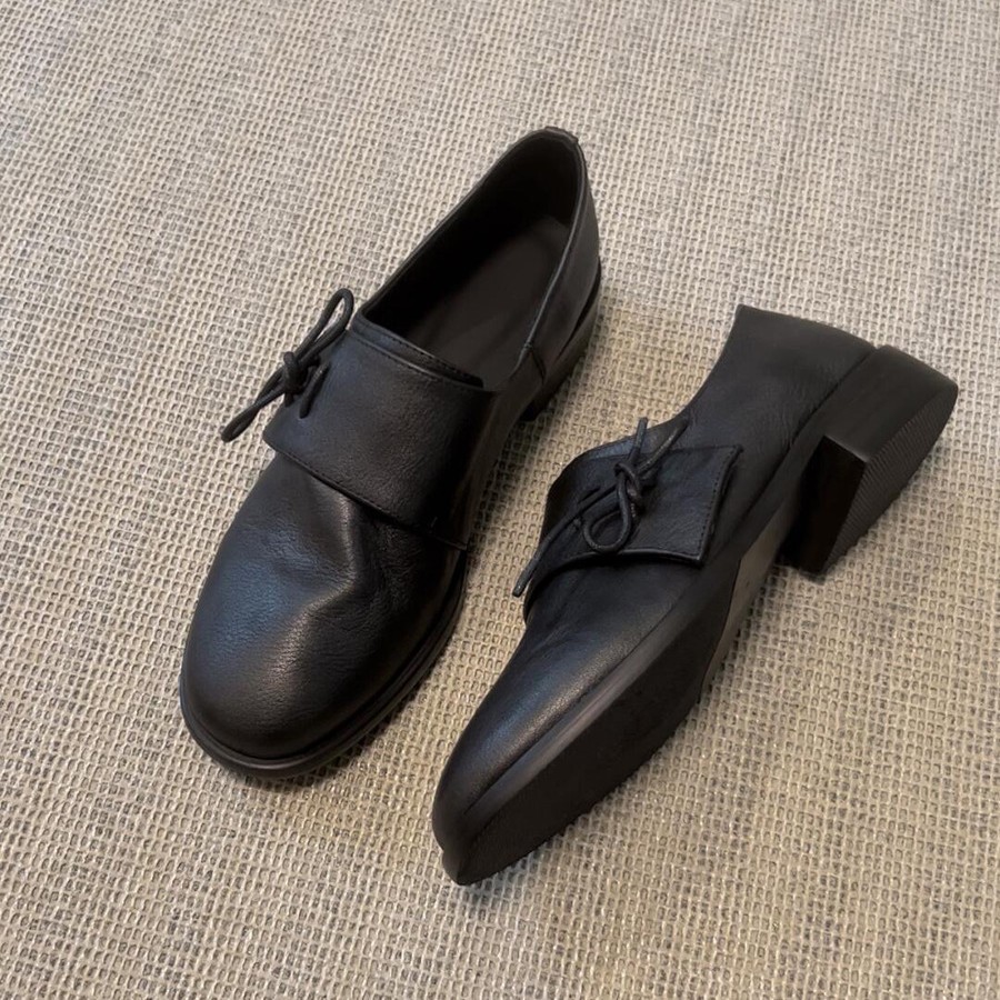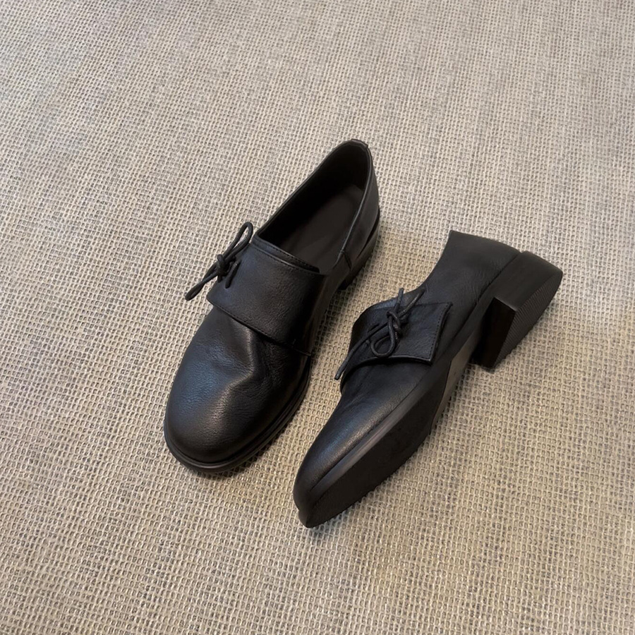 【シューズ】春秋夏 羊革 厚底 レトロ ラウンドトゥ オックスフォードシューズ