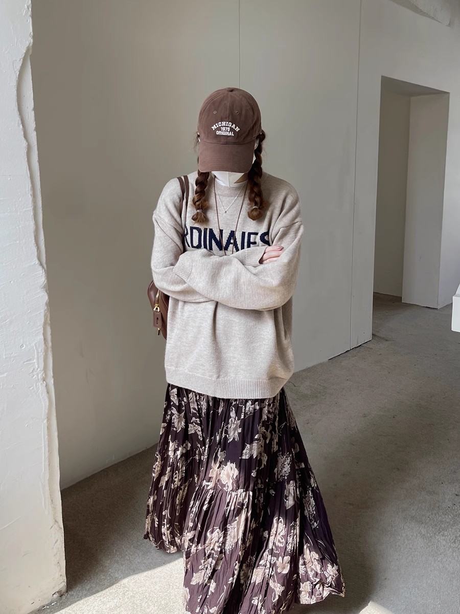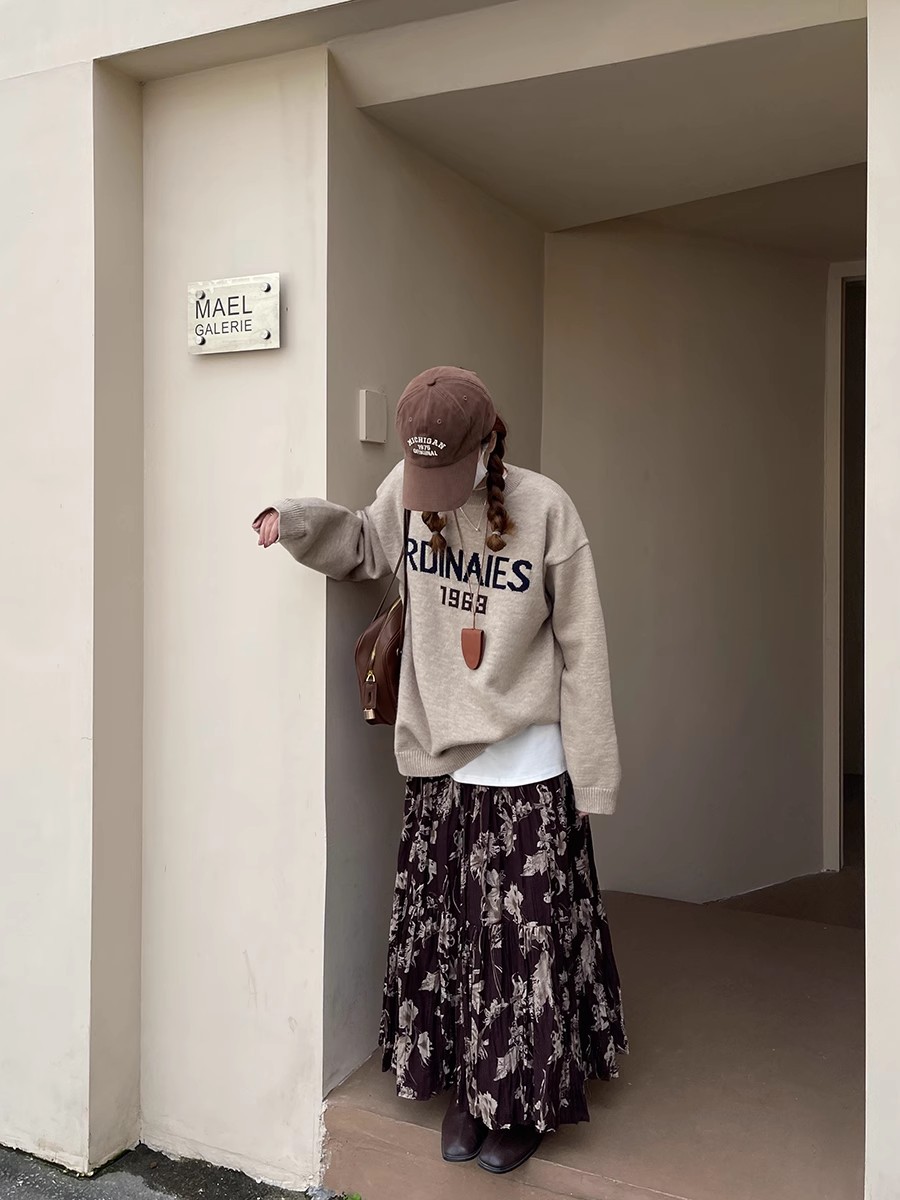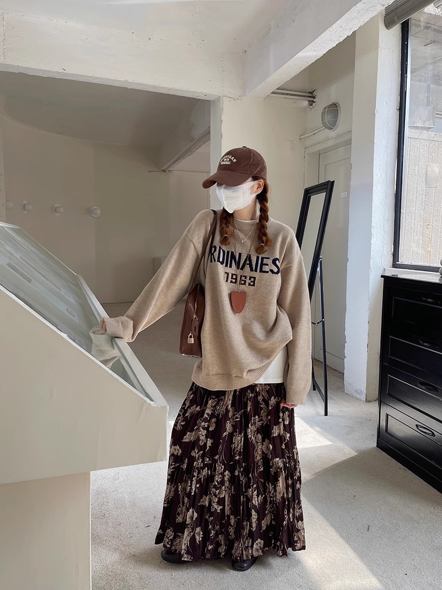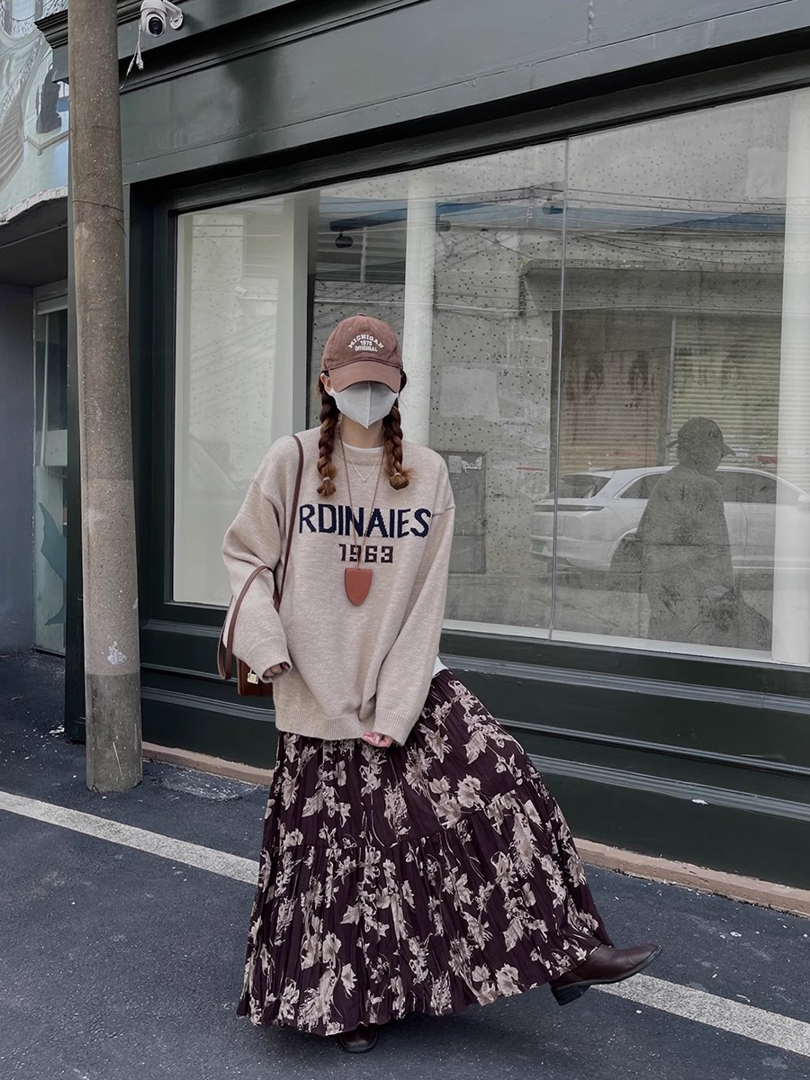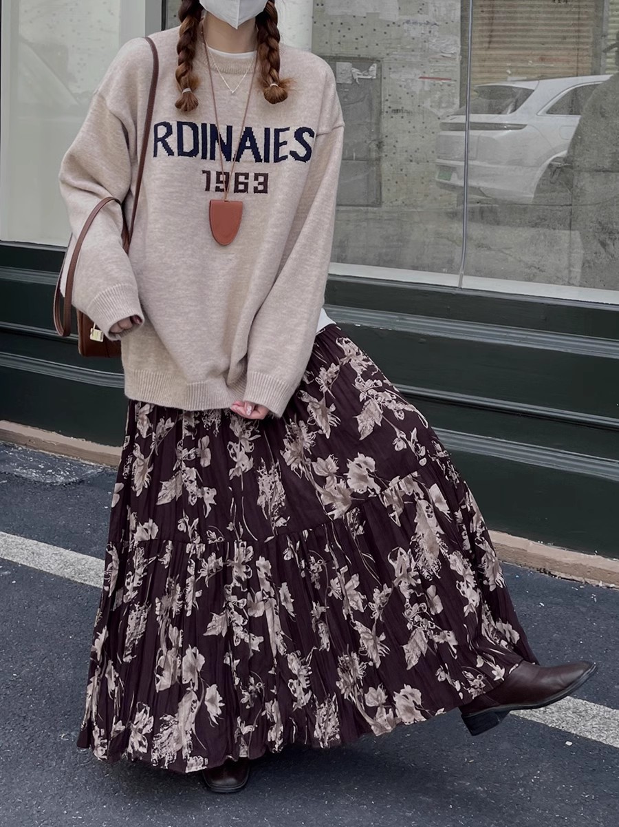 【ボトムス】裏起毛 春秋冬 レトロ フリルギャザー プリント スカート【SHシリーズ】