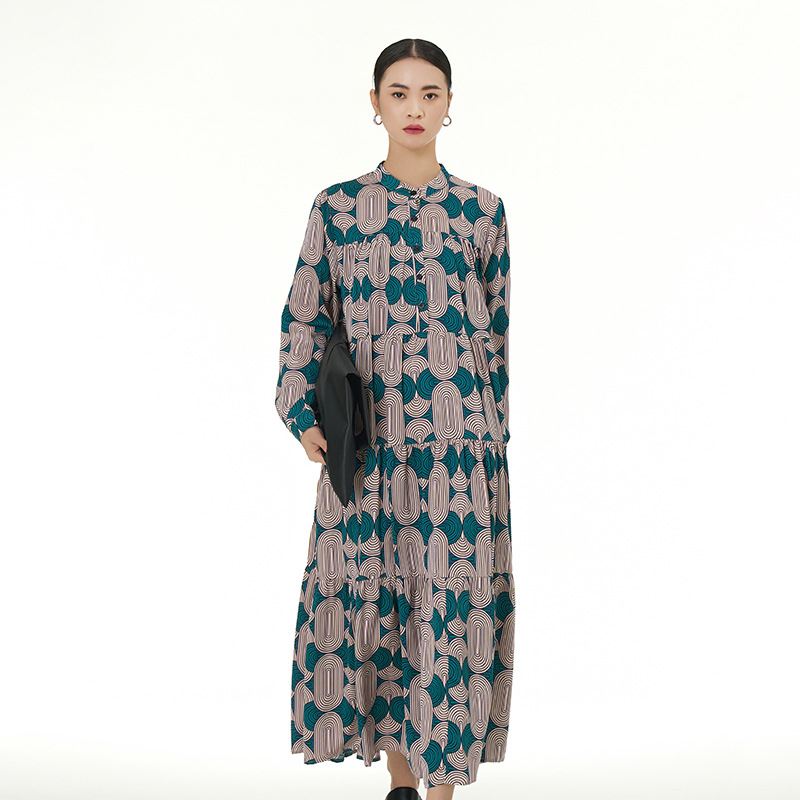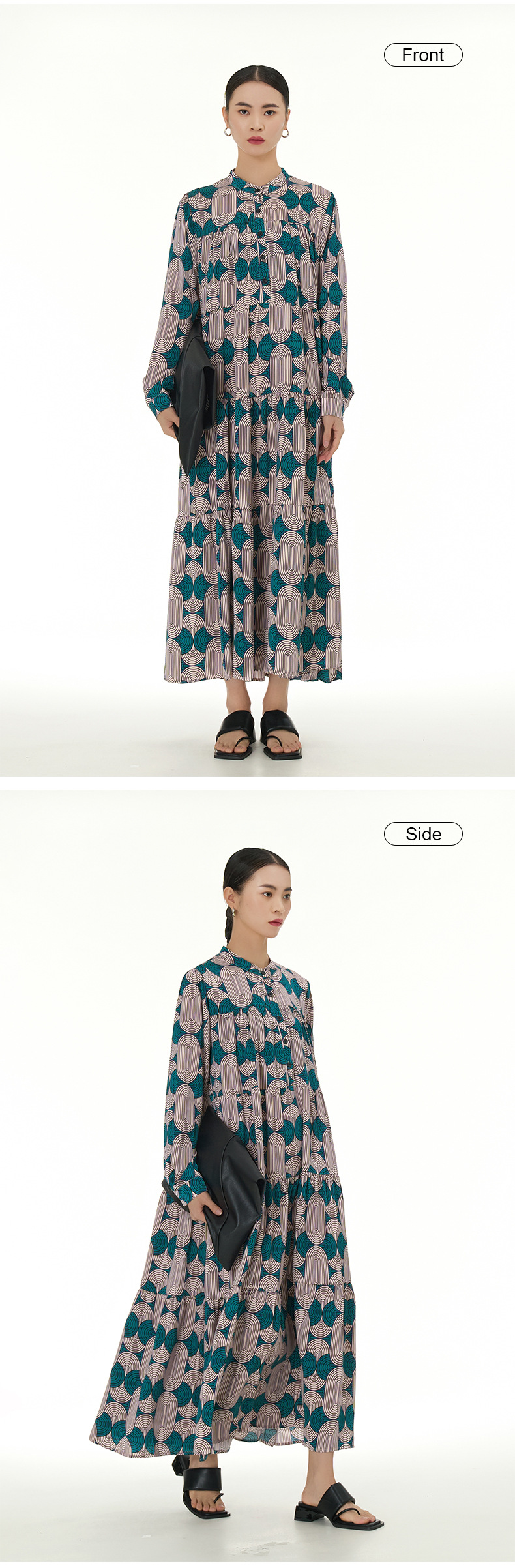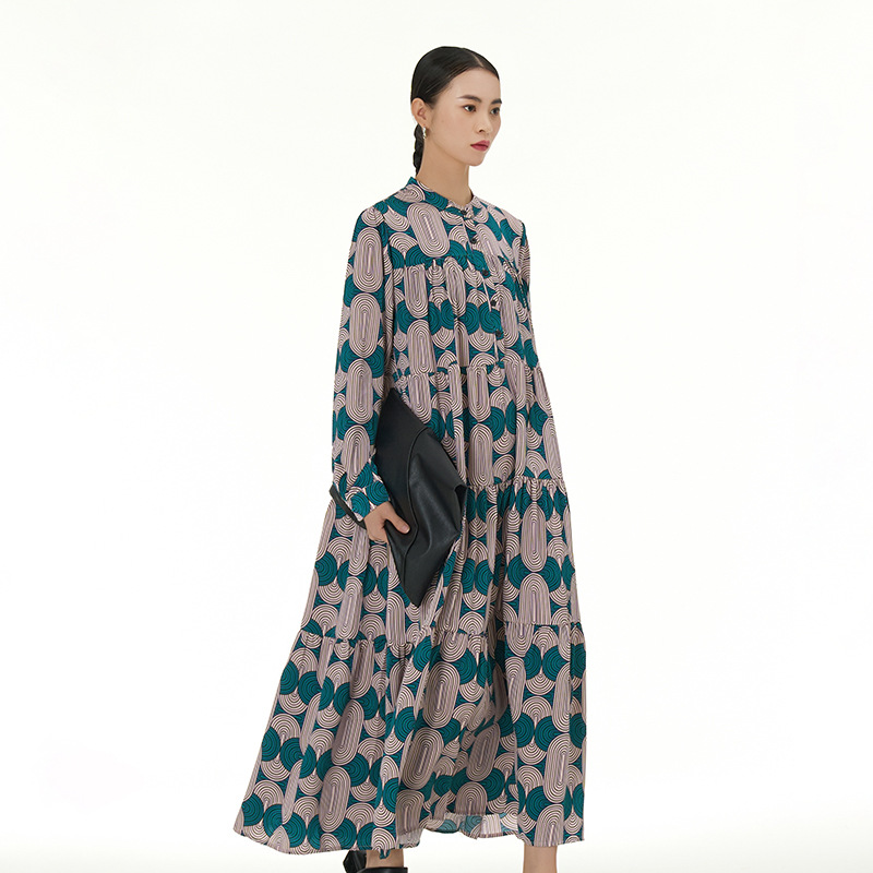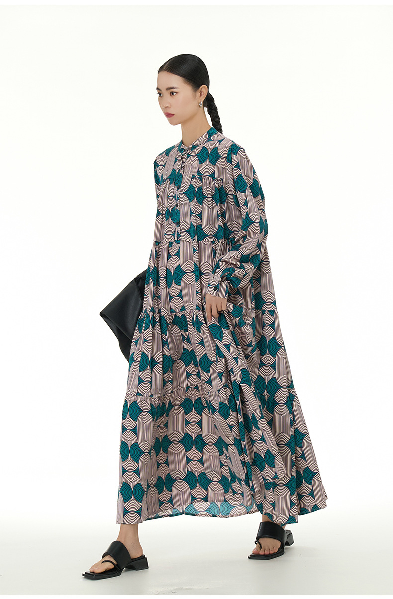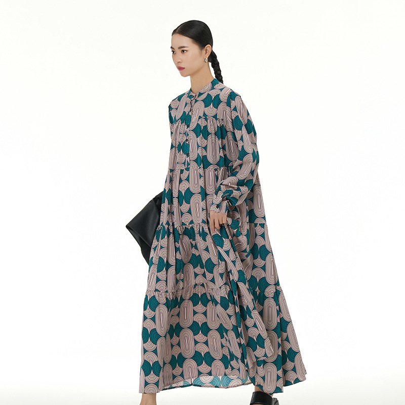 【商品名】【ワンピース】大きいサイズ ゆるリラックス レトロ 長袖 ワンピース