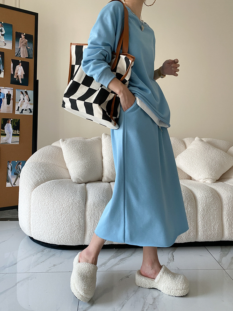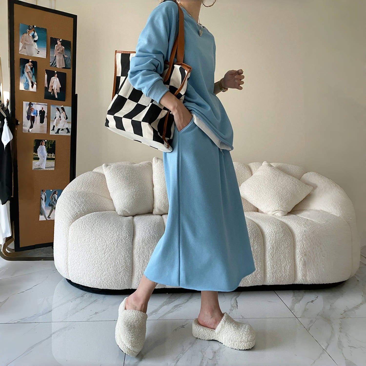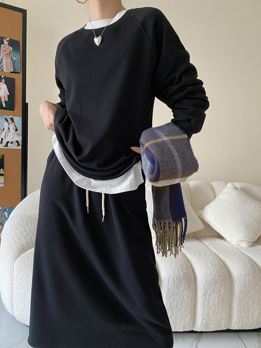 【単品注文】【セットアップ】春秋冬 不規則なデザイン ファッション 無地 セーター + 長袖ワンピースセット