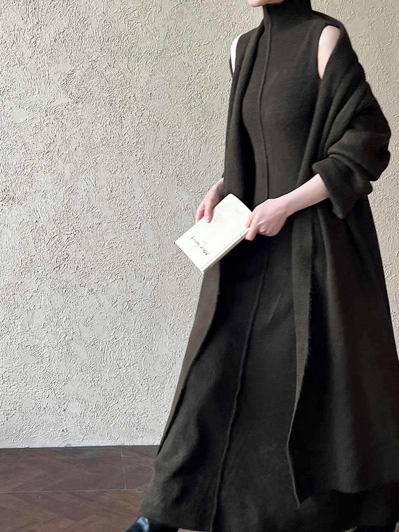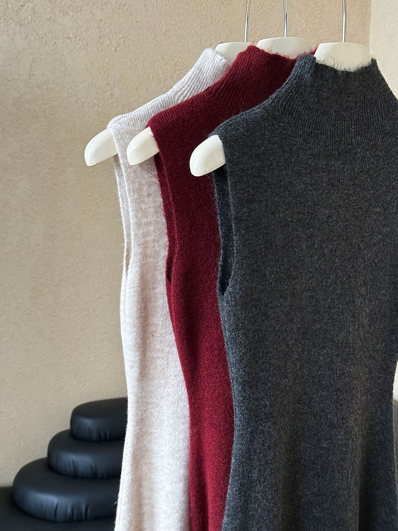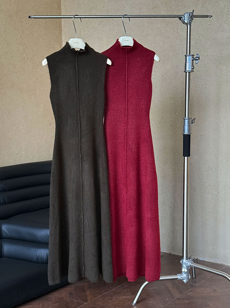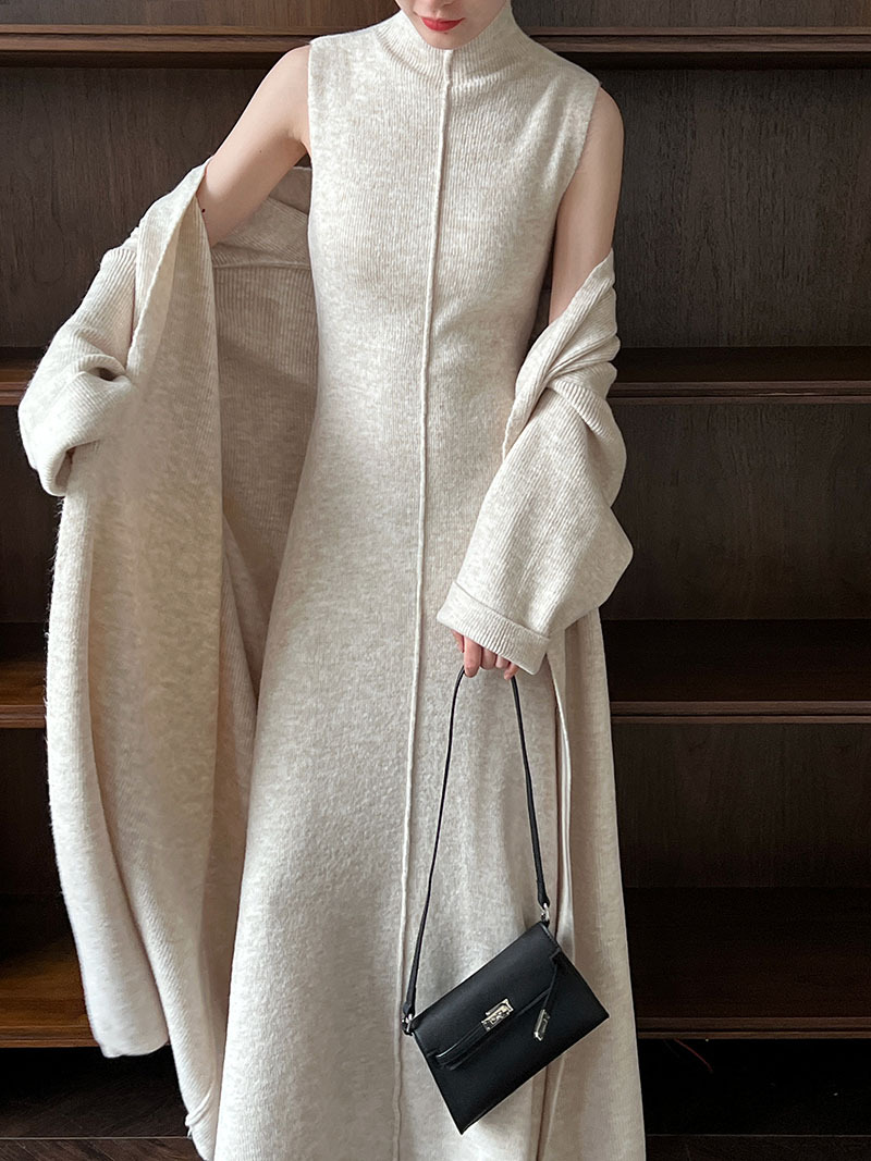 【セットアップ】春秋冬 今季マストバイ ノースリーブ ハイネックワンピースセット【SNシリーズ】