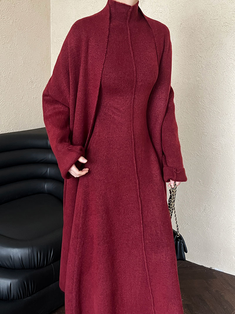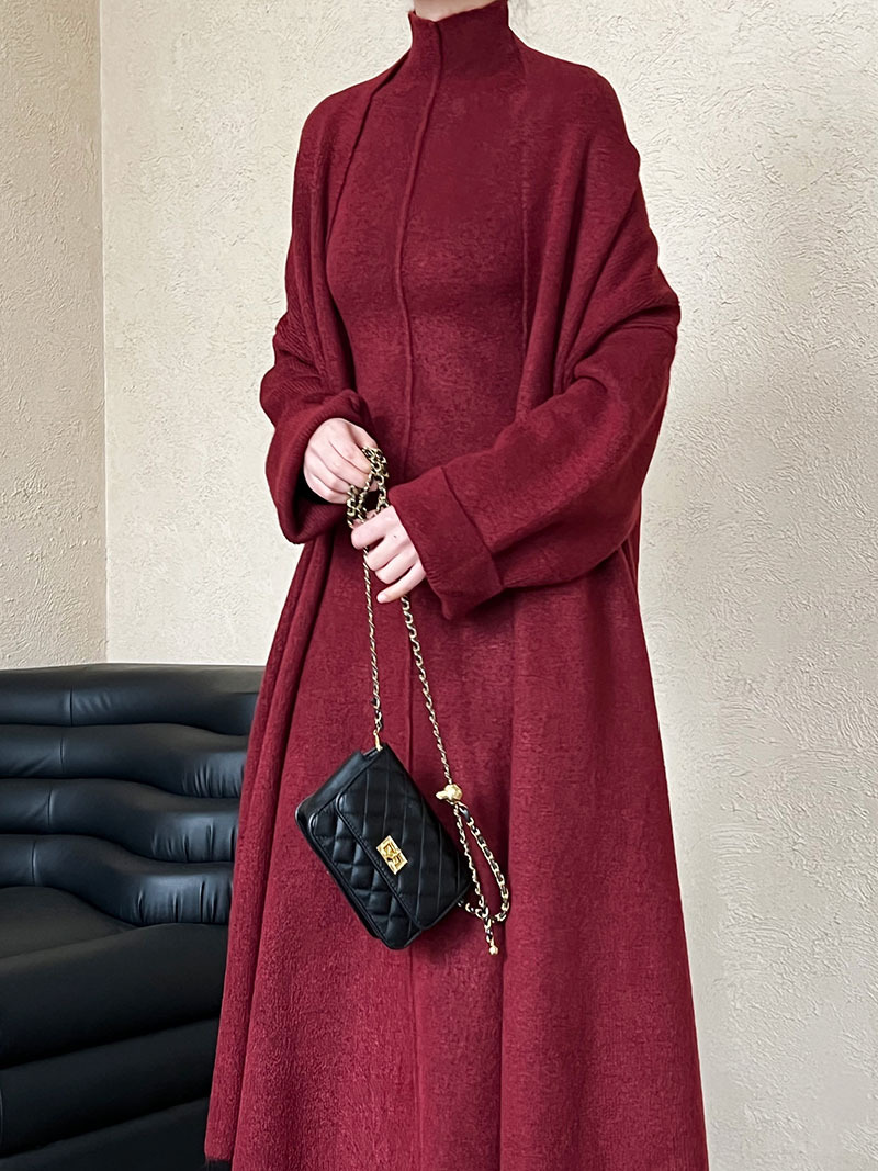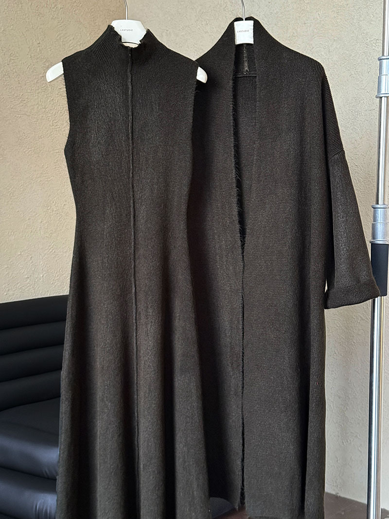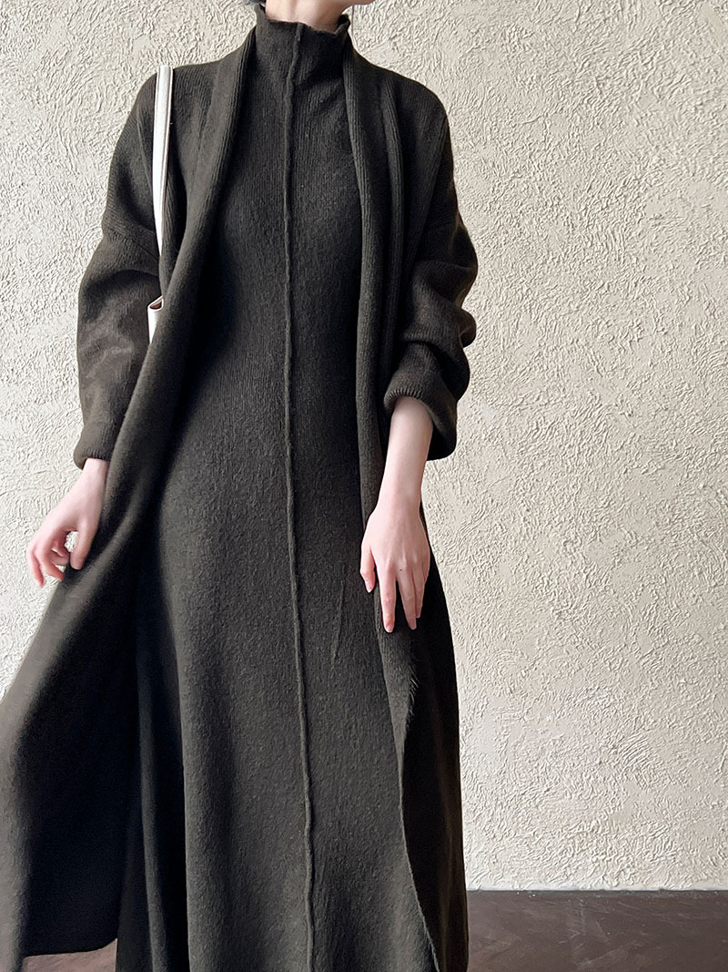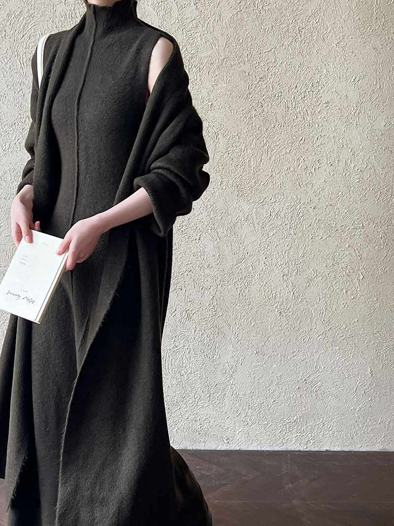 【セットアップ】春秋冬 今季マストバイ ノースリーブ ハイネックワンピースセット【SNシリーズ】