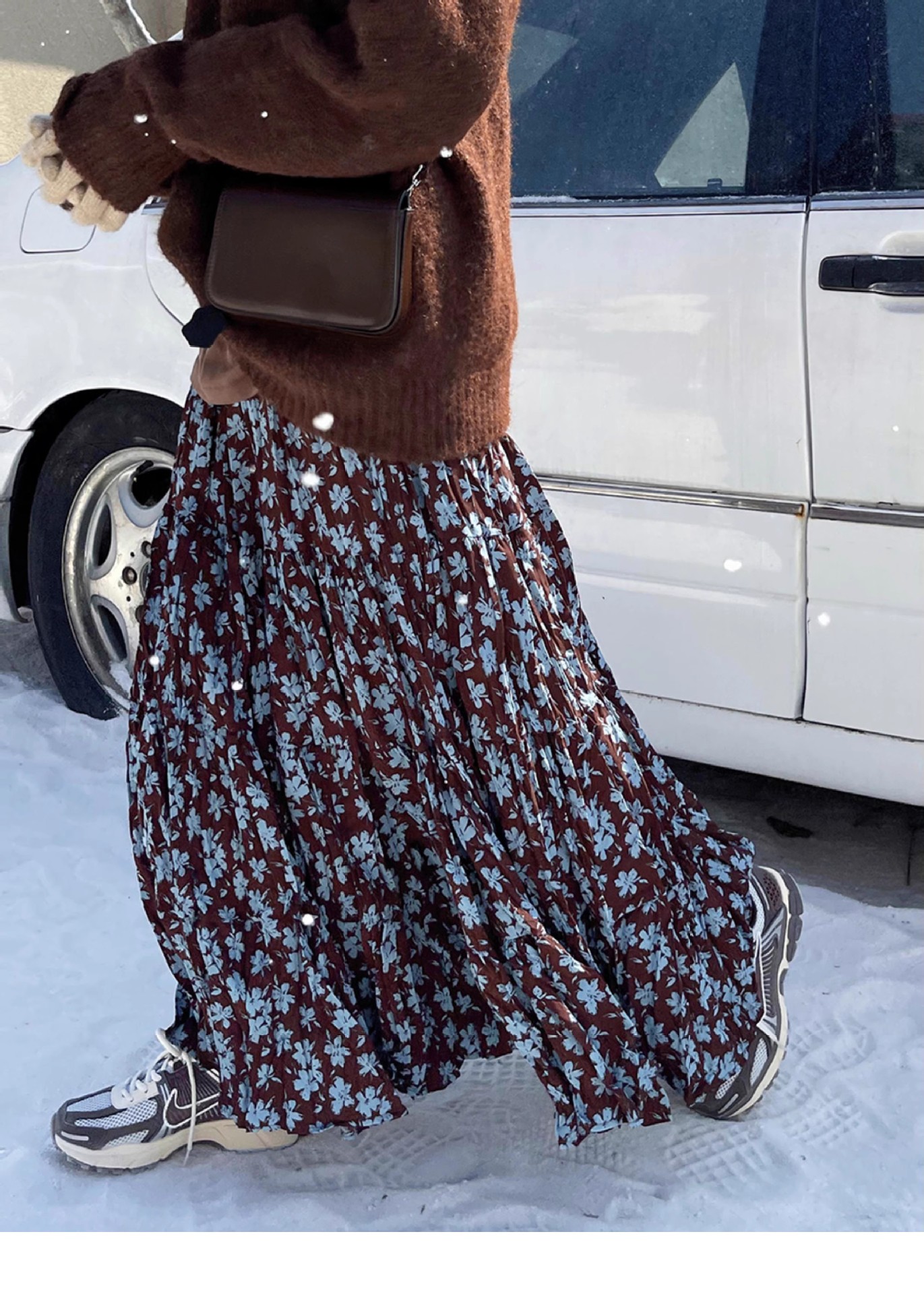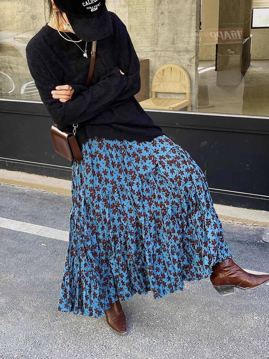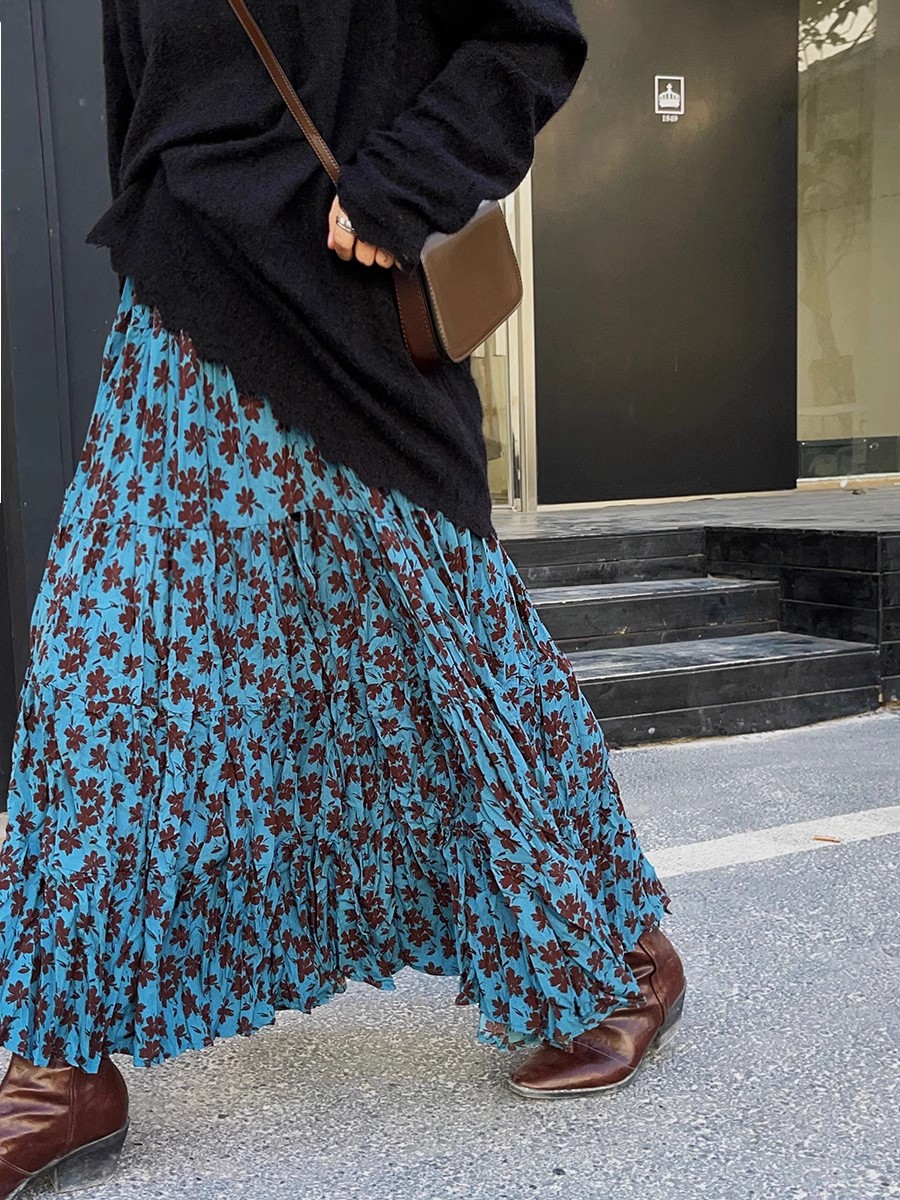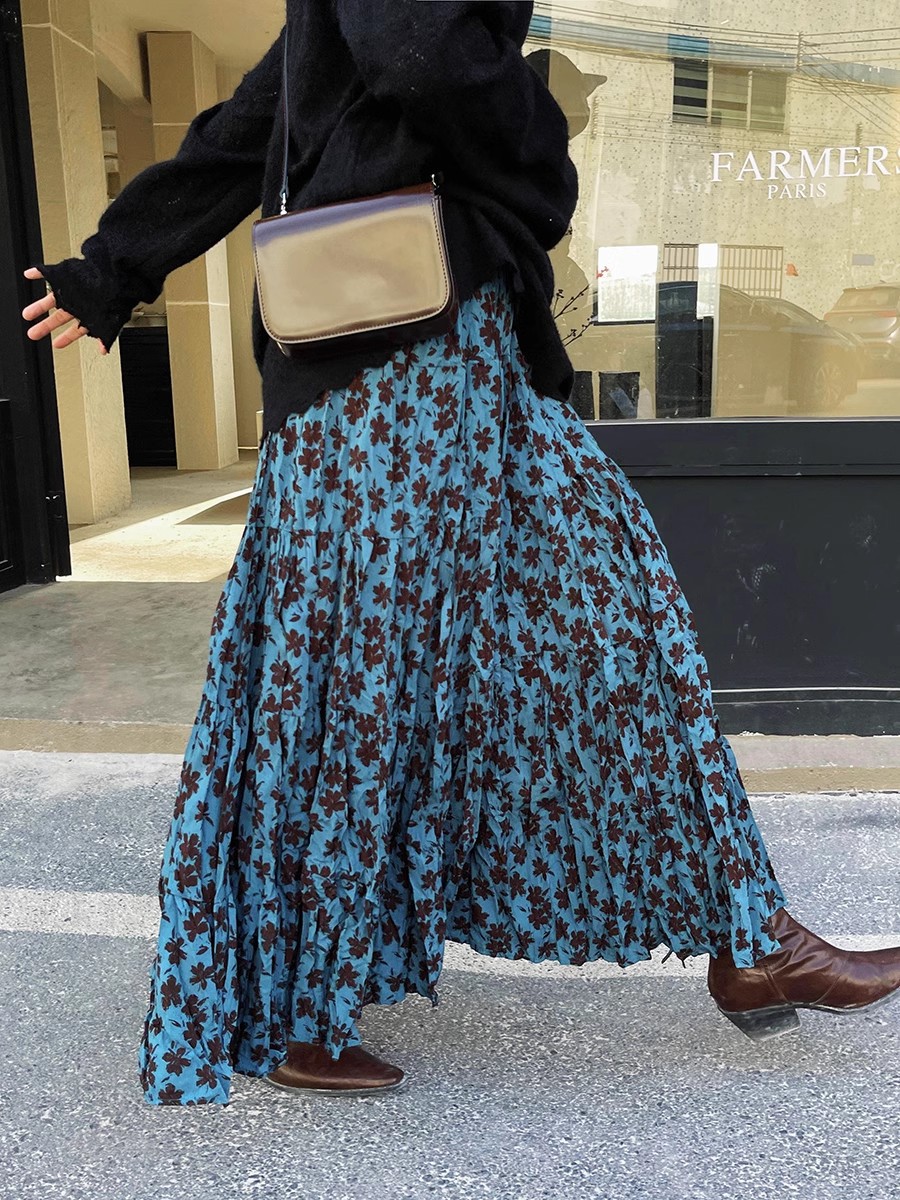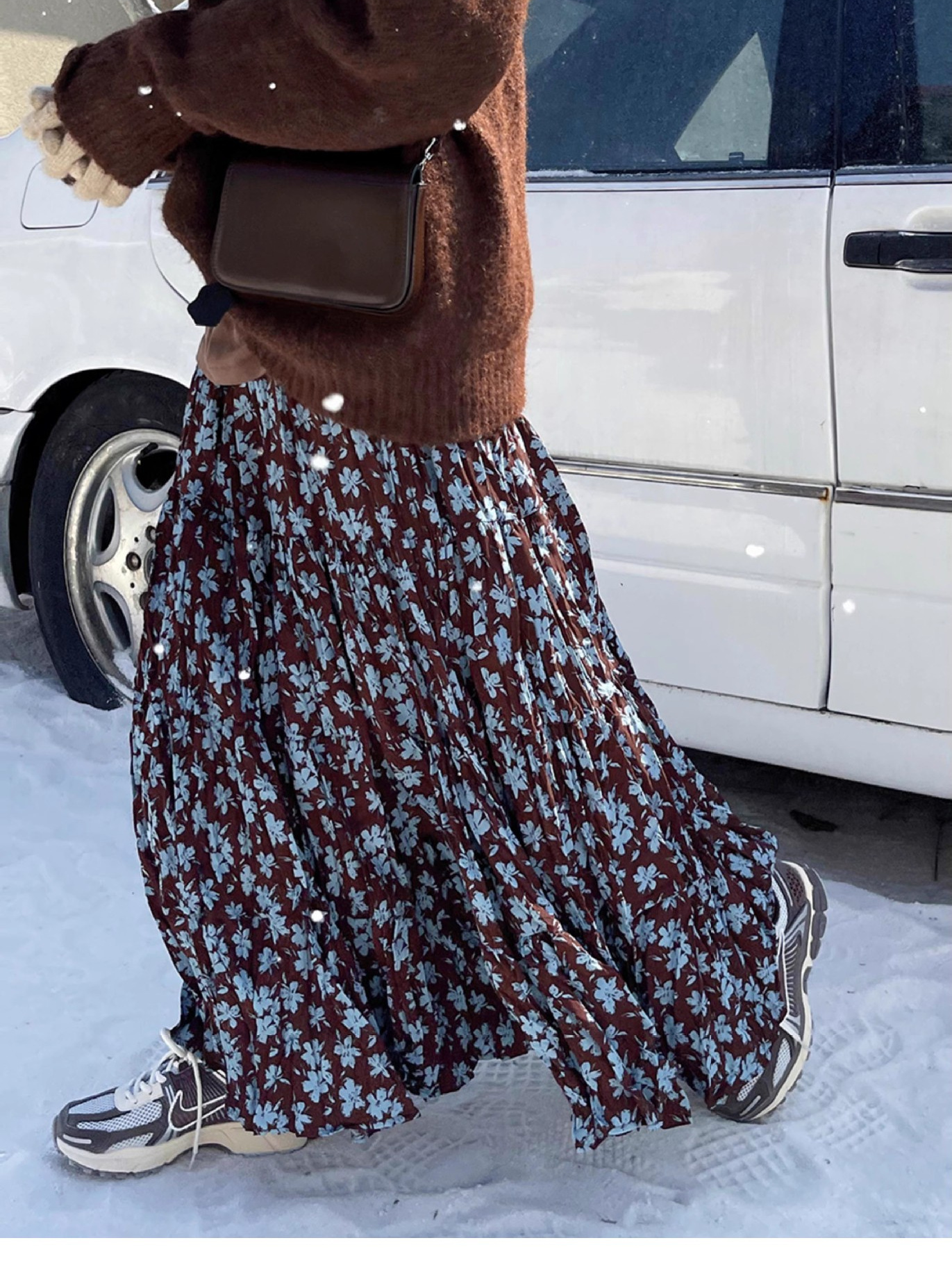 【ボトムス】花柄 春夏秋冬 大振裾 フリルギャザー スカート【SHシリーズ】