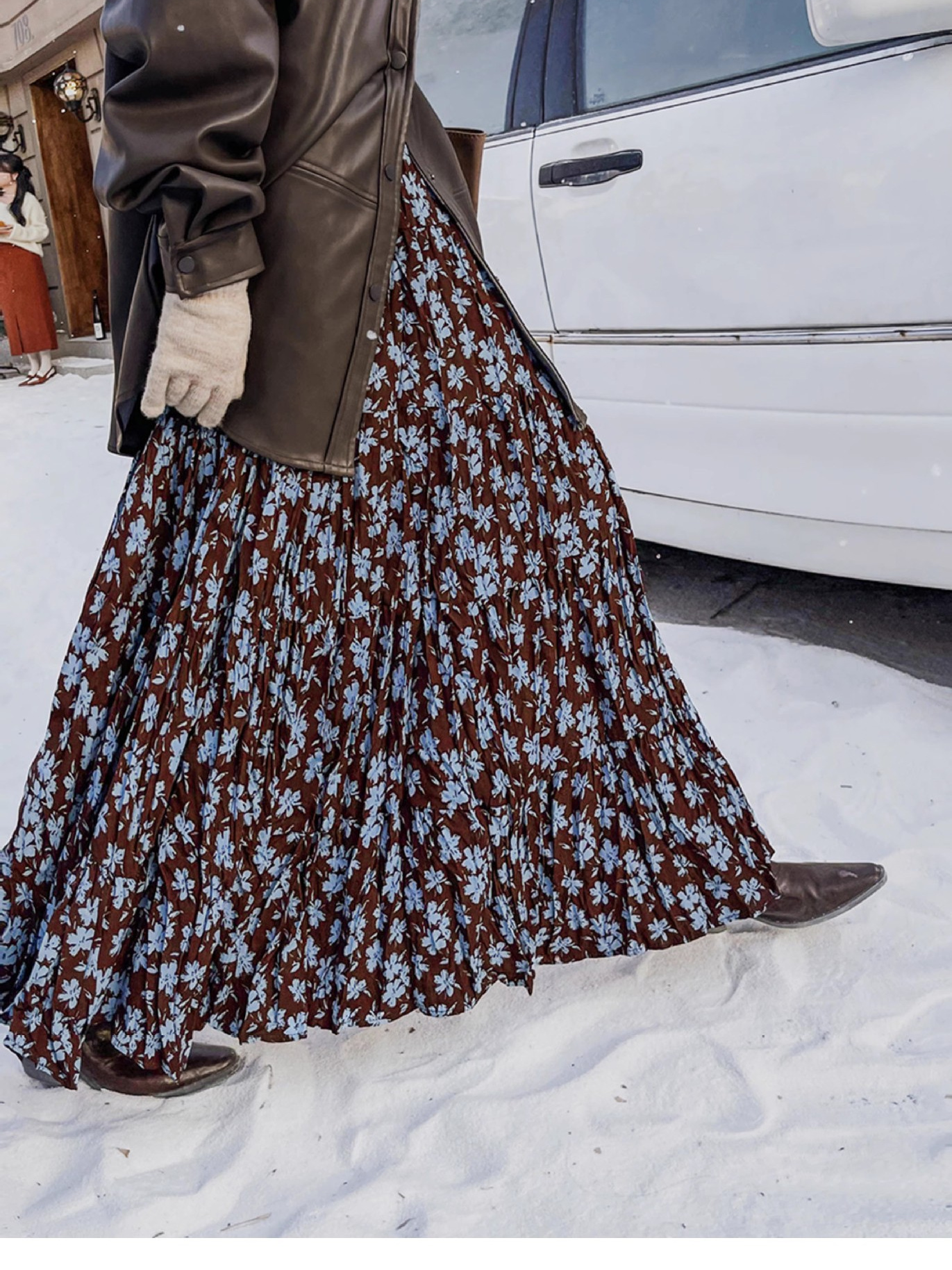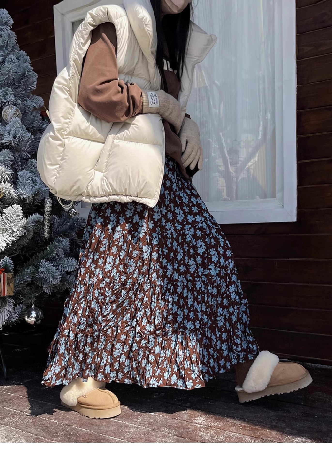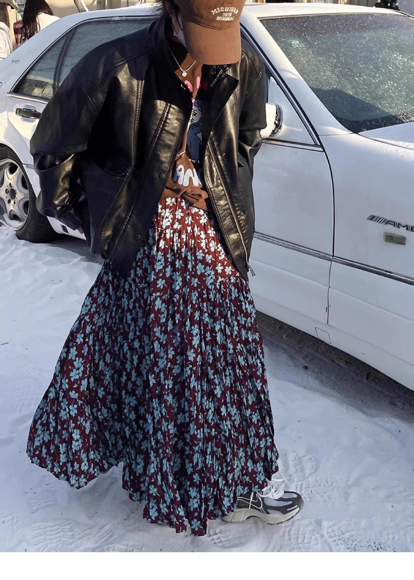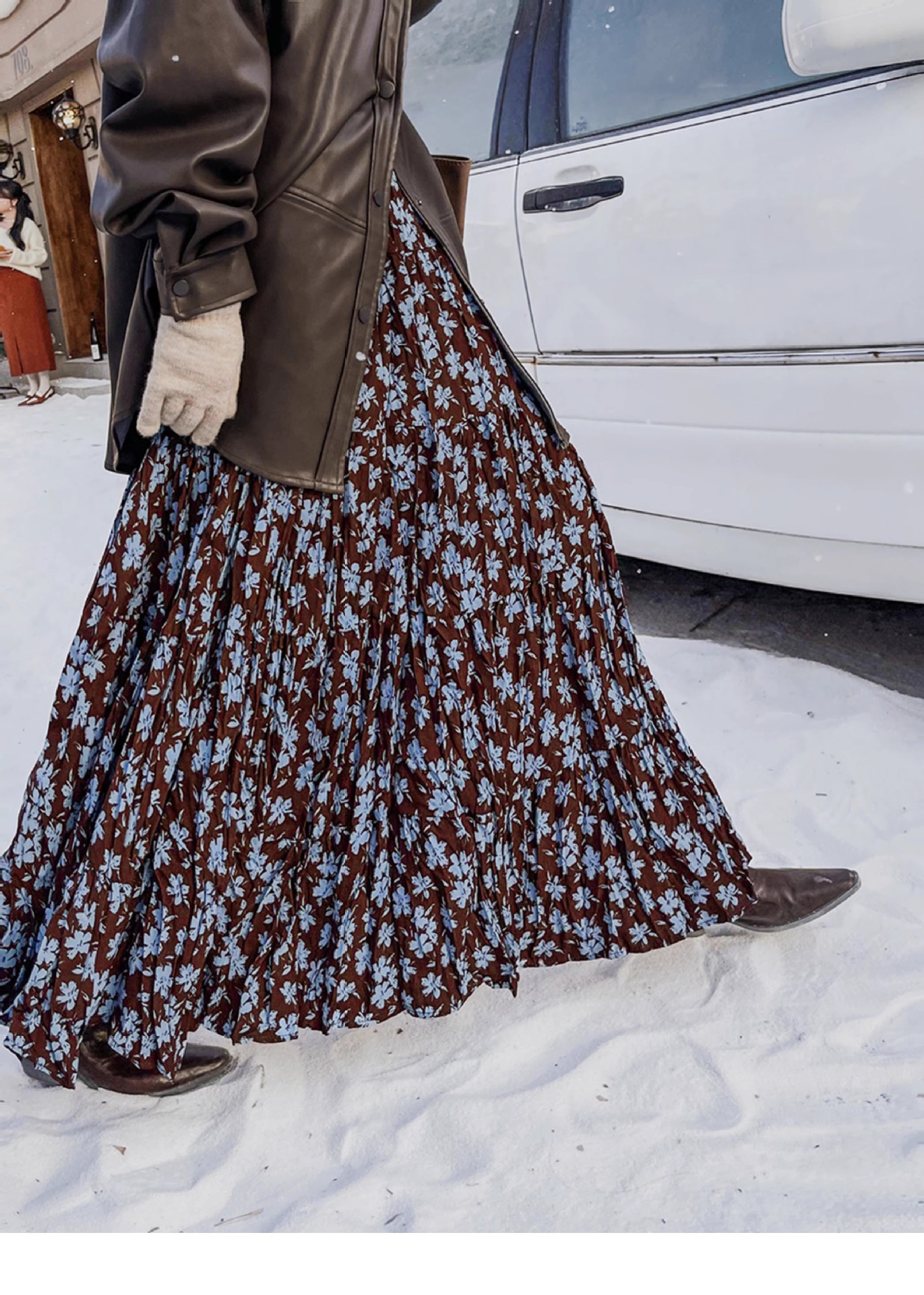 【ボトムス】花柄 春夏秋冬 大振裾 フリルギャザー スカート【SHシリーズ】