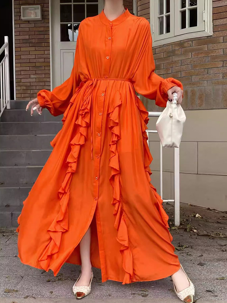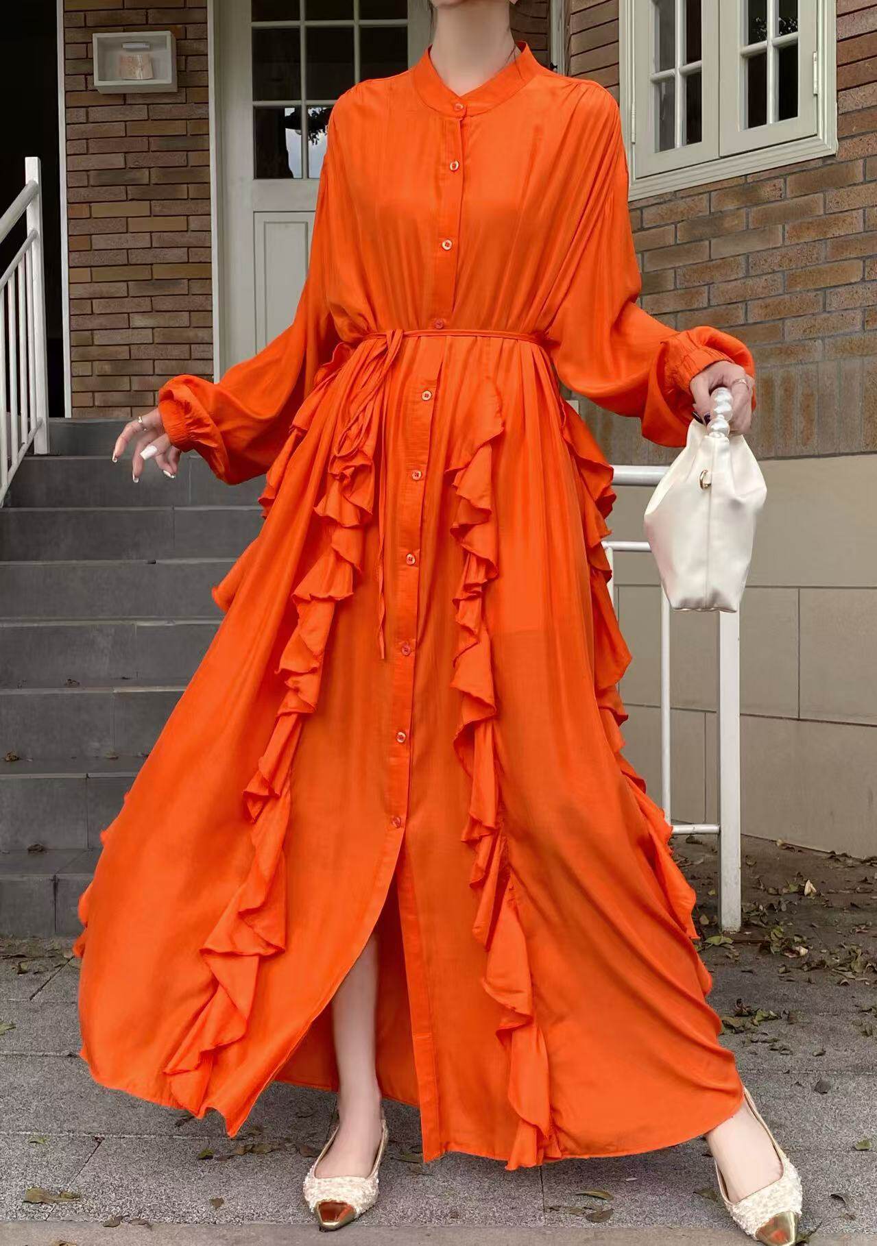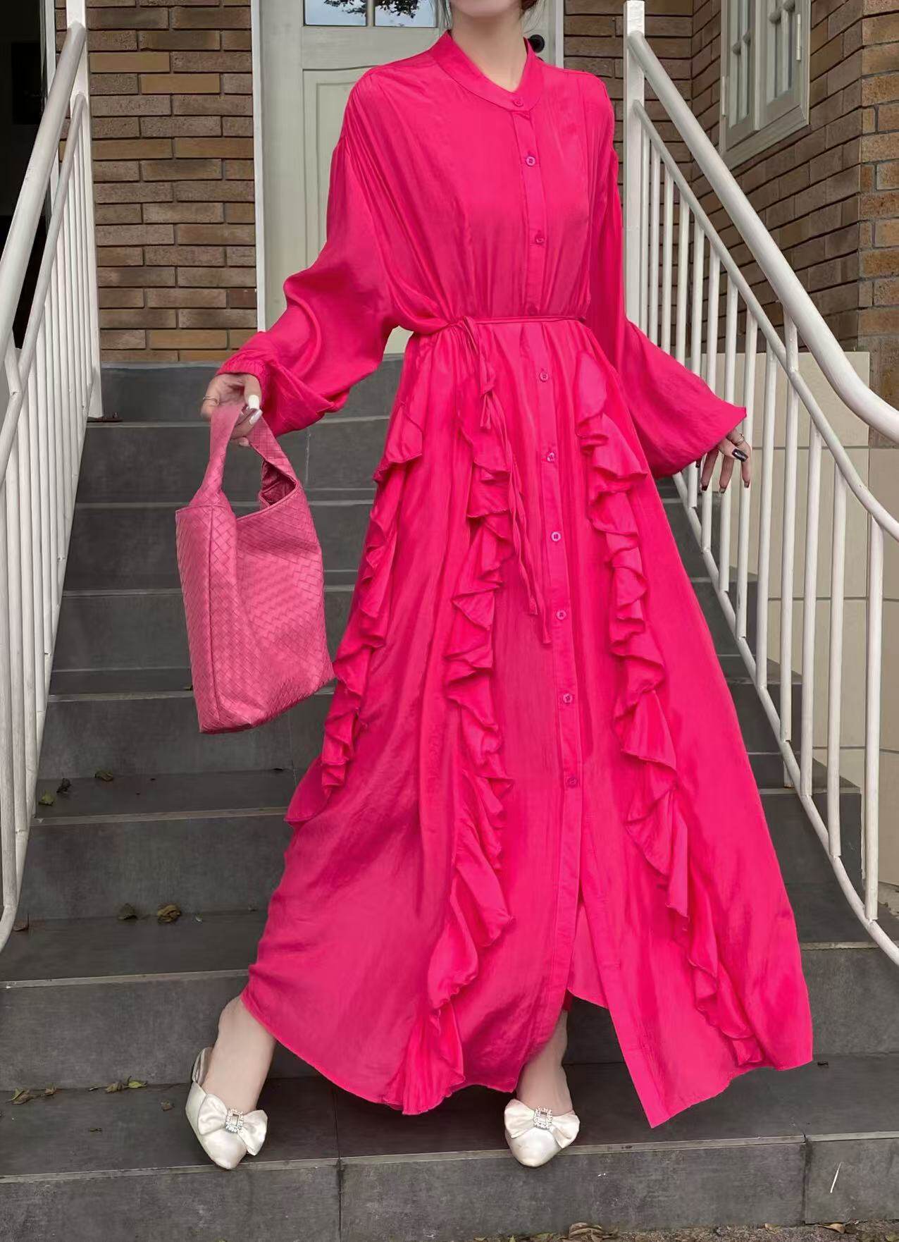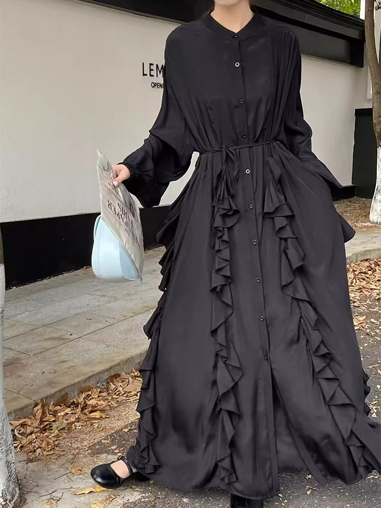 【60%OFF⭐️先行スタート!】【ワンピース】春秋 エレガント ボタン付き ベルト イレギュラー 長袖 ワンピース