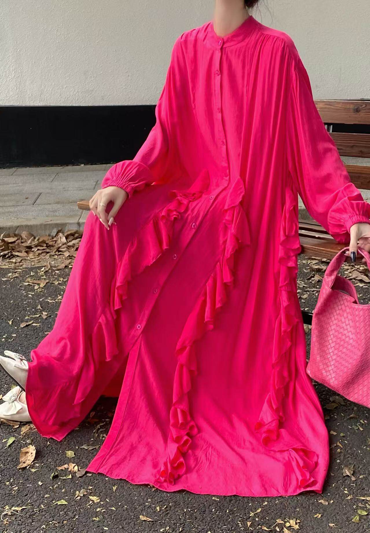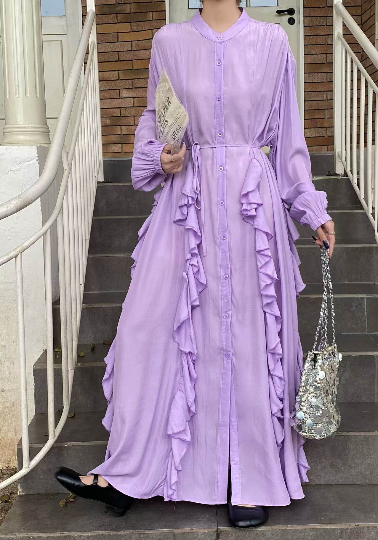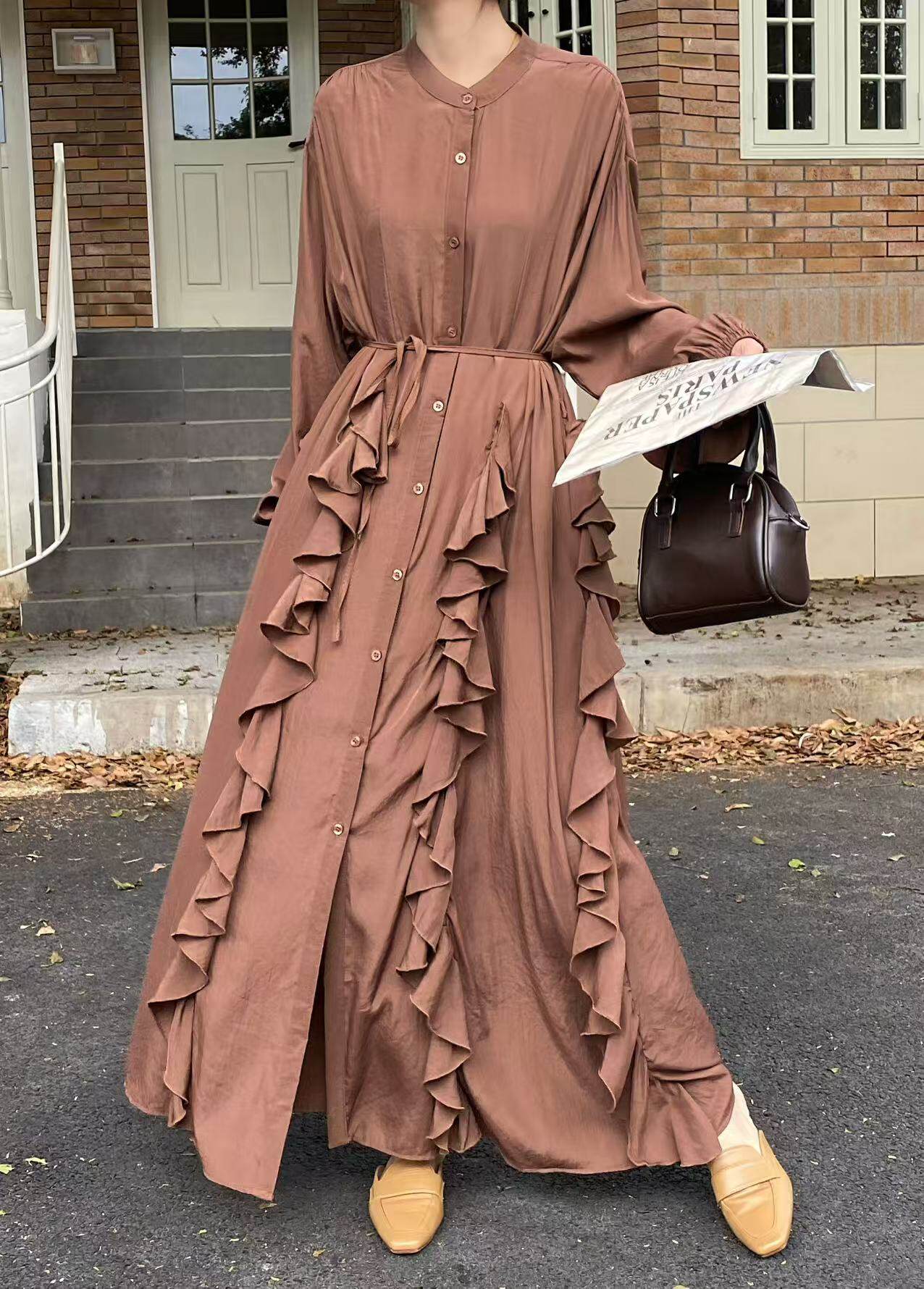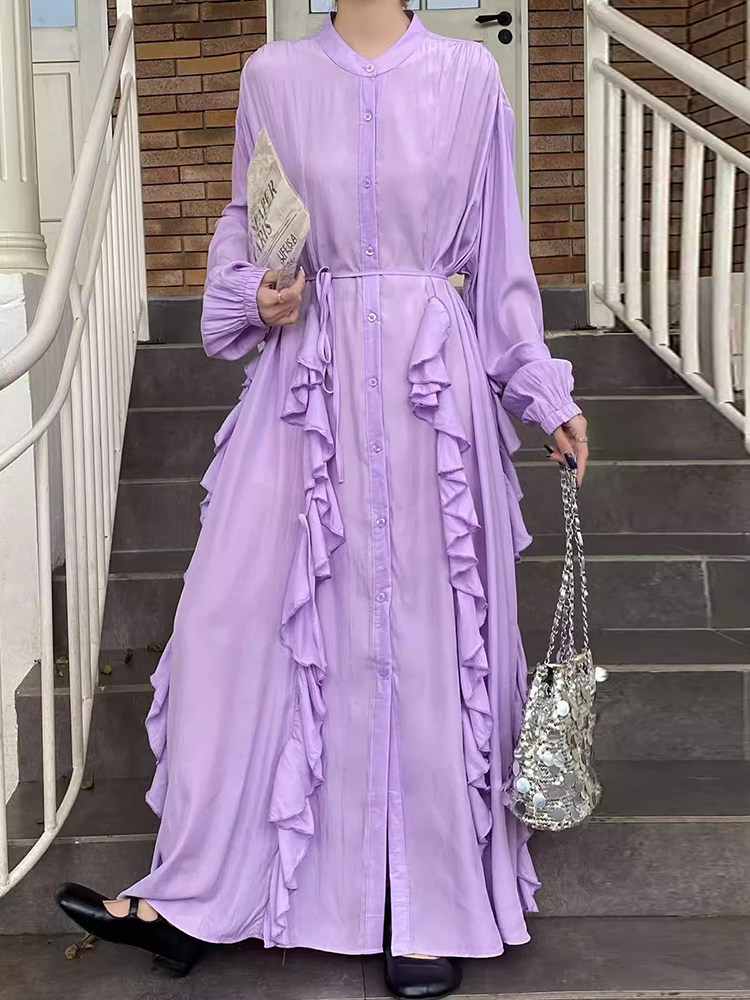 【60%OFF⭐️先行スタート!】【ワンピース】春秋 エレガント ボタン付き ベルト イレギュラー 長袖 ワンピース
