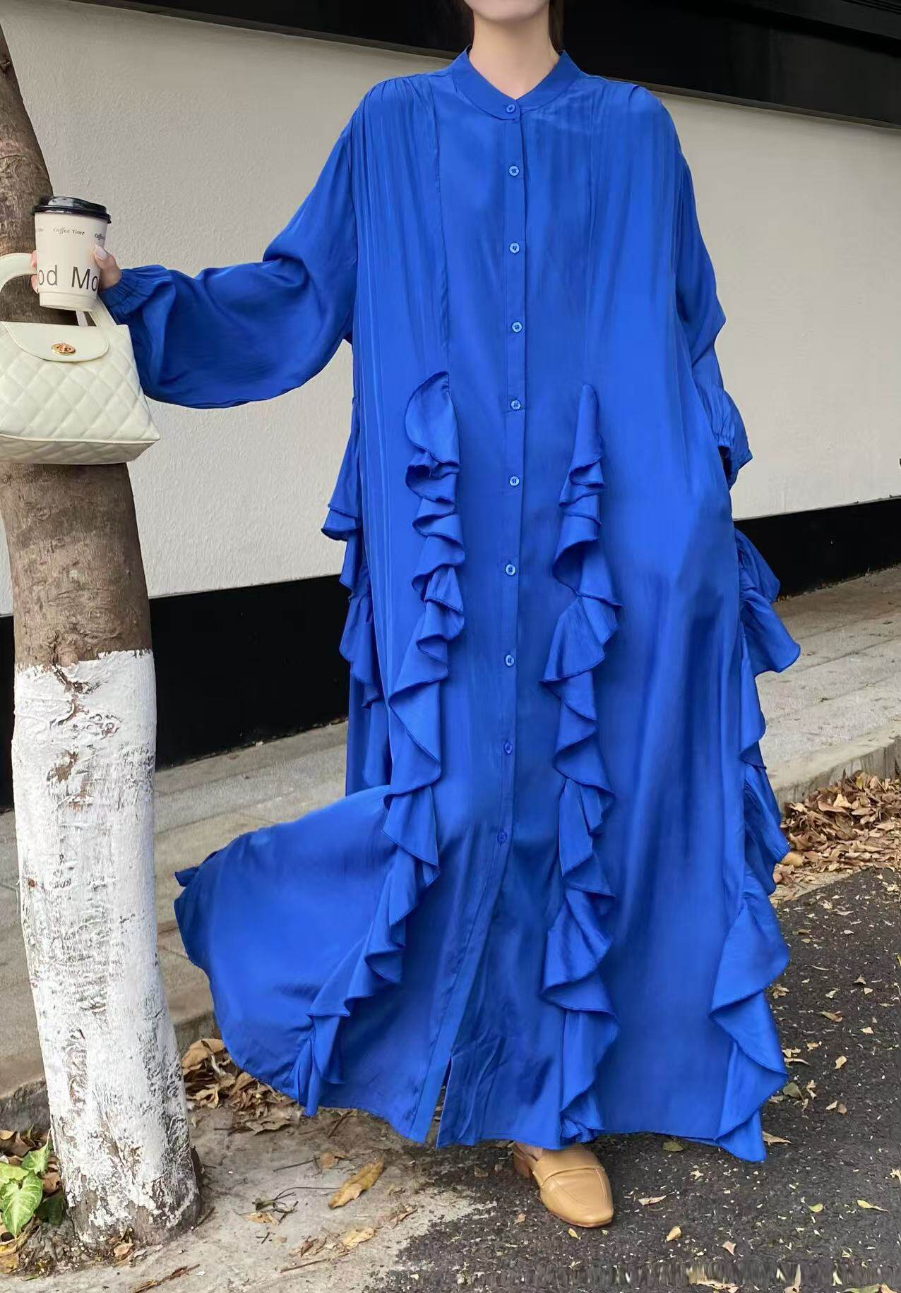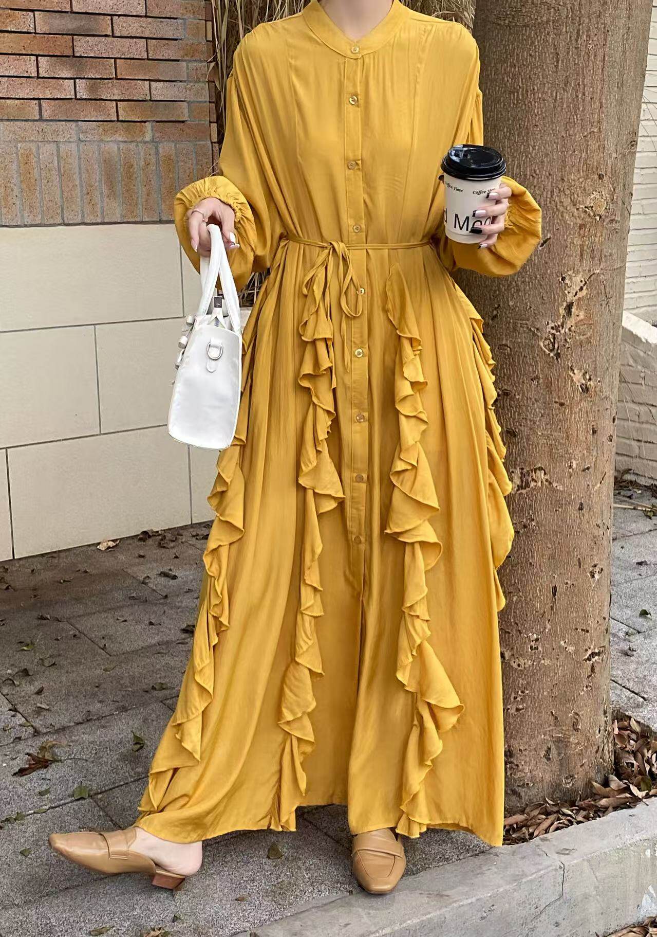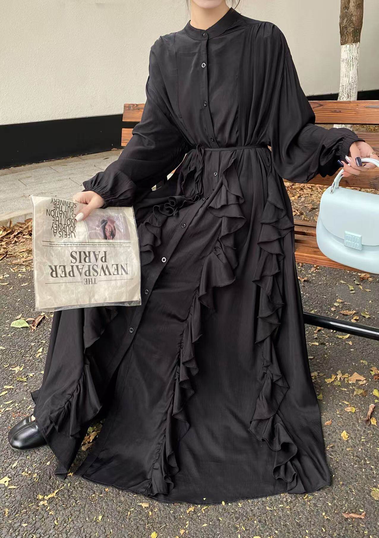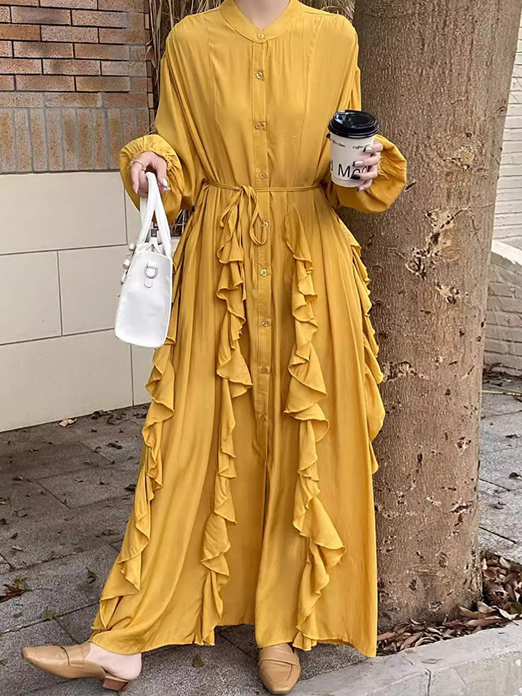 【60%OFF⭐️先行スタート!】【ワンピース】春秋 エレガント ボタン付き ベルト イレギュラー 長袖 ワンピース