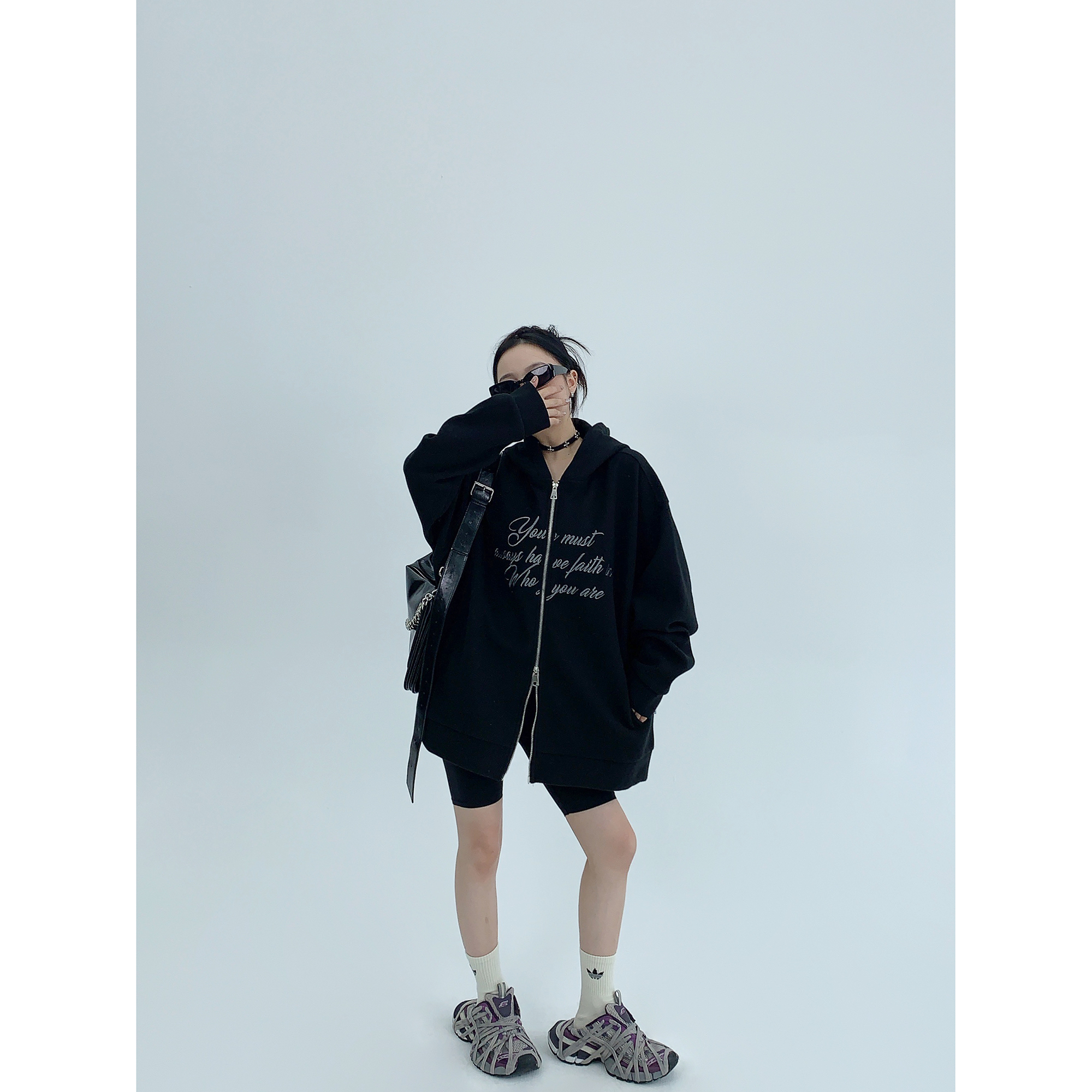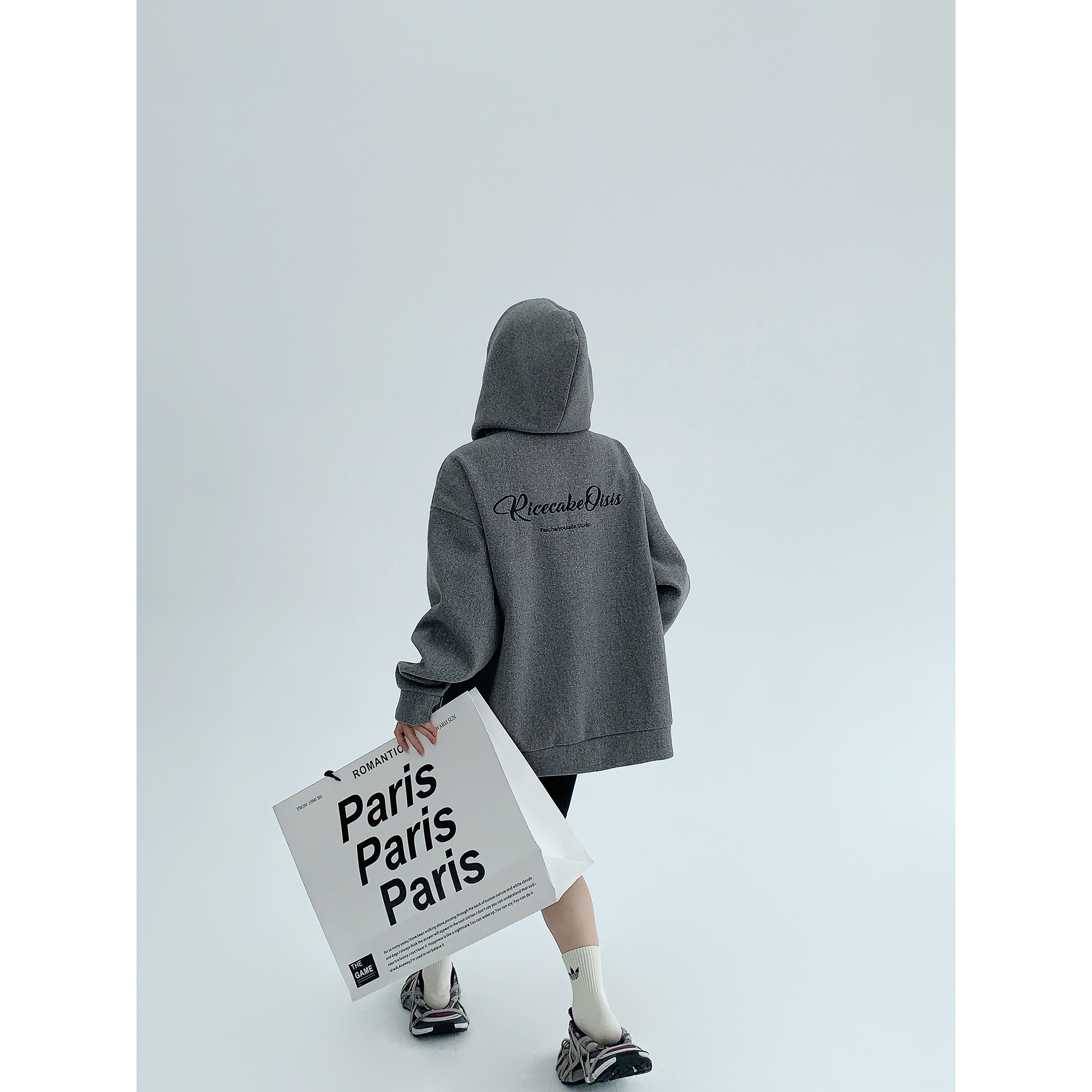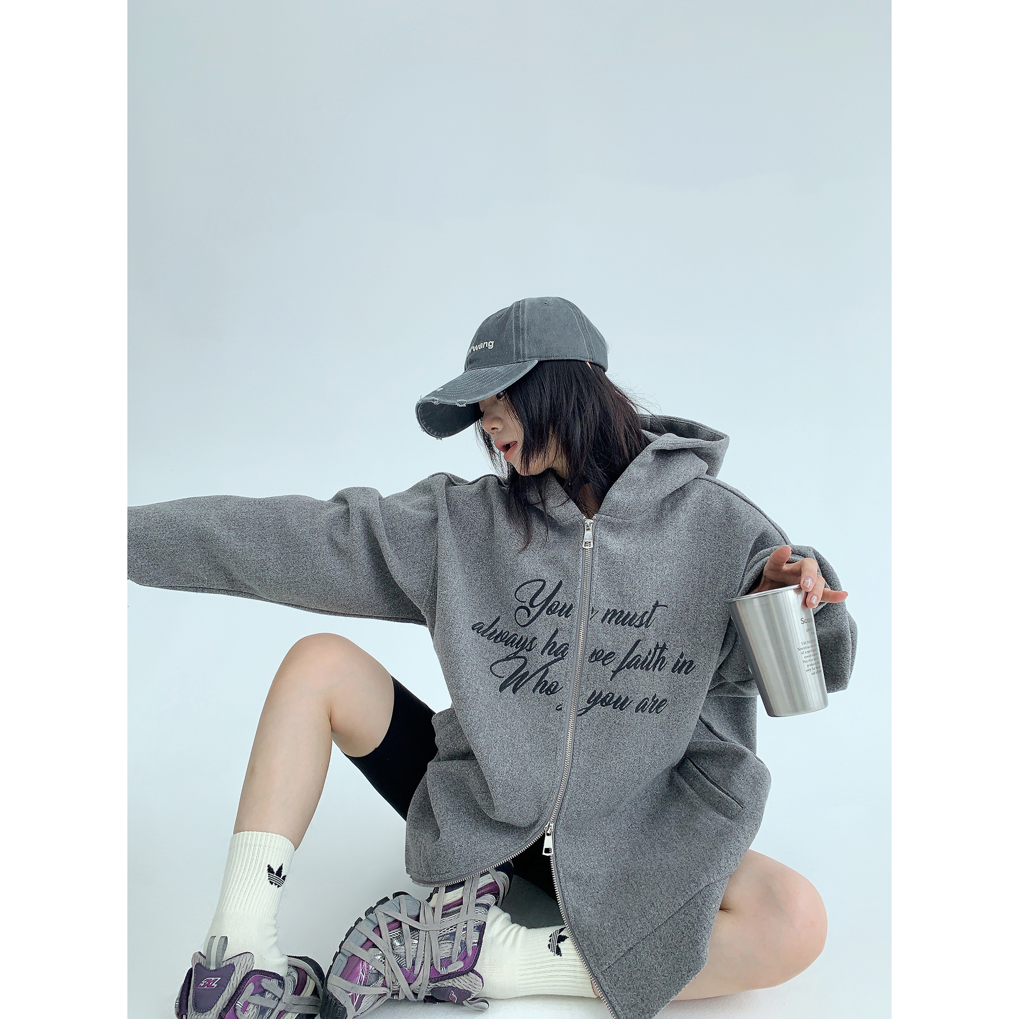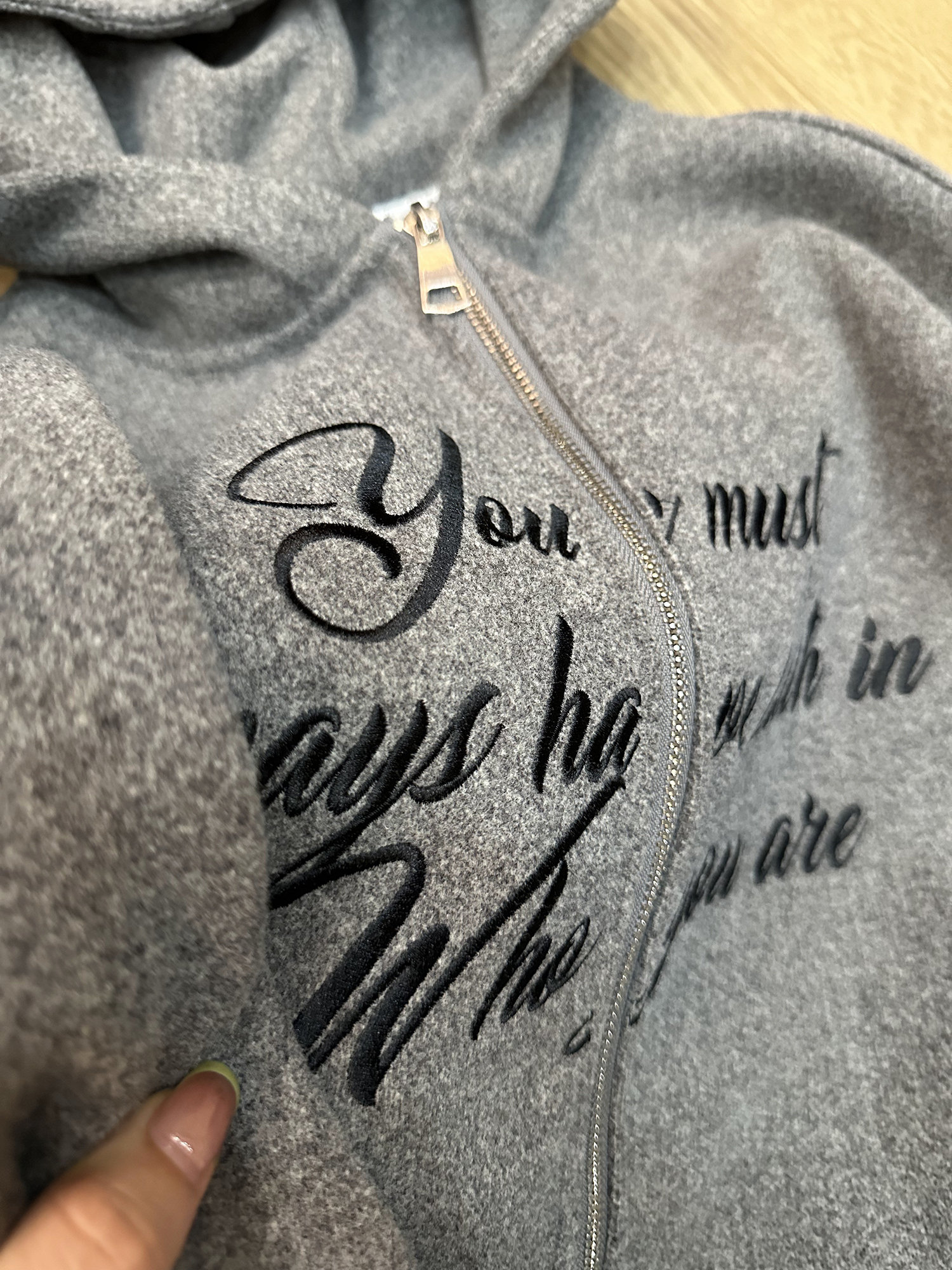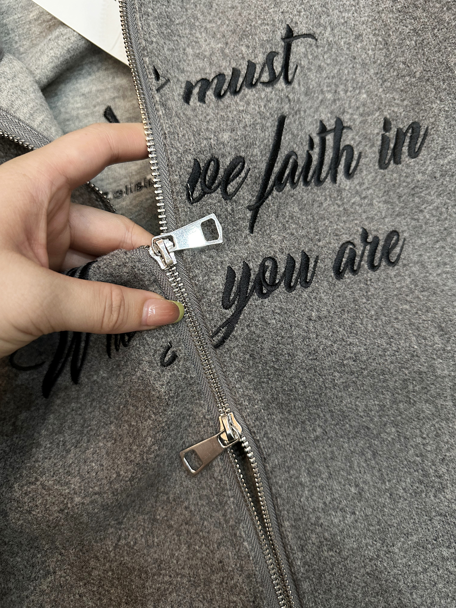 【商品名】【アウター】刺繍 ファスナー付き ゆるリラックス フード付き ジャケット