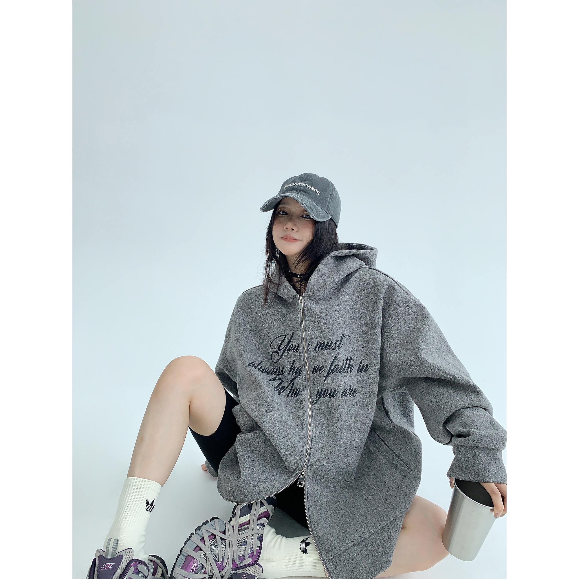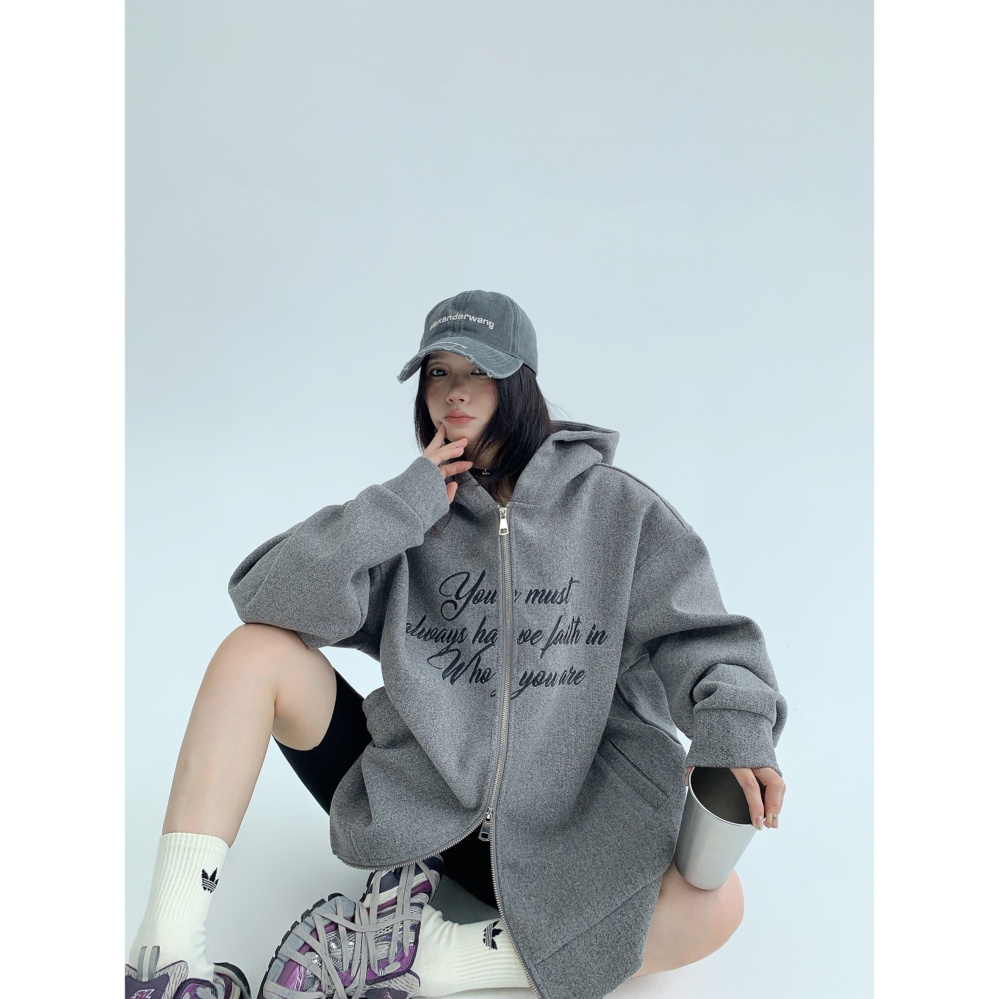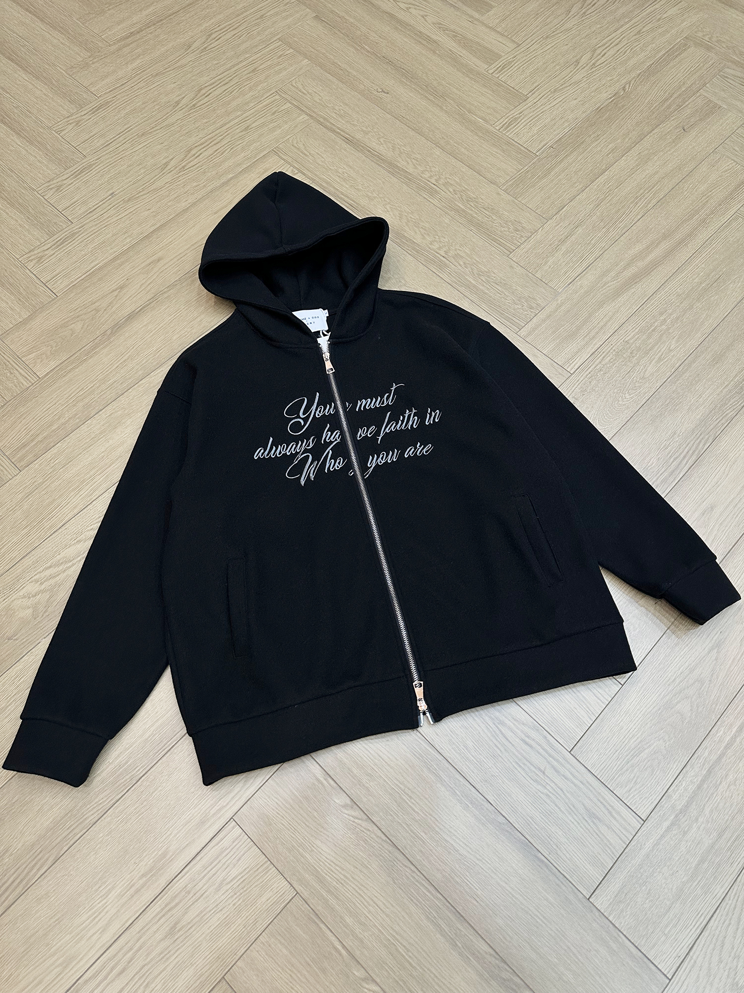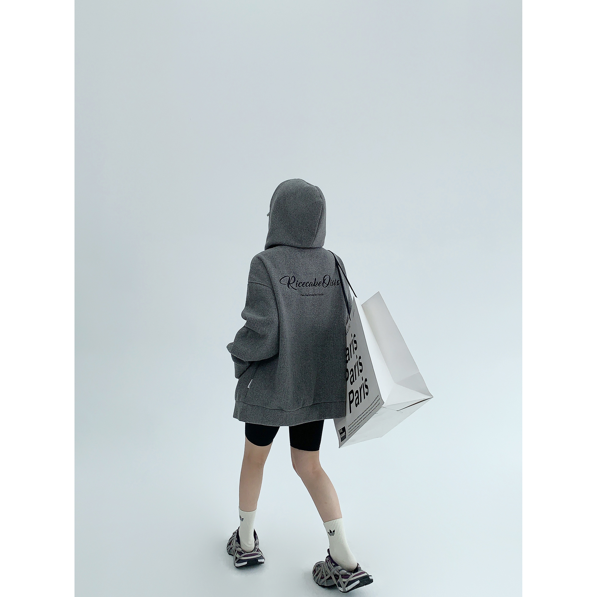 【商品名】【アウター】刺繍 ファスナー付き ゆるリラックス フード付き ジャケット