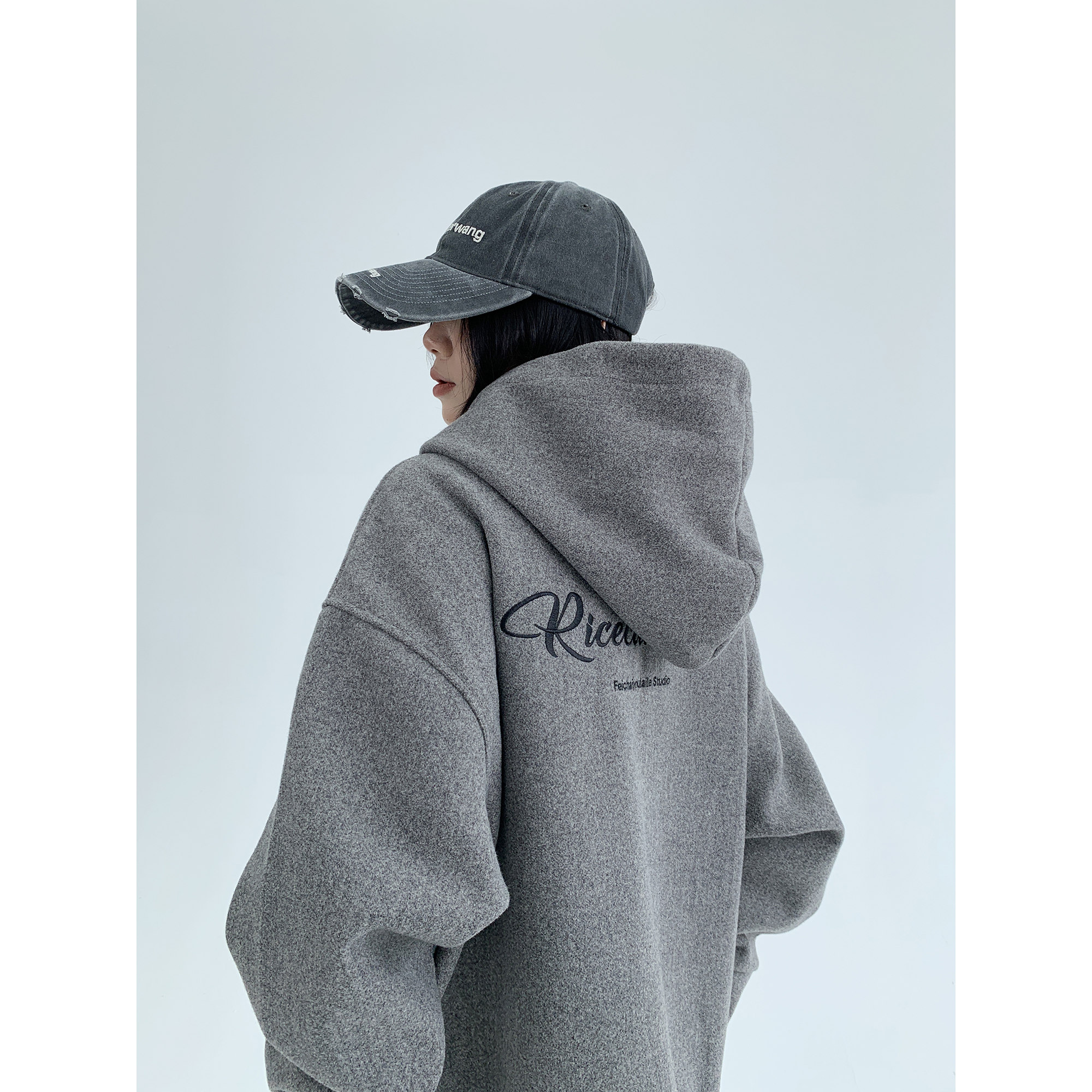 【アウター】刺繍 ファスナー付き 春秋冬 ゆるリラックス フード付き ジャケット 【FCシリーズ】