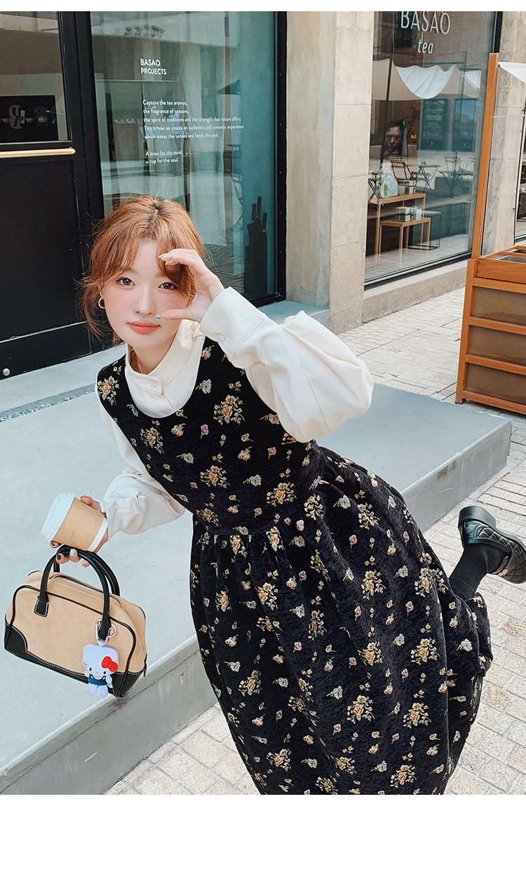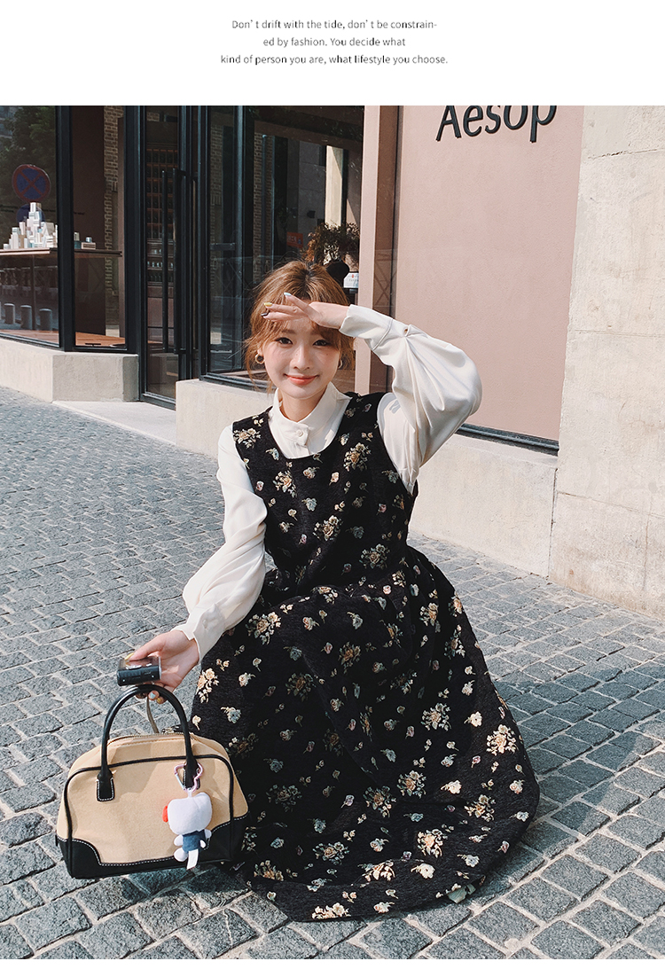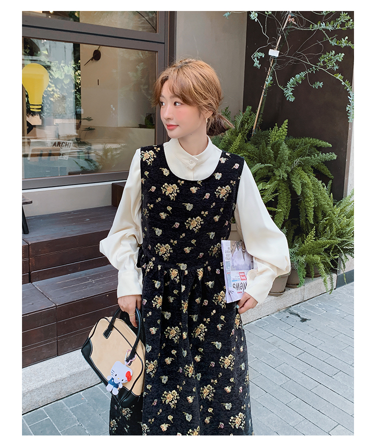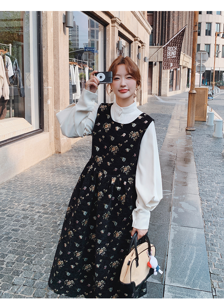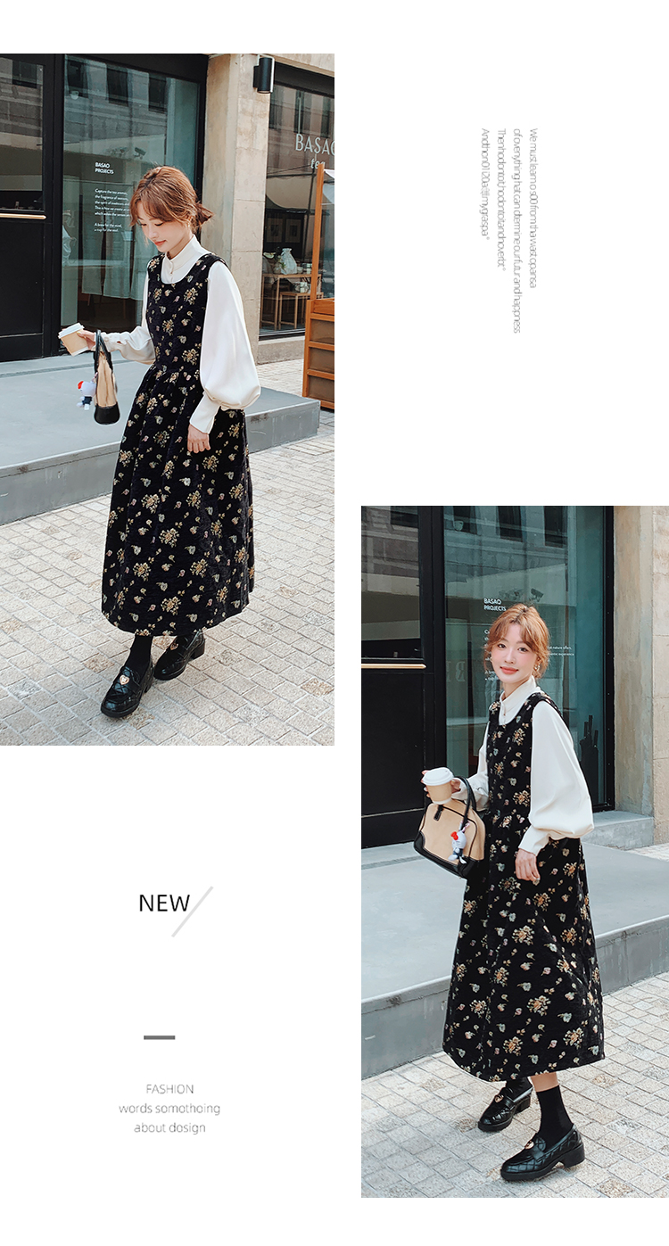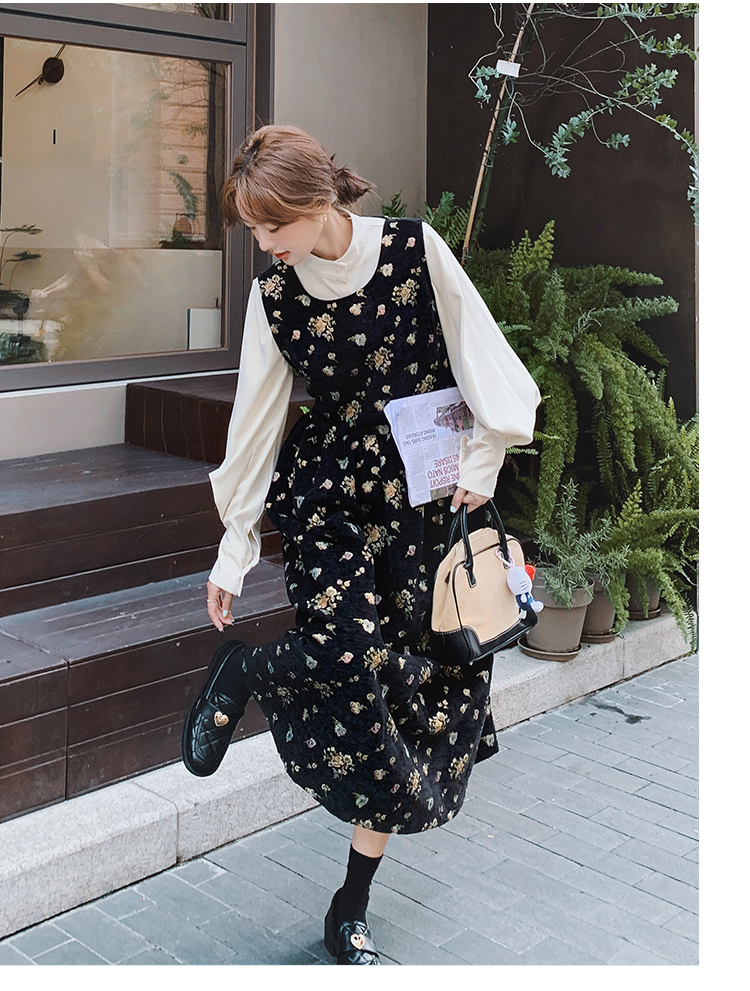 【ワンピース】春秋冬 プリント ビロード 刺繍 ノースリーブ ワンピース【JZシリーズ】