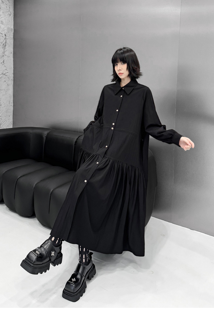 【ワンピース】細見え 日系 Vネック 無地 長袖ワンピース 切替デザイン ゆったり 気質ロング【JZシリーズ】【AHシリーズ】