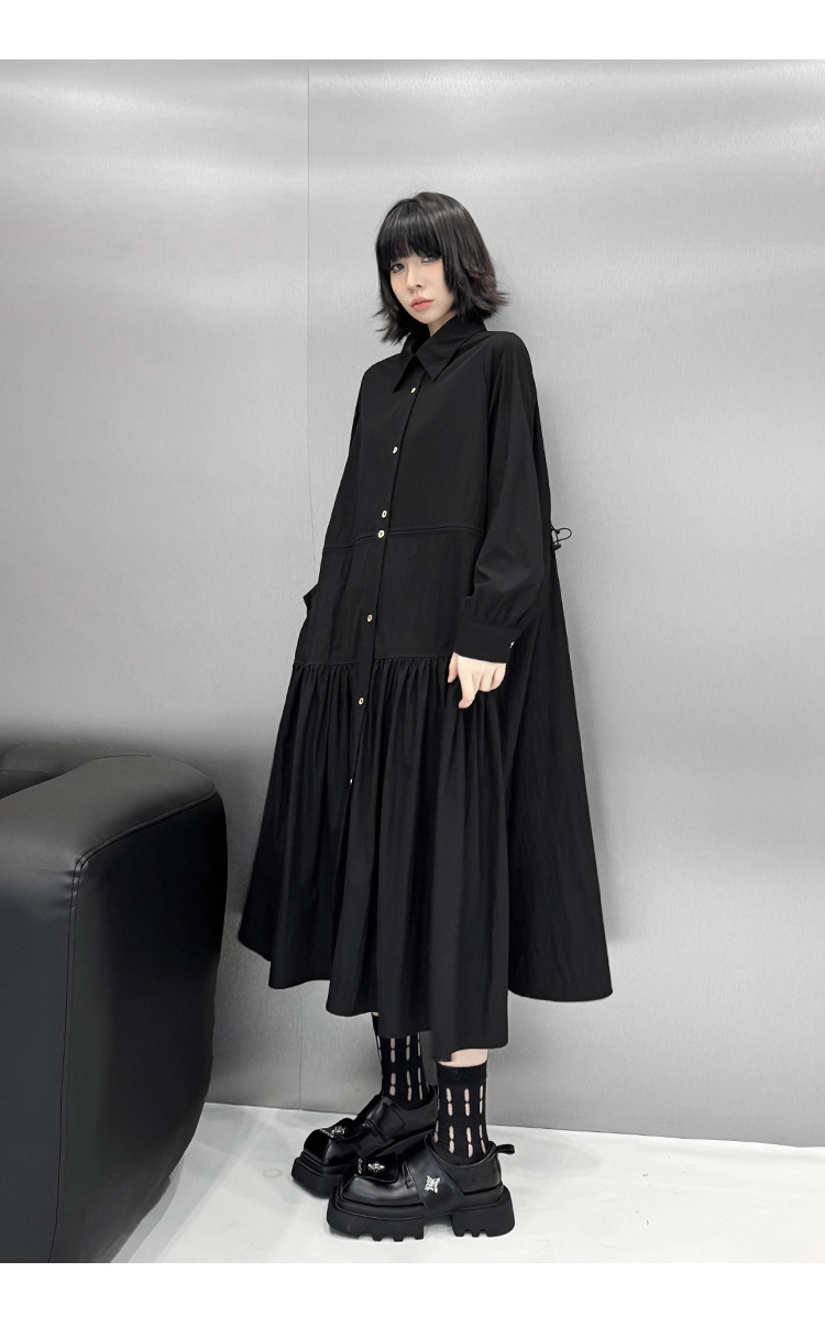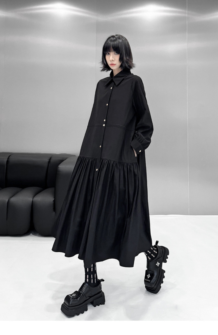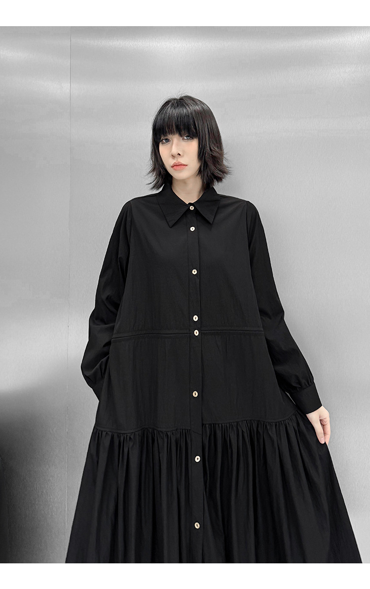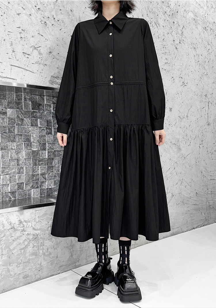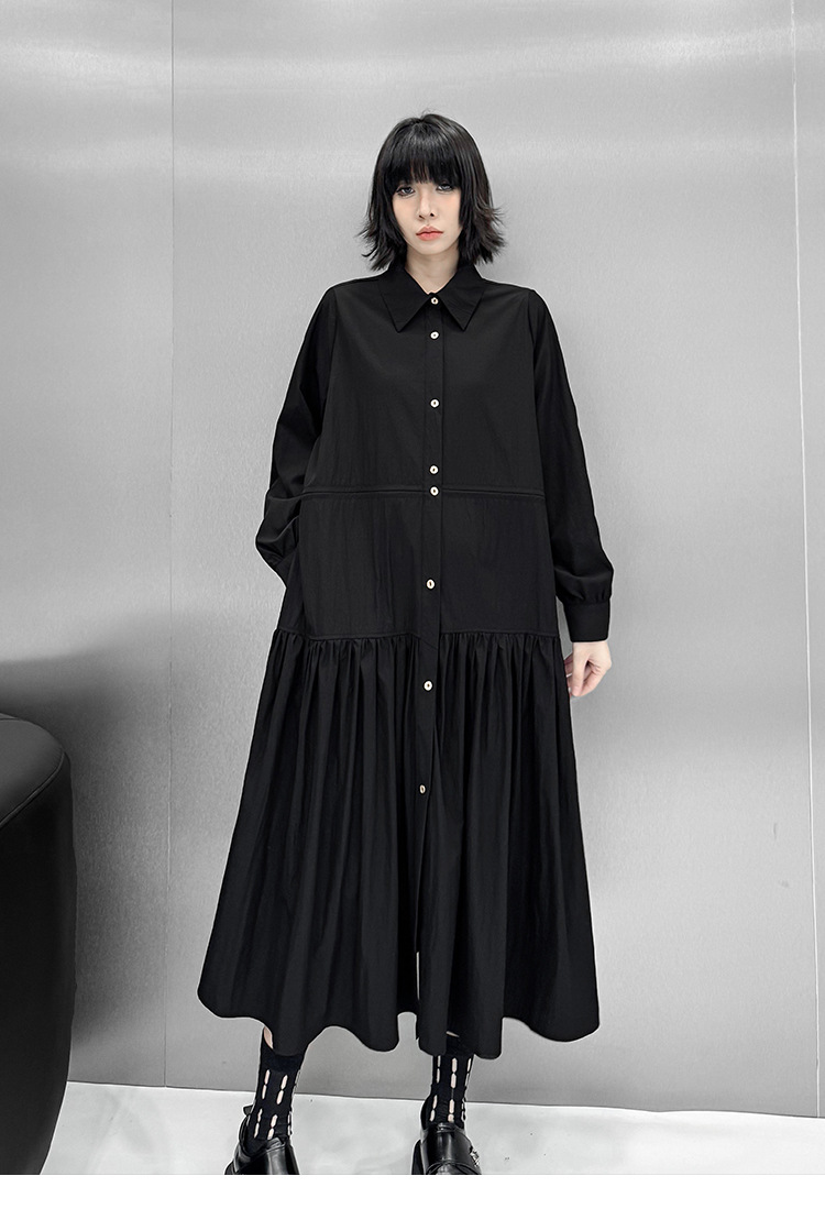 【ワンピース】フレンチレトロ 切替デザイン 大ポケット 長袖 ワンピース 秋新作 ゆったり 【JZシリーズ】