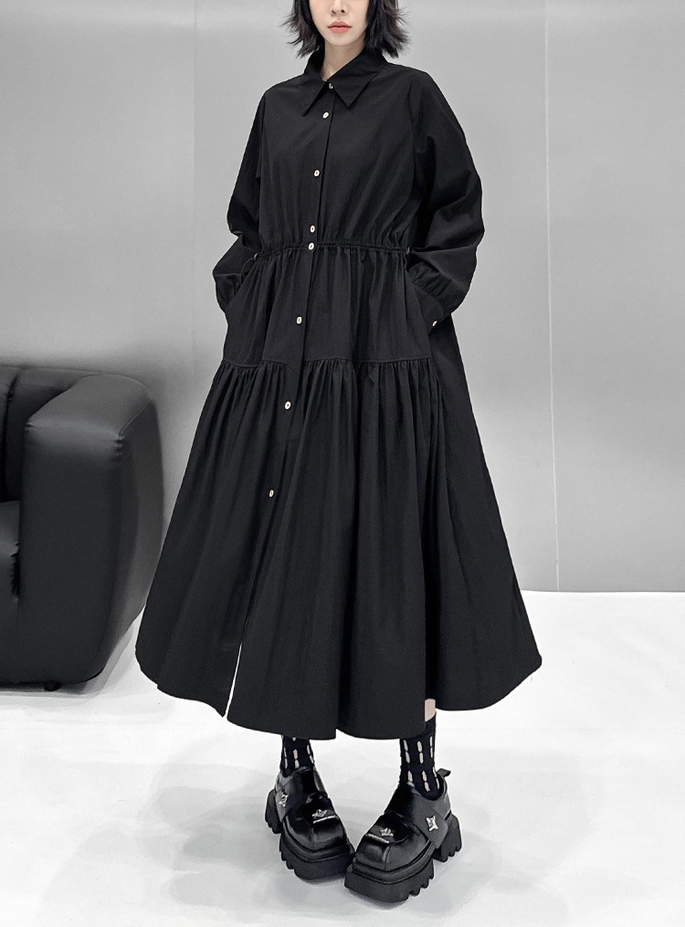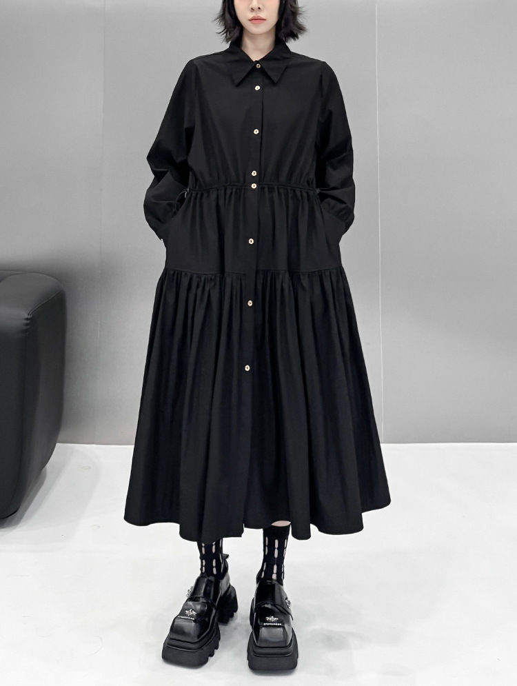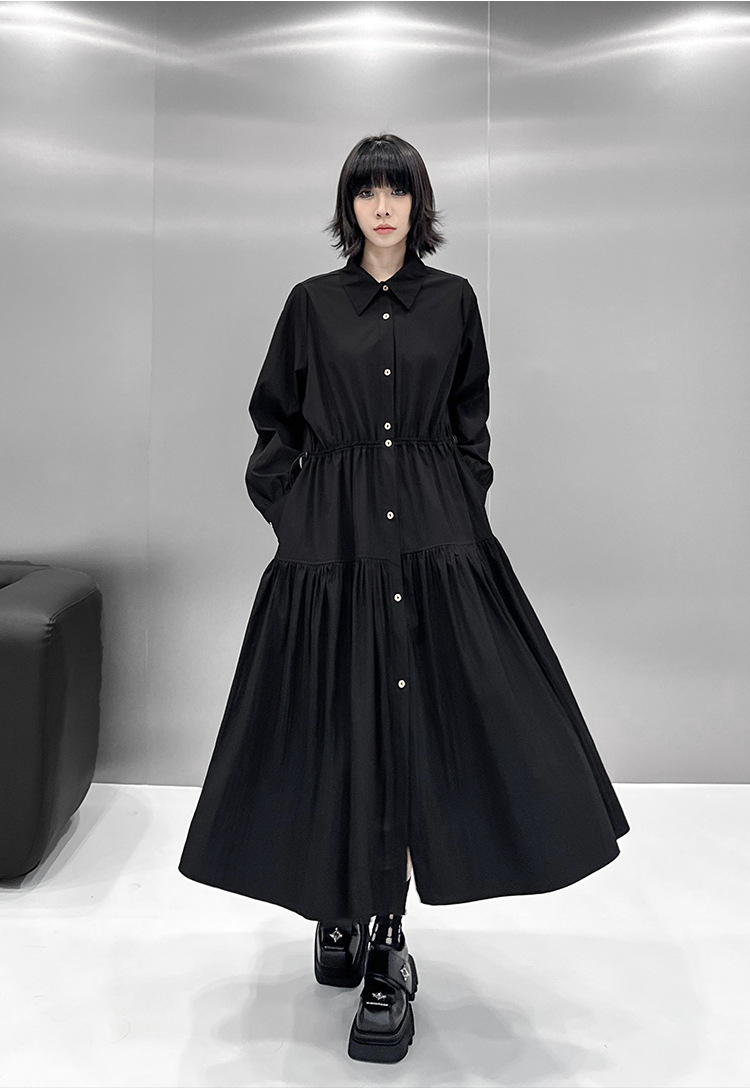 【ワンピース】ドローストリング付き ゆったりとした 春 秋 冬 切り替え 長袖 ワンピース 【AHシリーズ】